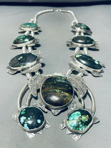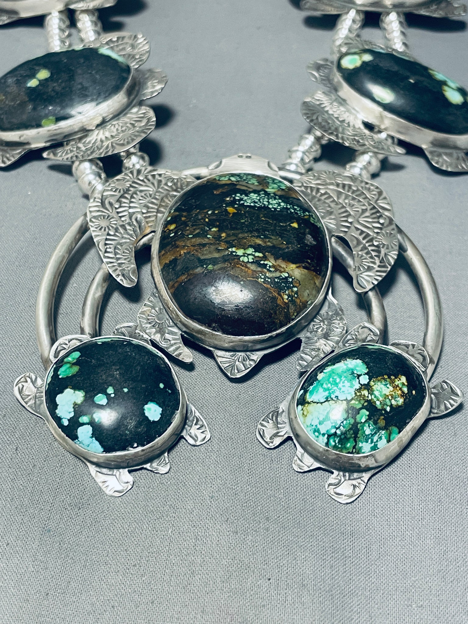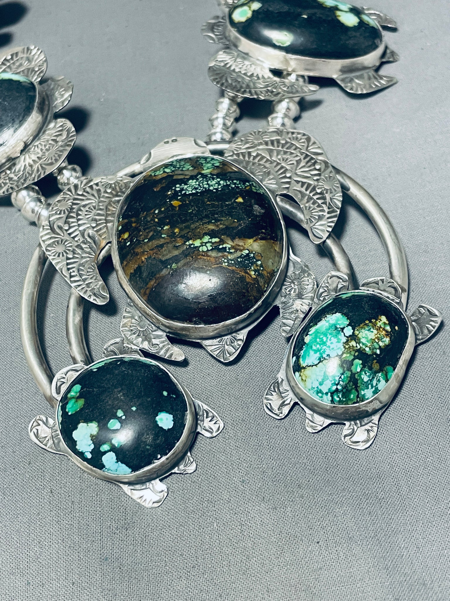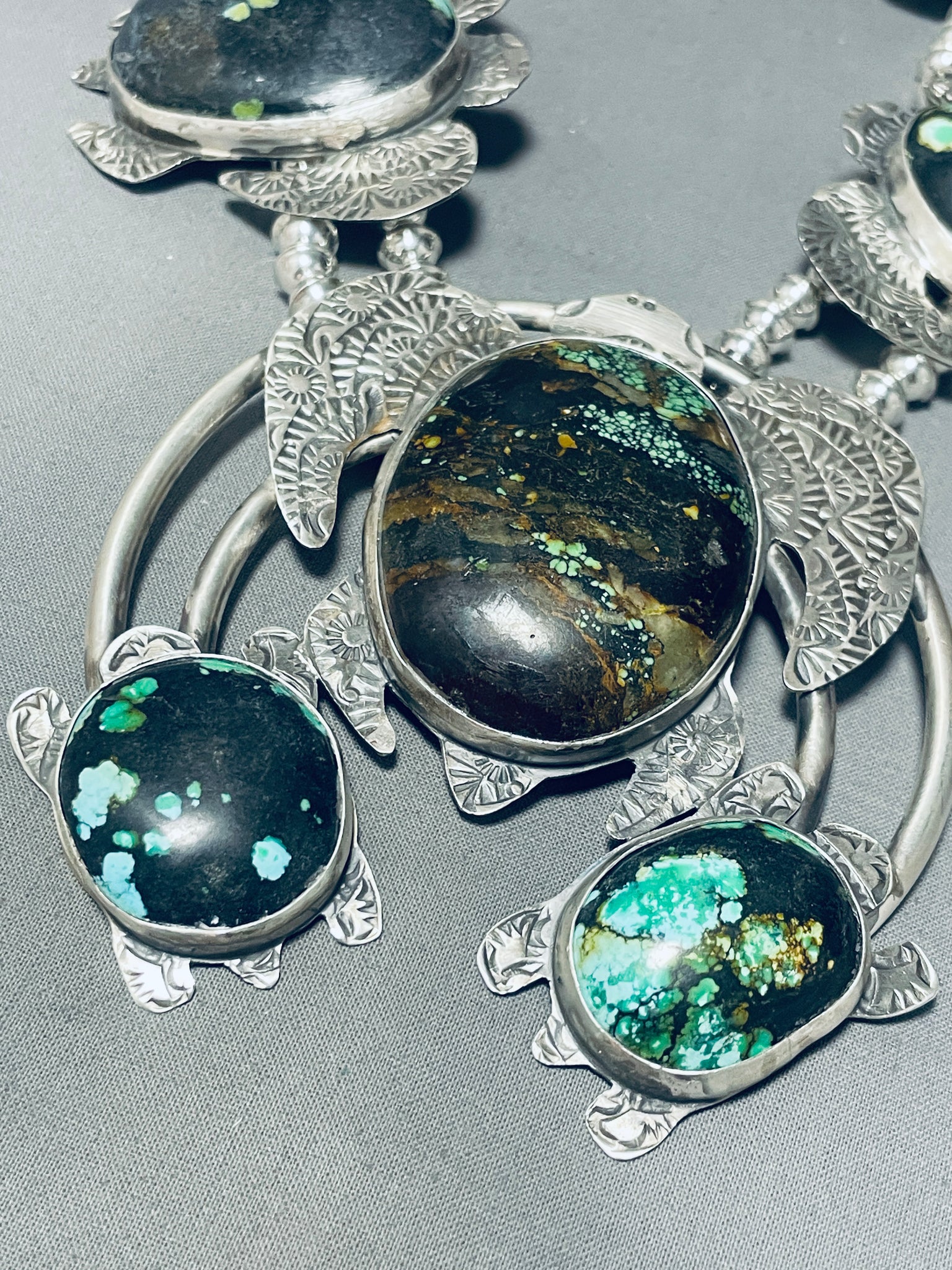 Tortoise Turquoise!! 390 Grams Sterling Silver Squash Blossom Necklace