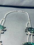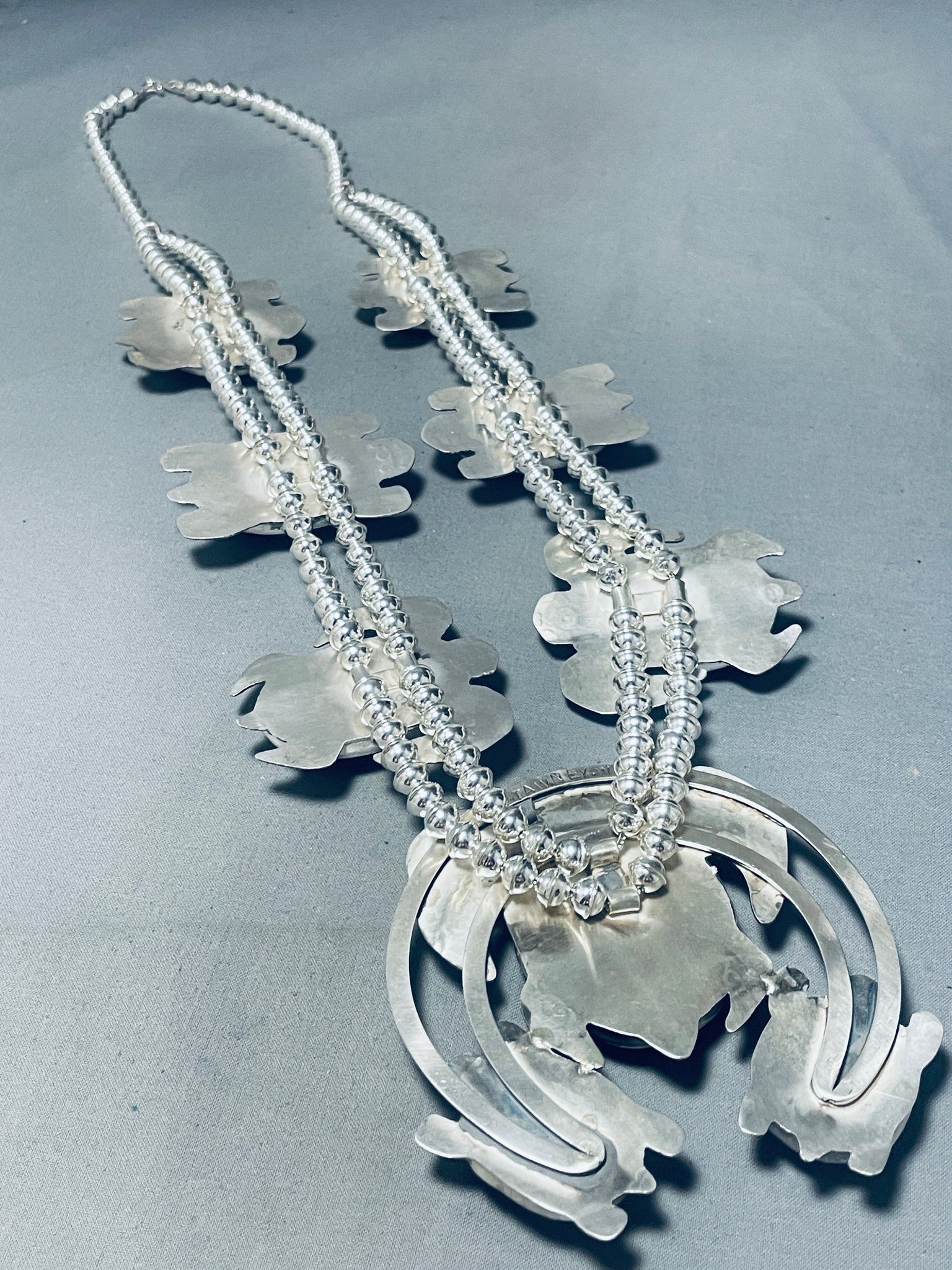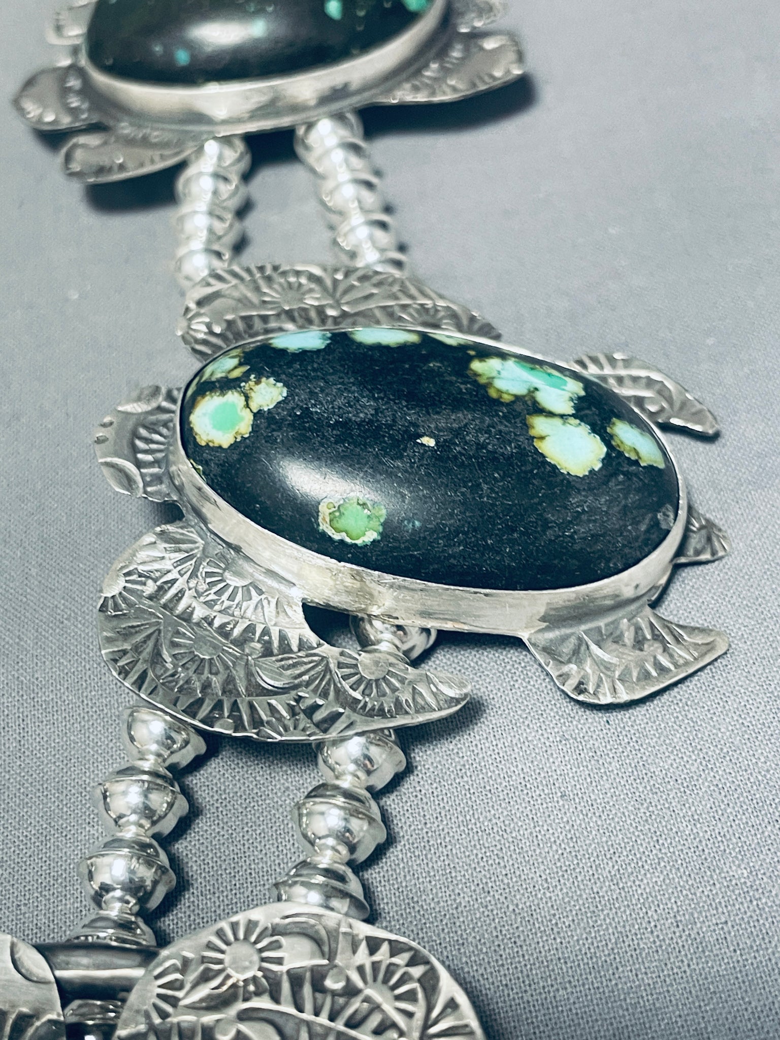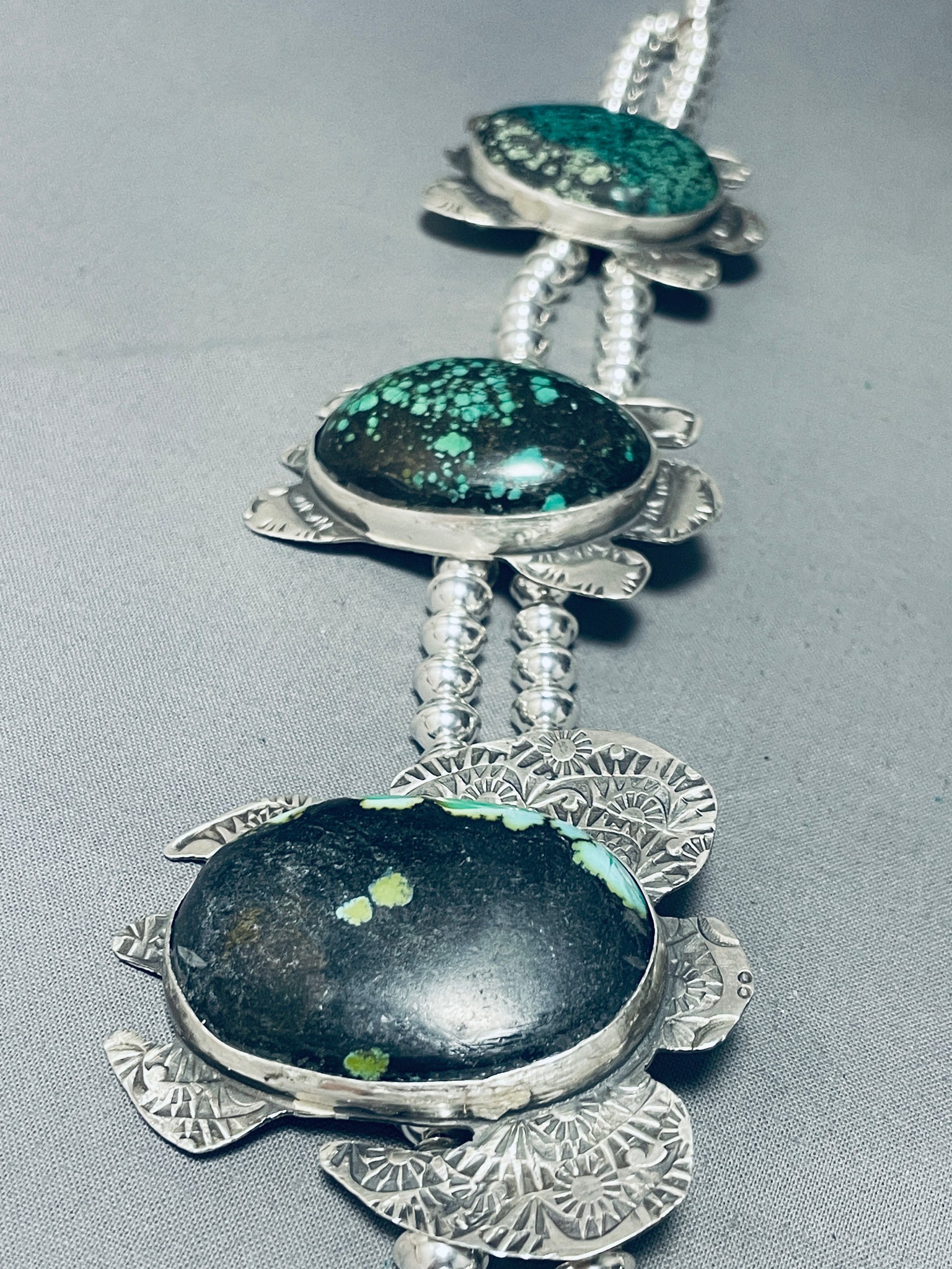 Tortoise Turquoise!! 390 Grams Sterling Silver Squash Blossom Necklace