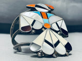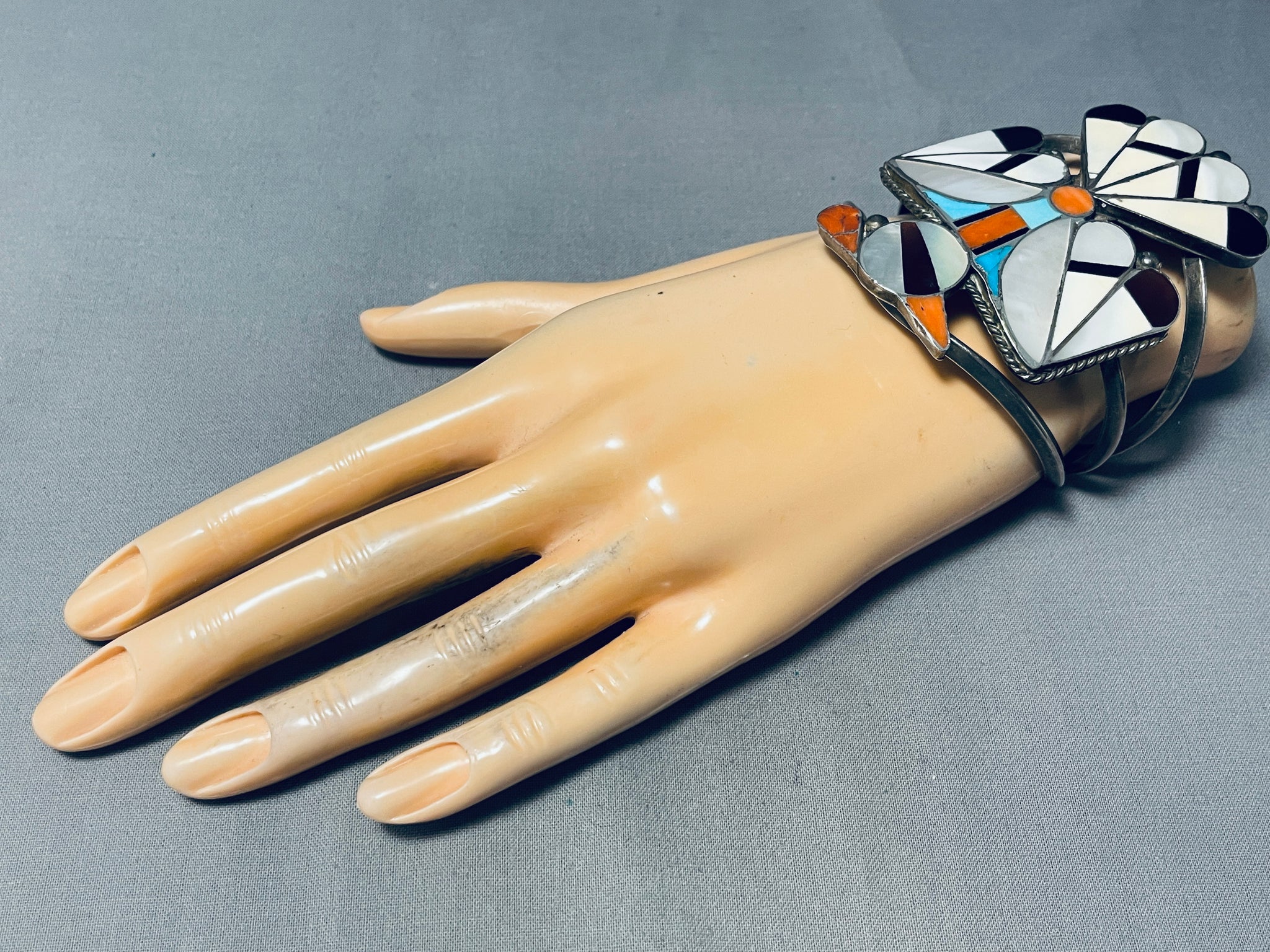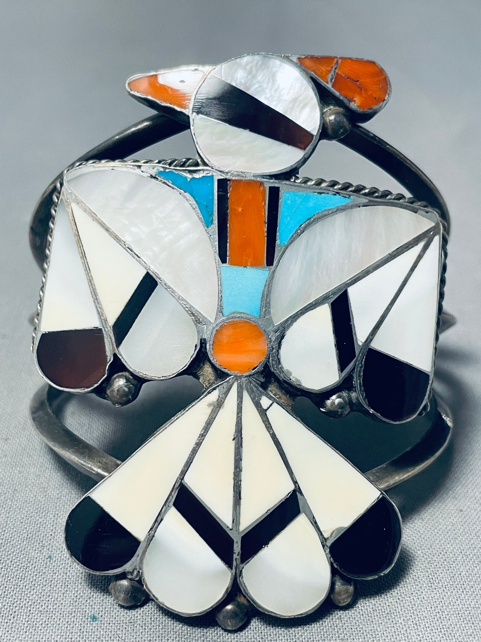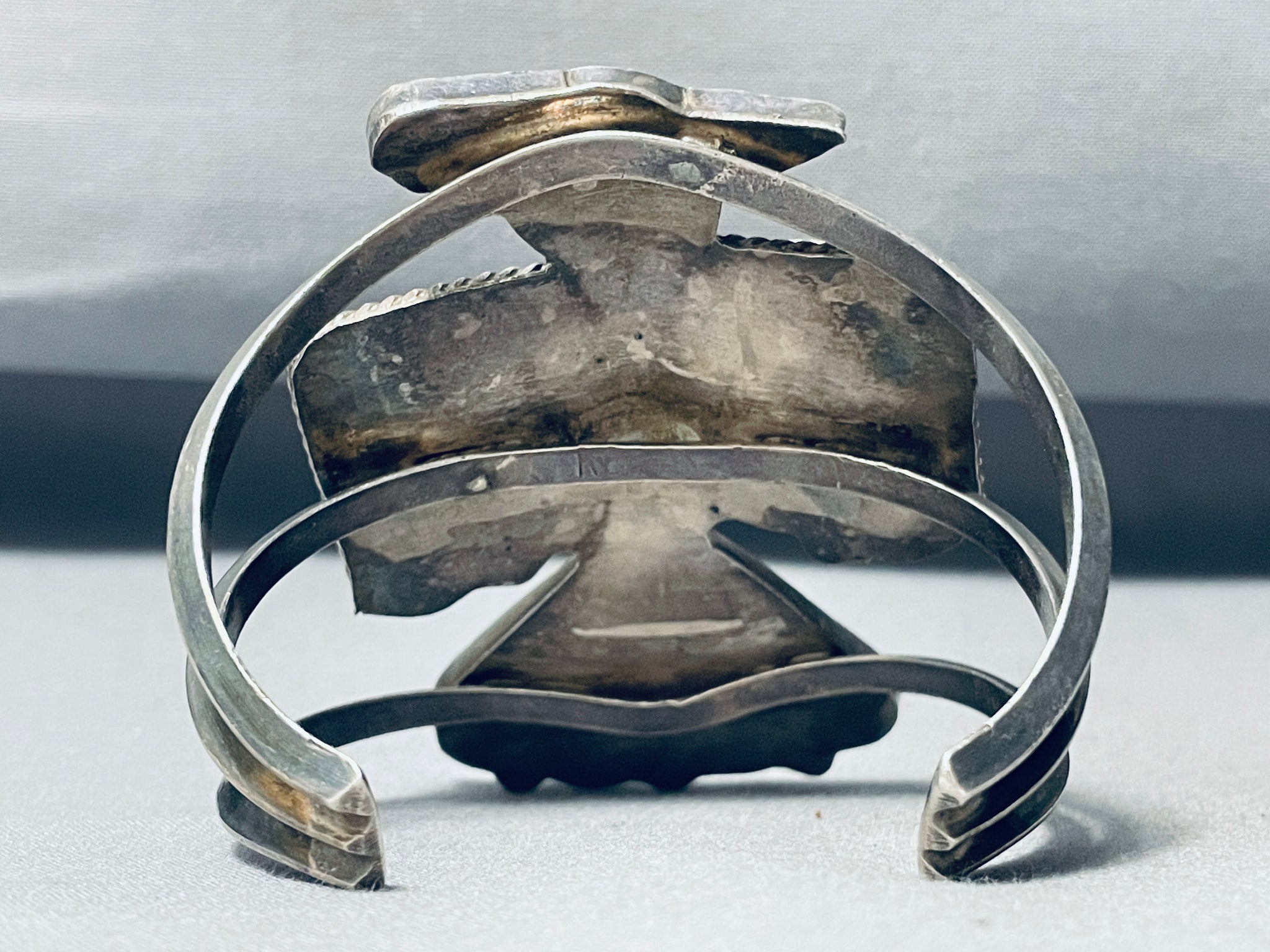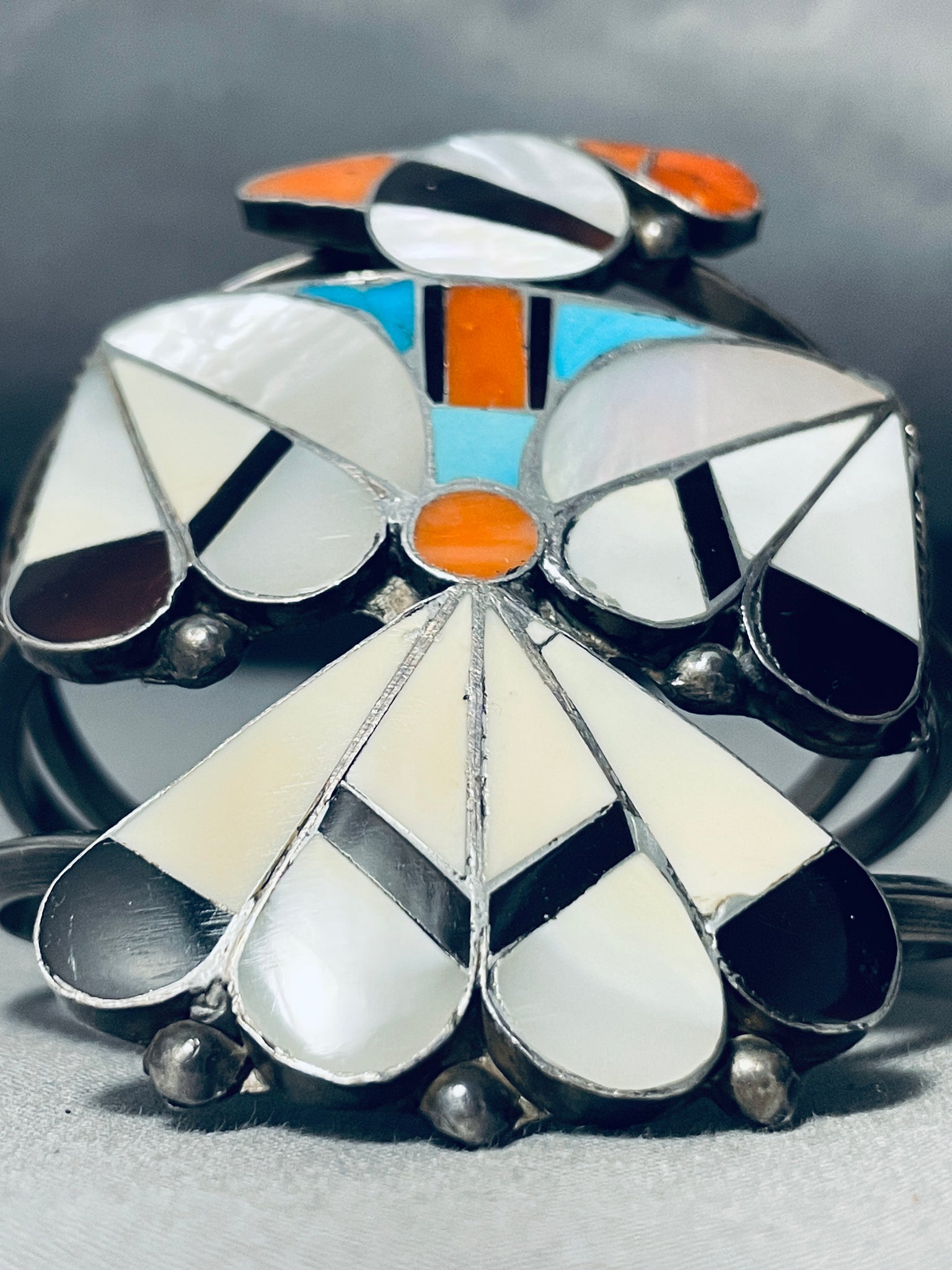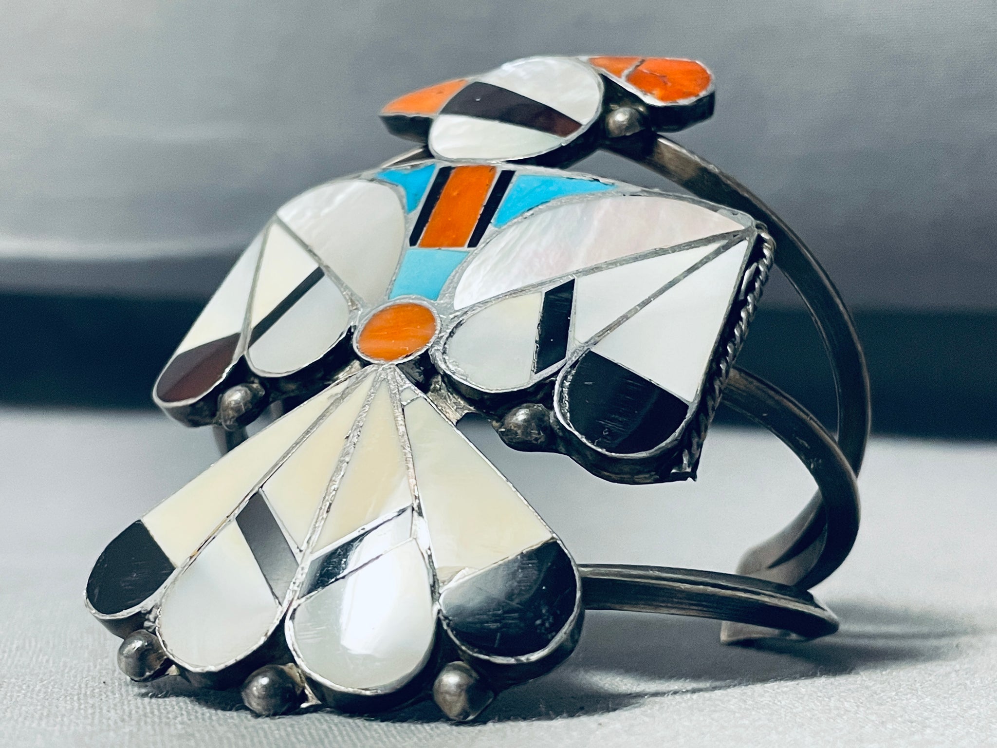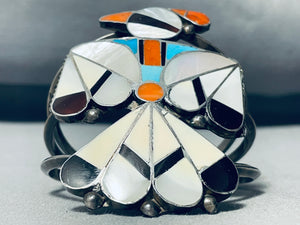 Towering Older Vintage Native American Zuni Turquoise Bird Sterling Silver Inlay Bracelet