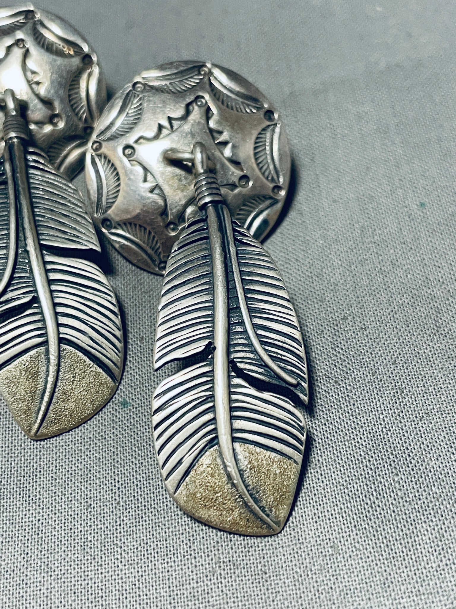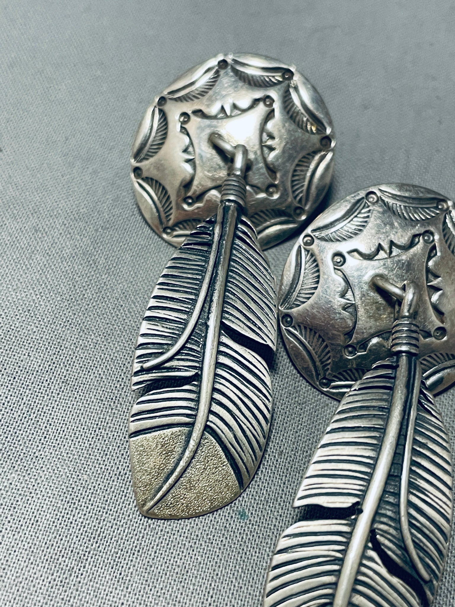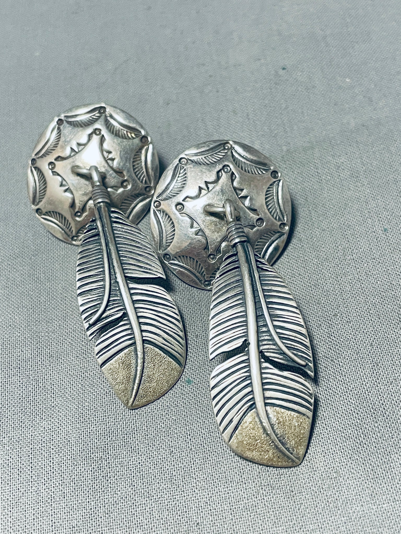 Traditional Vintage Native American Navajo Sterling Silver Feather Earrings