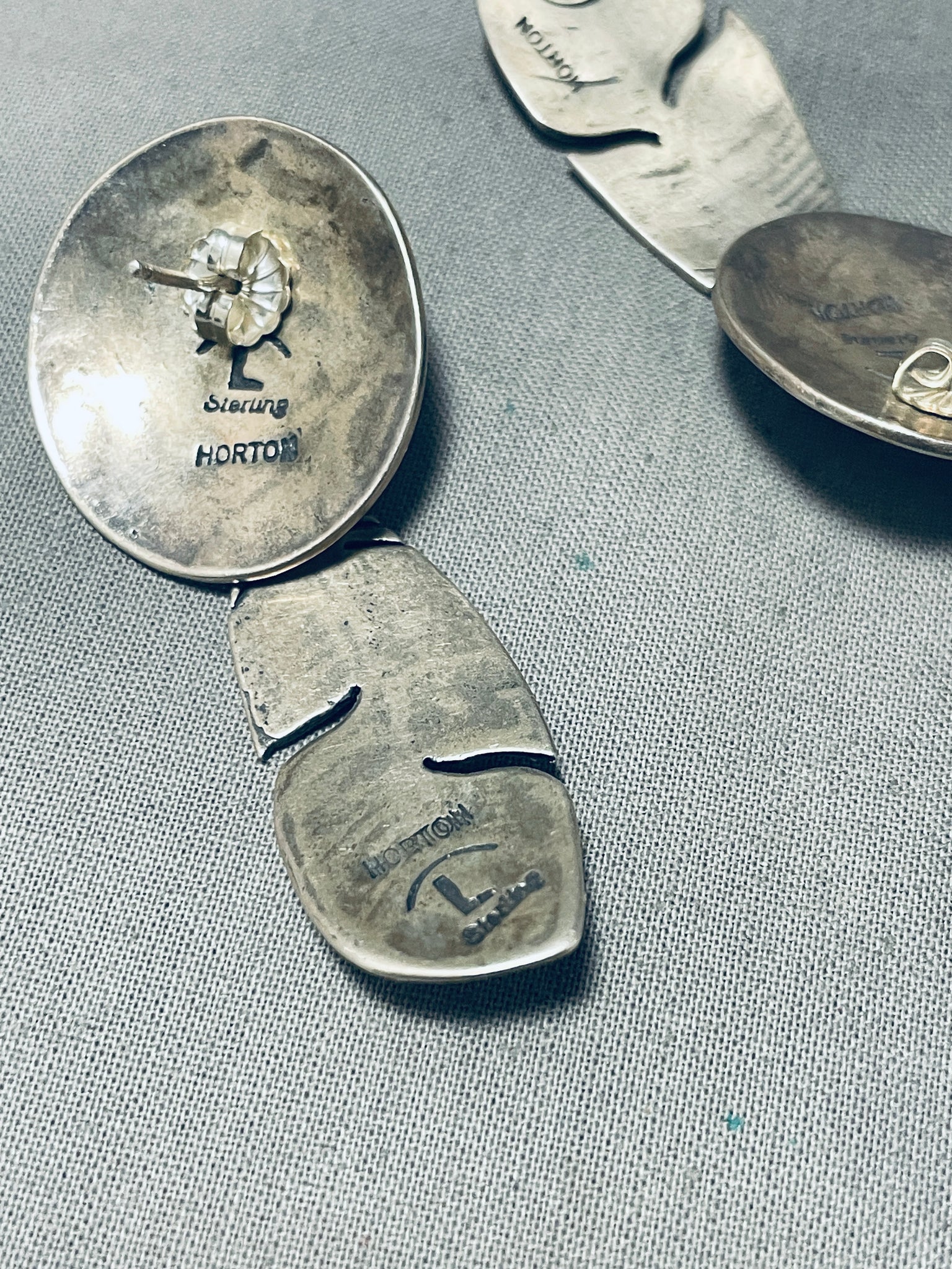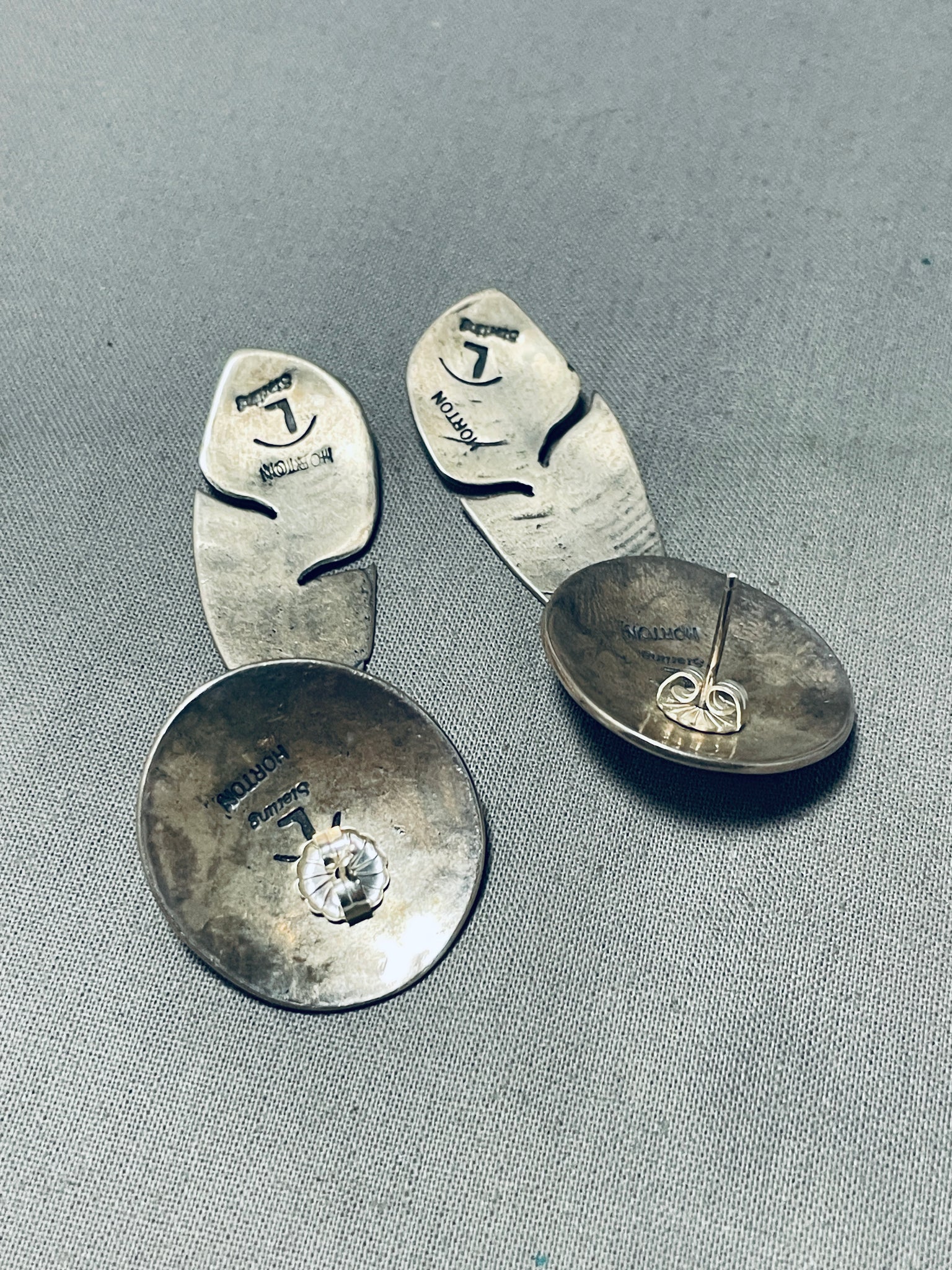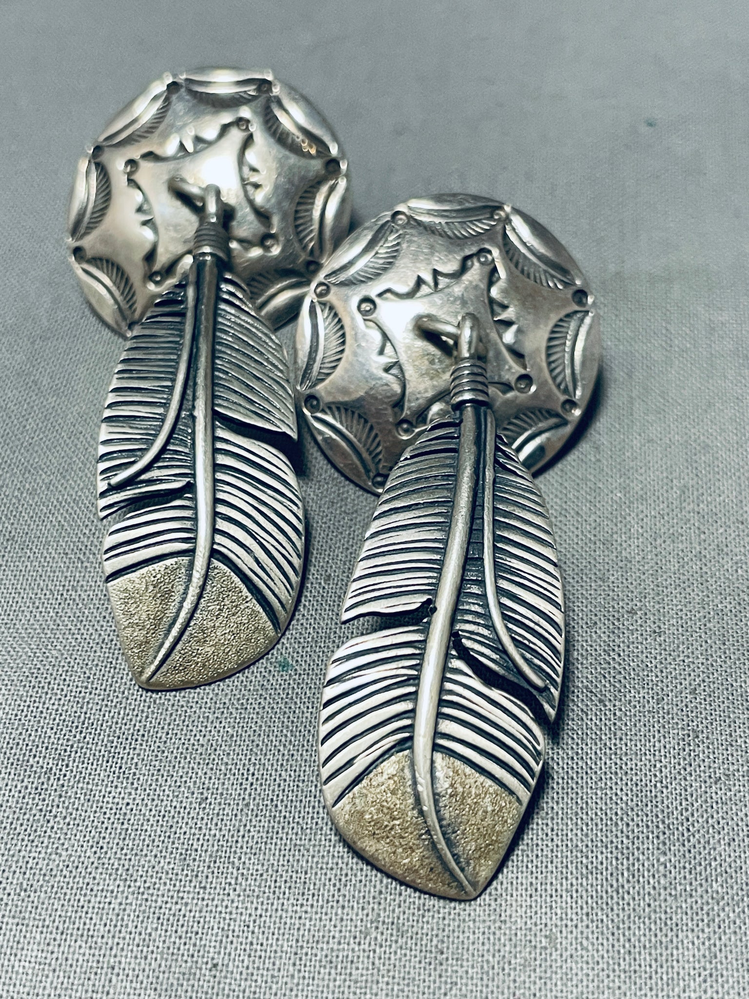 Traditional Vintage Native American Navajo Sterling Silver Feather Earrings