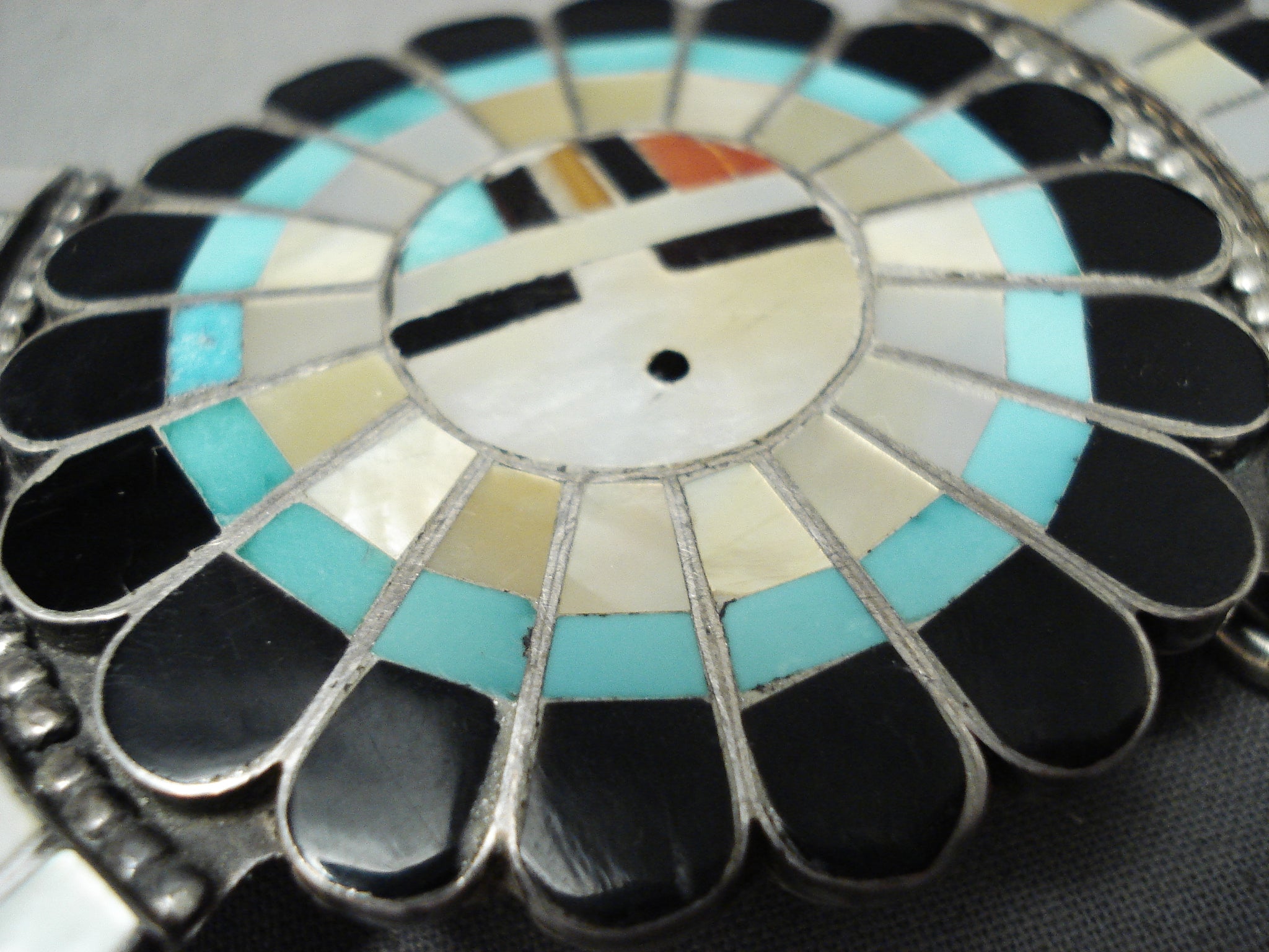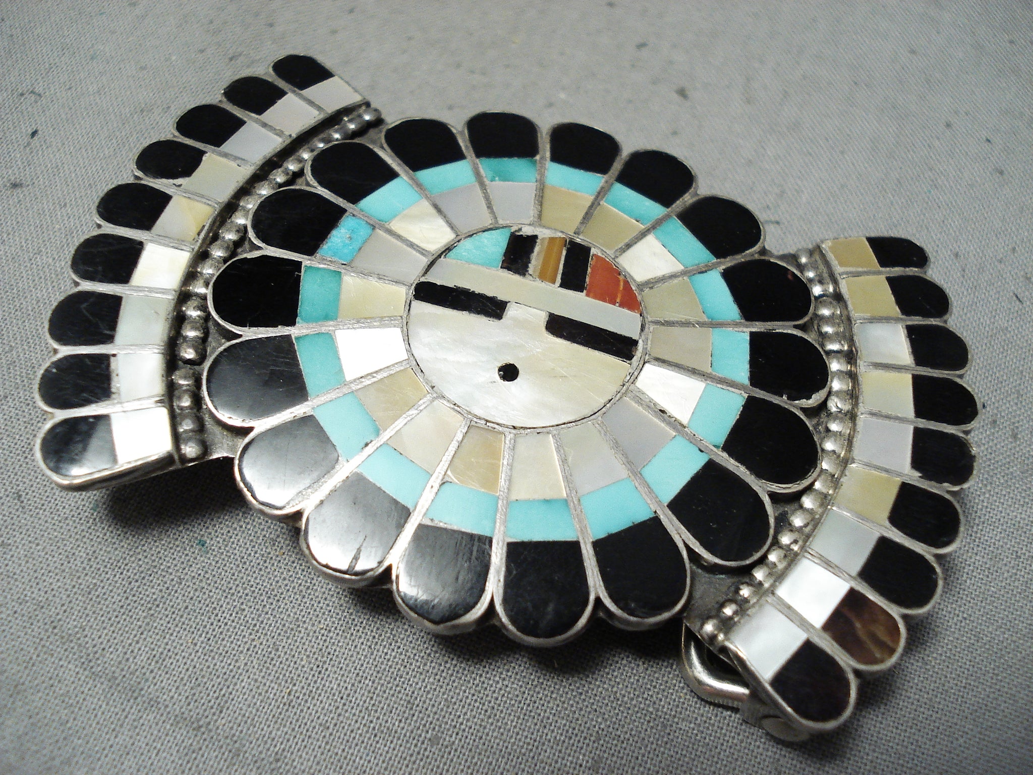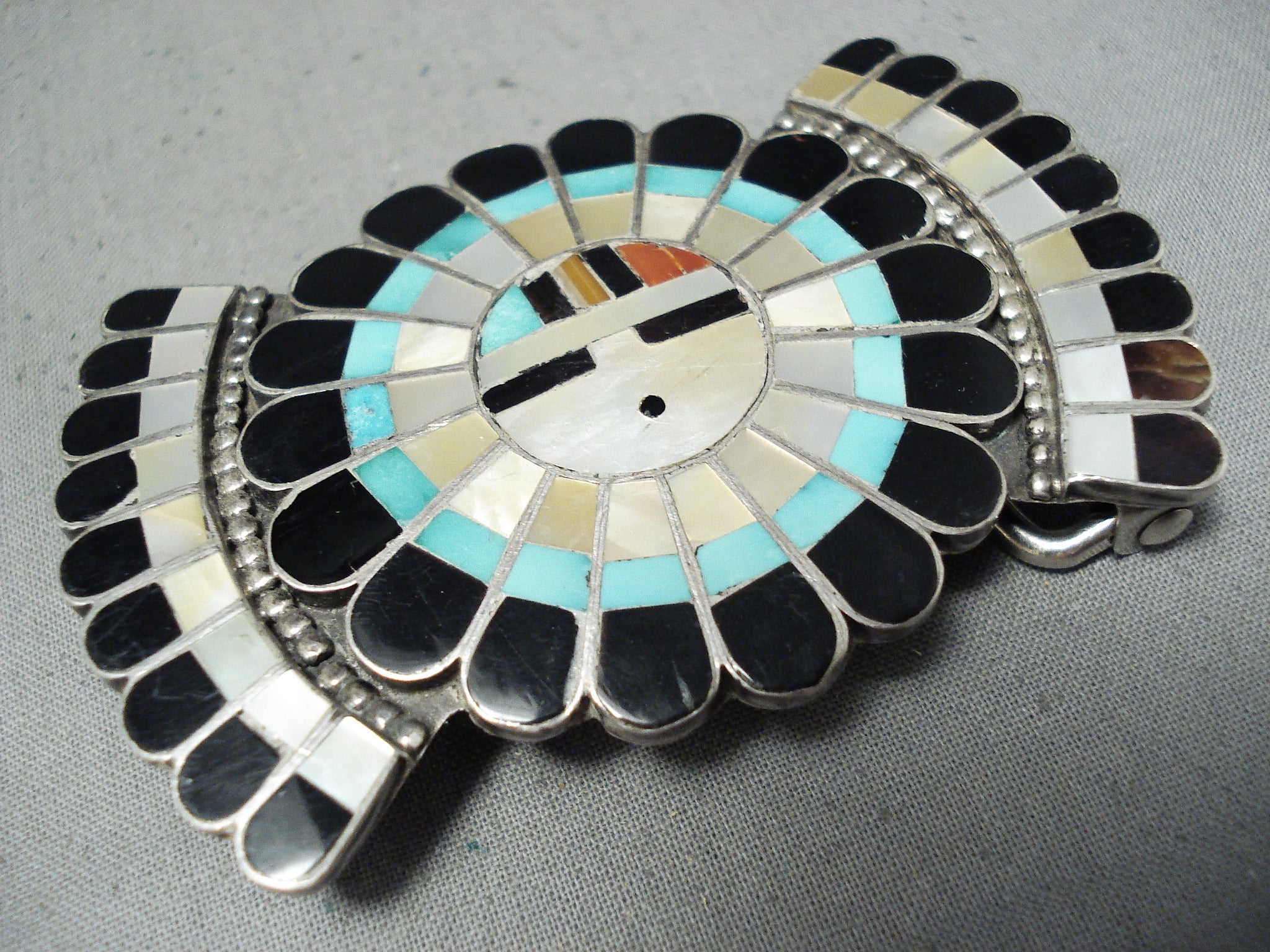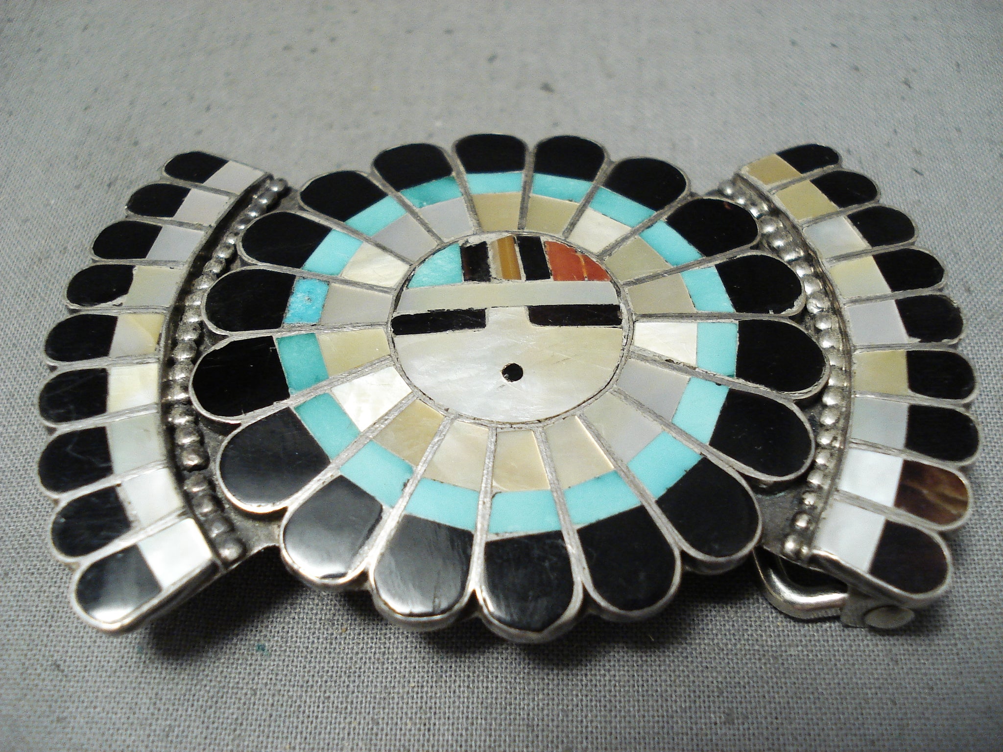 Traditional Vintage Native American Zuni Turquoise Sterling Silver Sunface Buckle