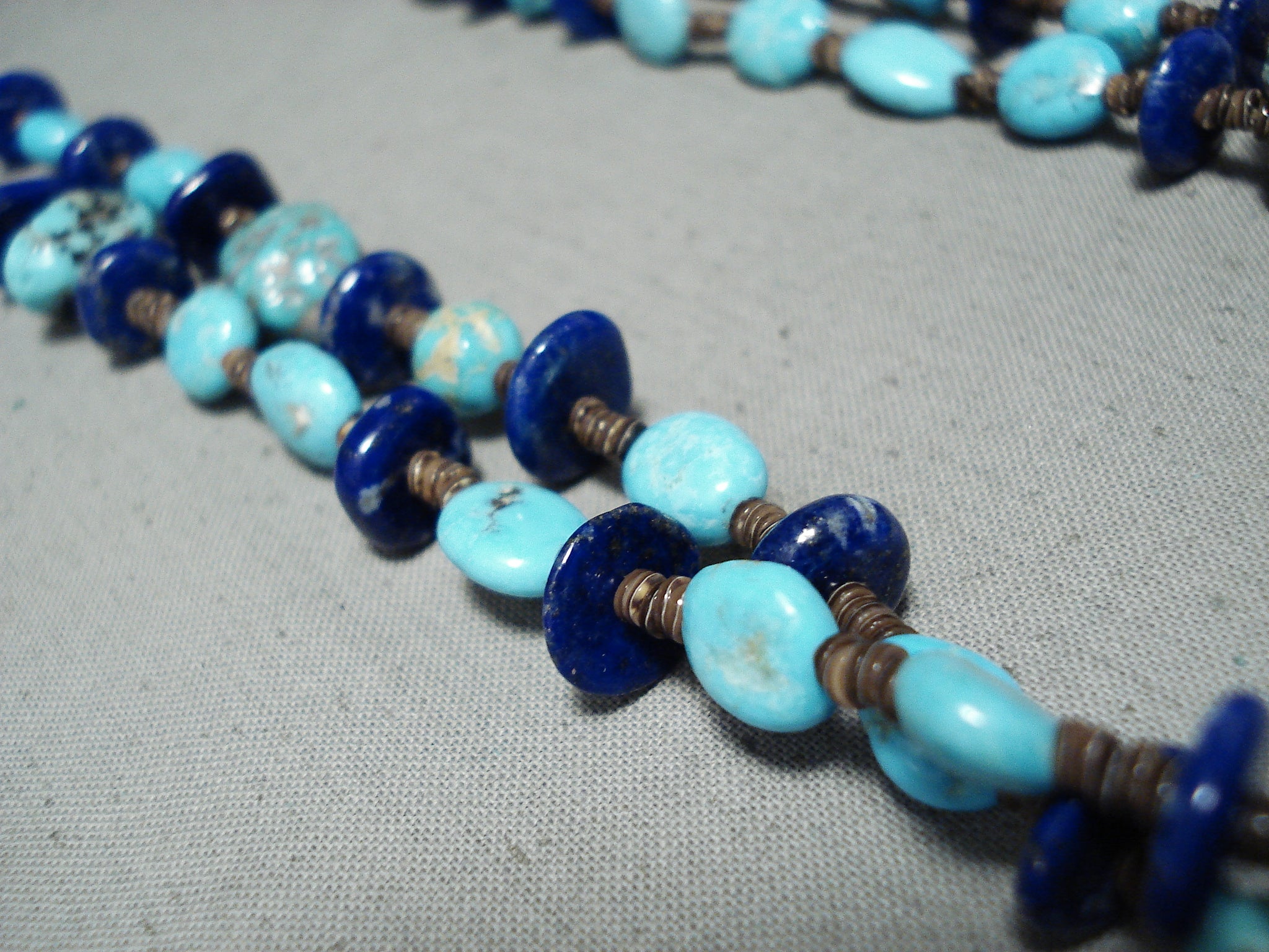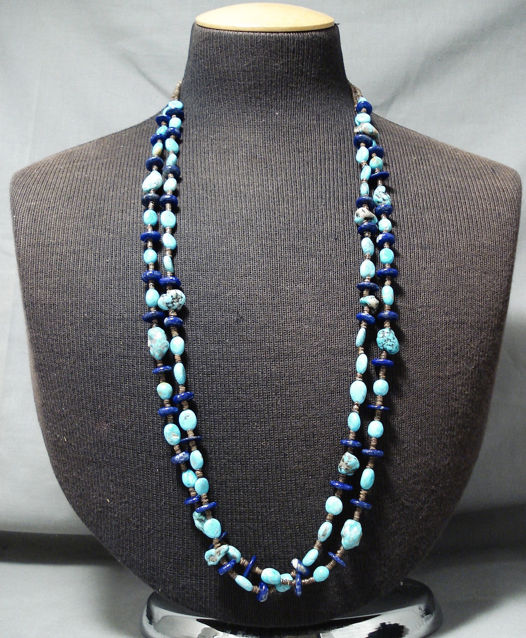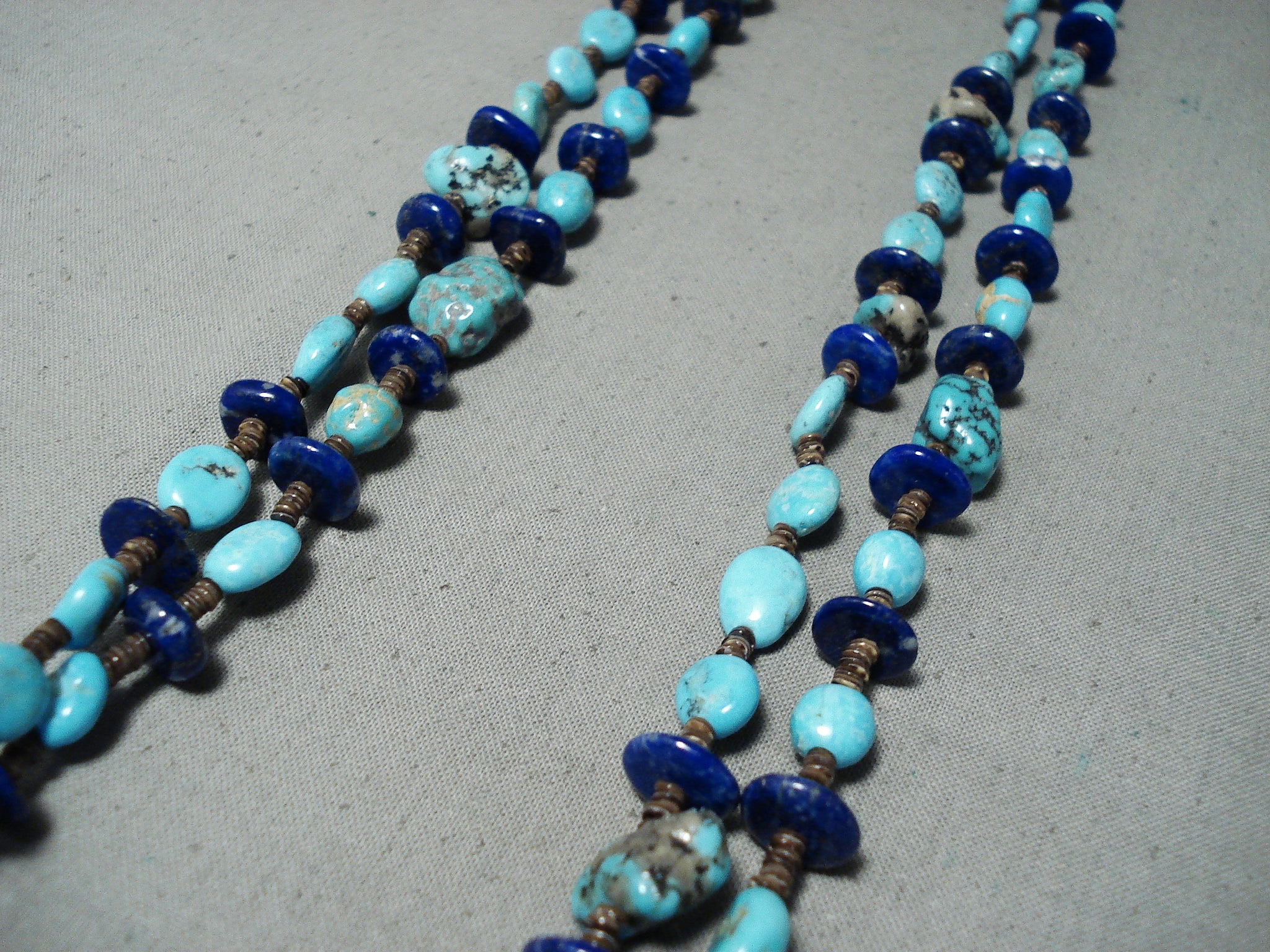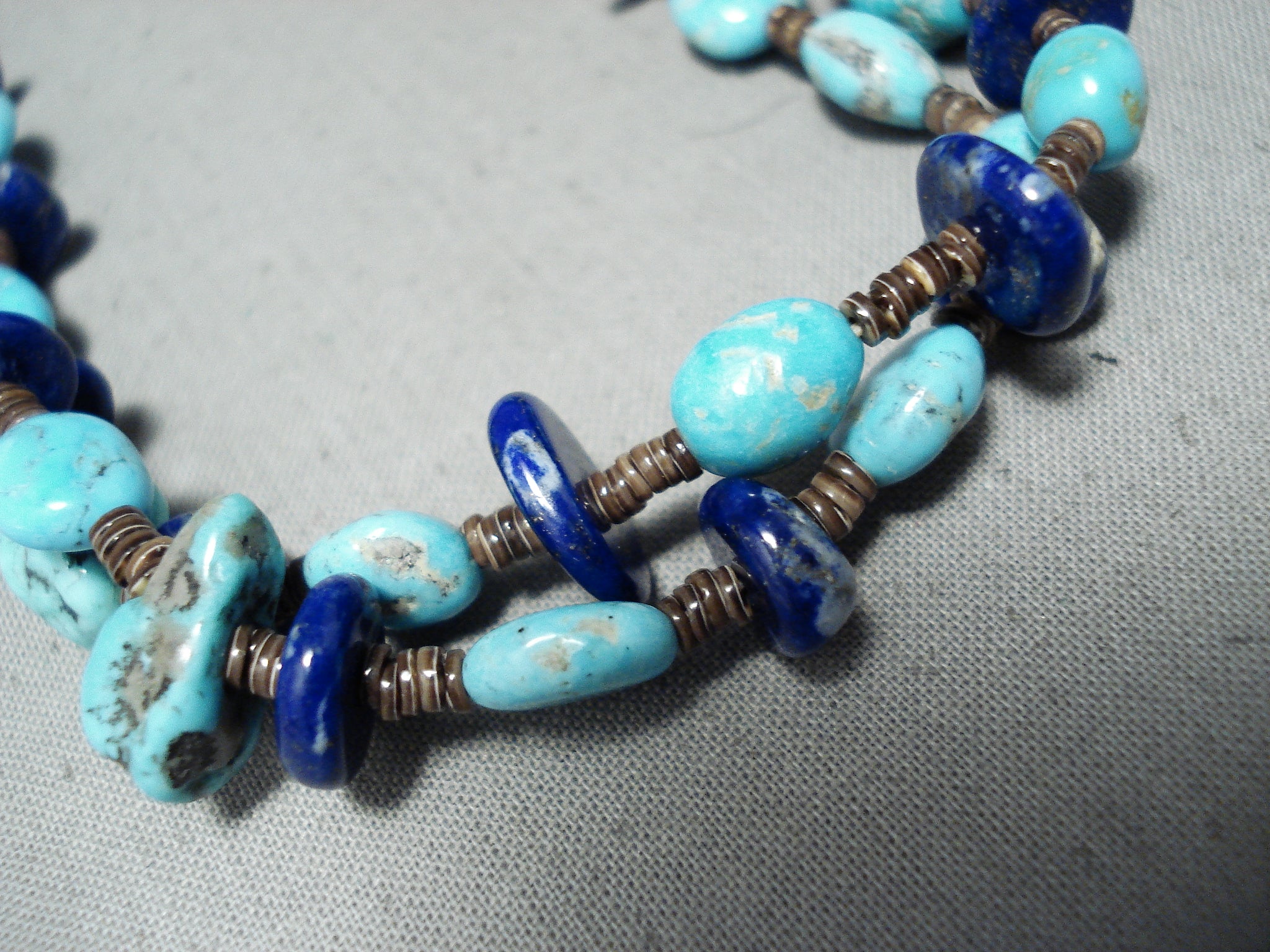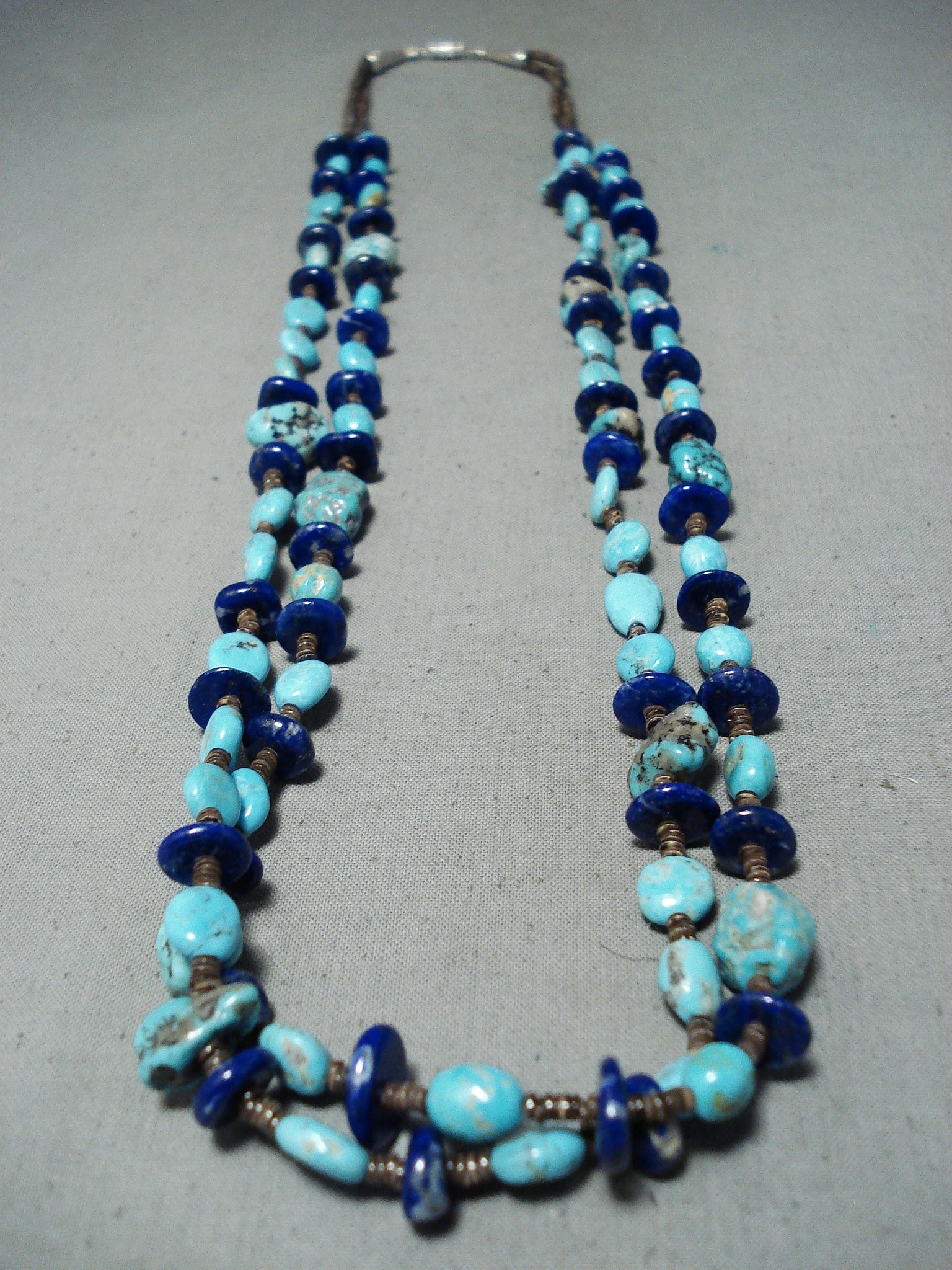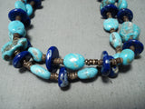 Tremendous Native American Navajo Turquoise Lapis Heishi Sterling Silver Necklace