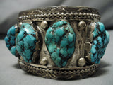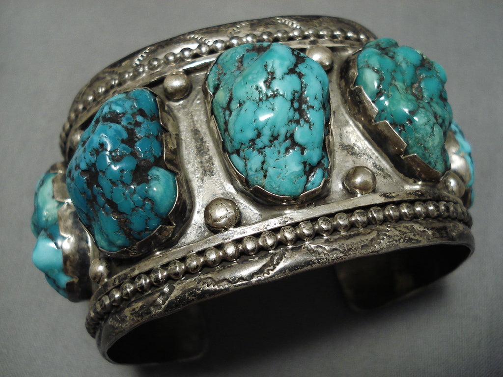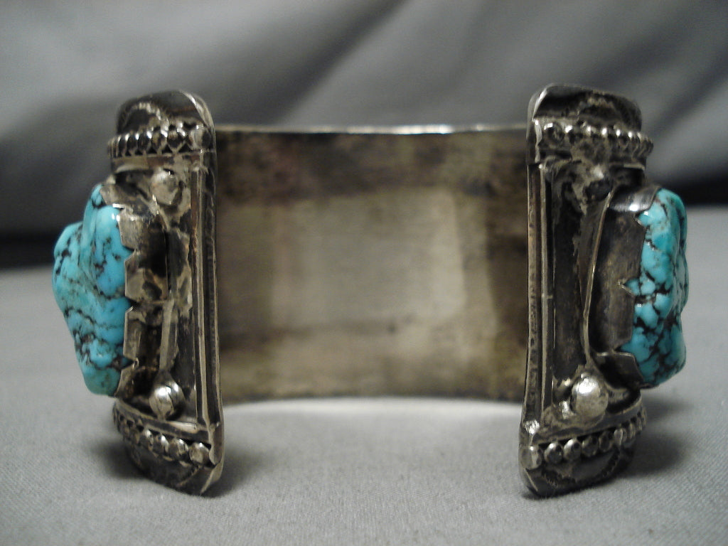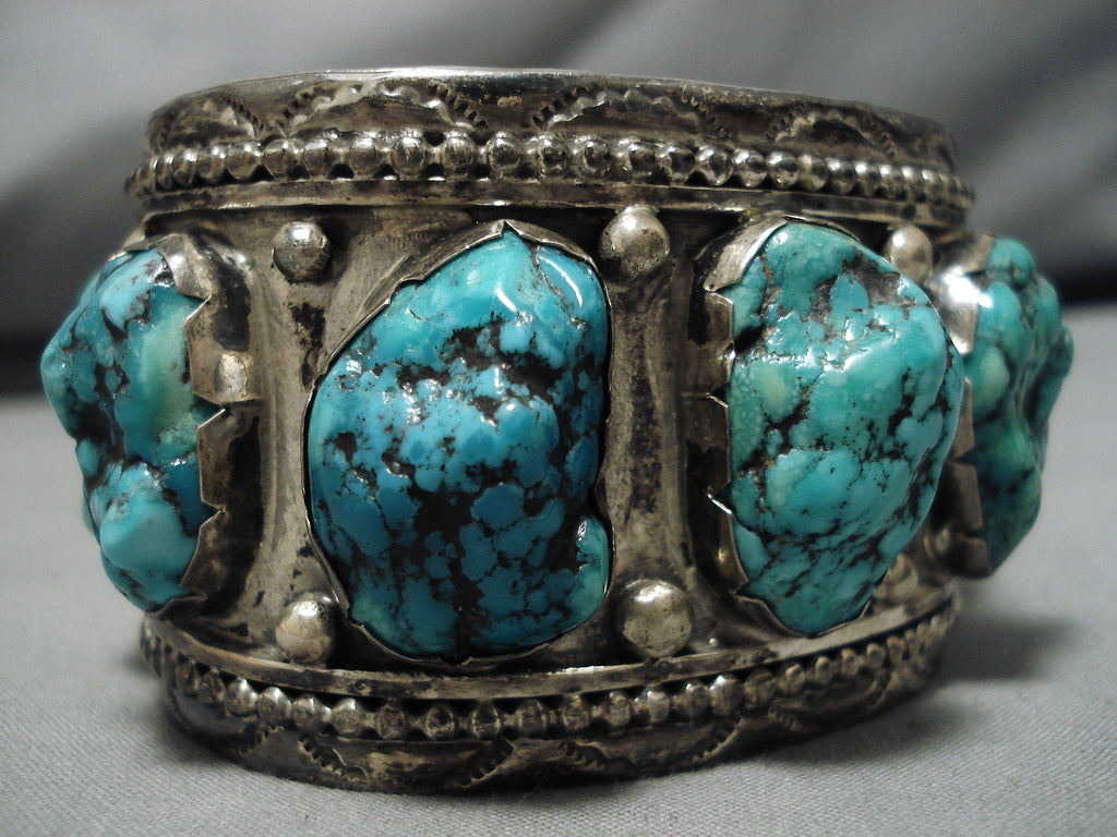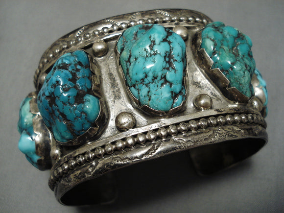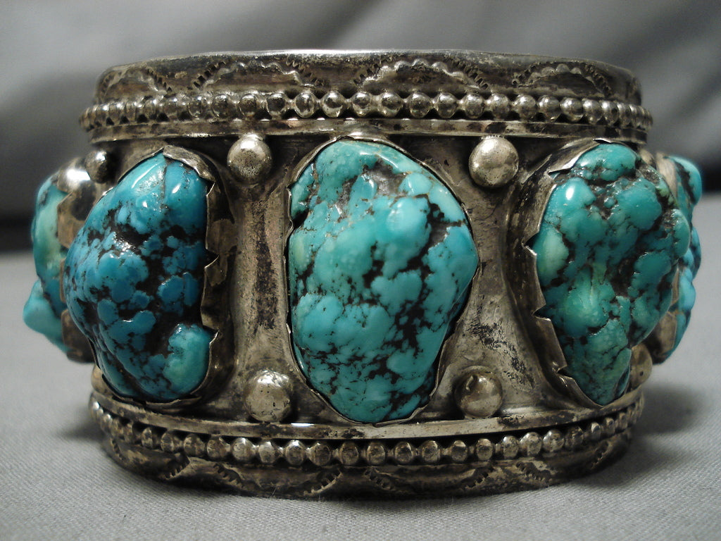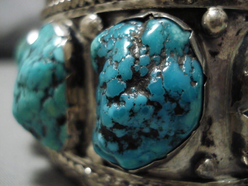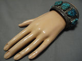 Tremendous Vintage Native American Navajo Chunky Turquoise Sterling Silver Bracelet Old
