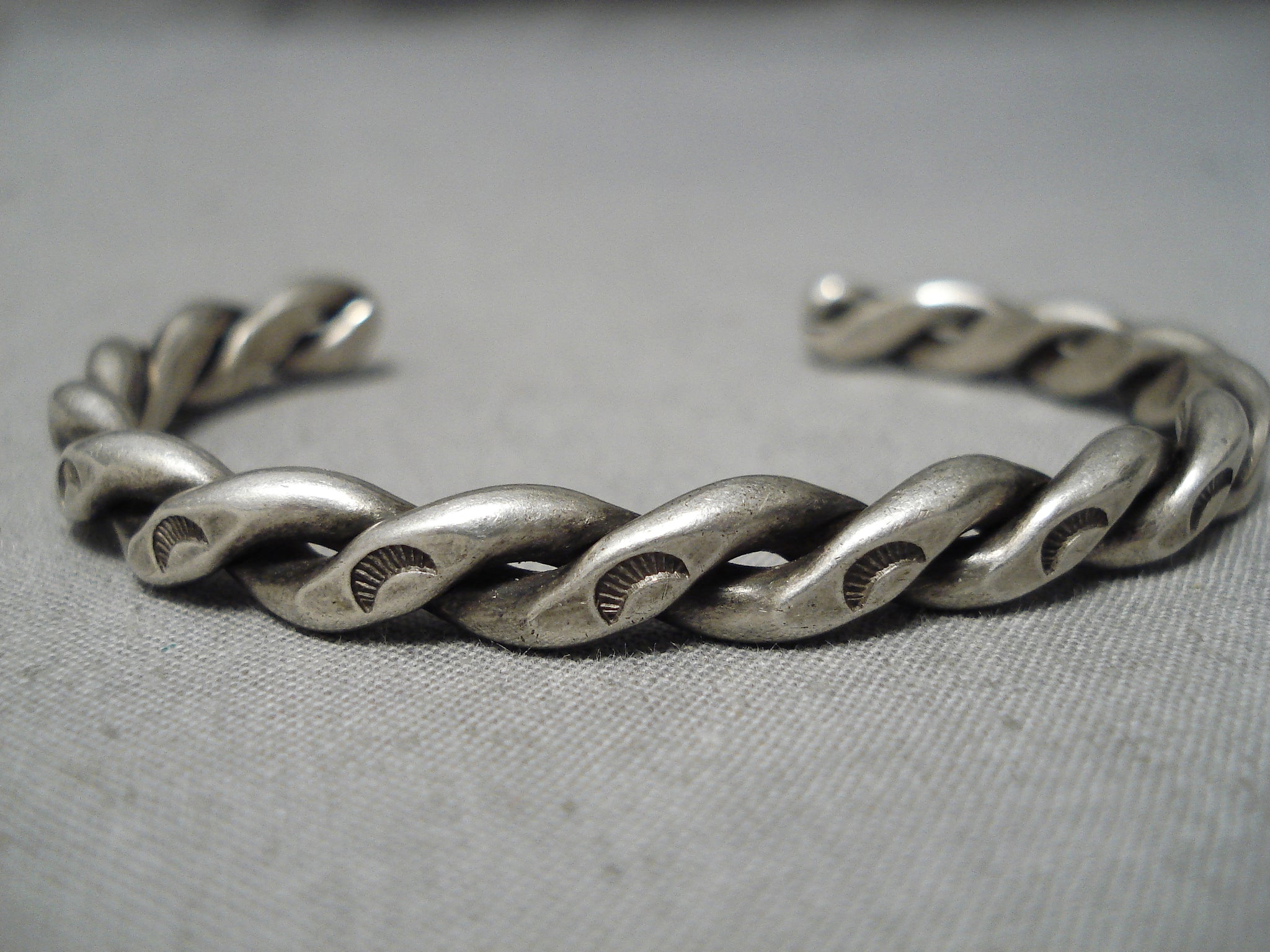 Tremendous Vintage Native American Navajo Hand Woven Sterling Silver Bracelet Cuff Old