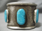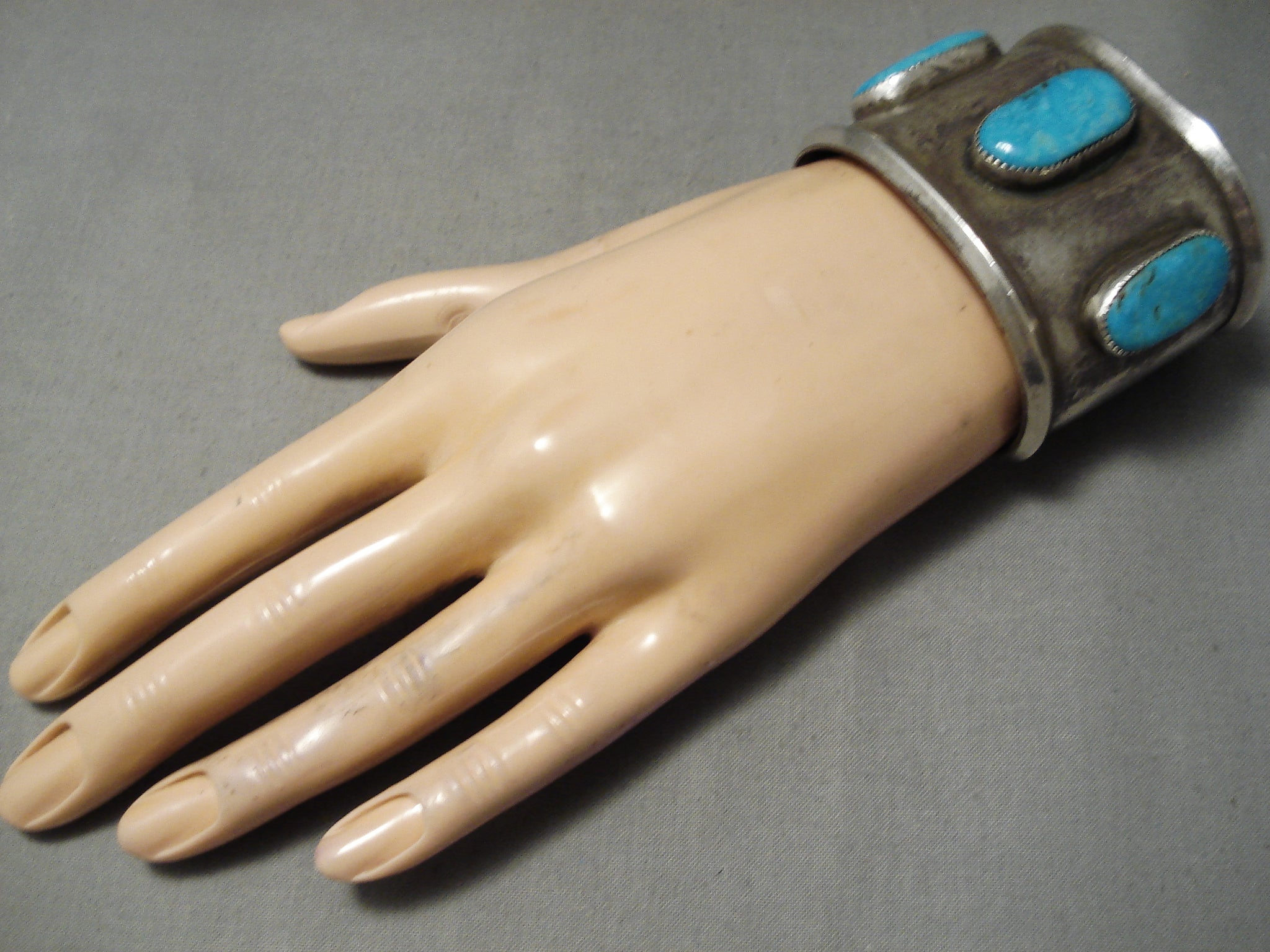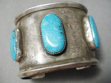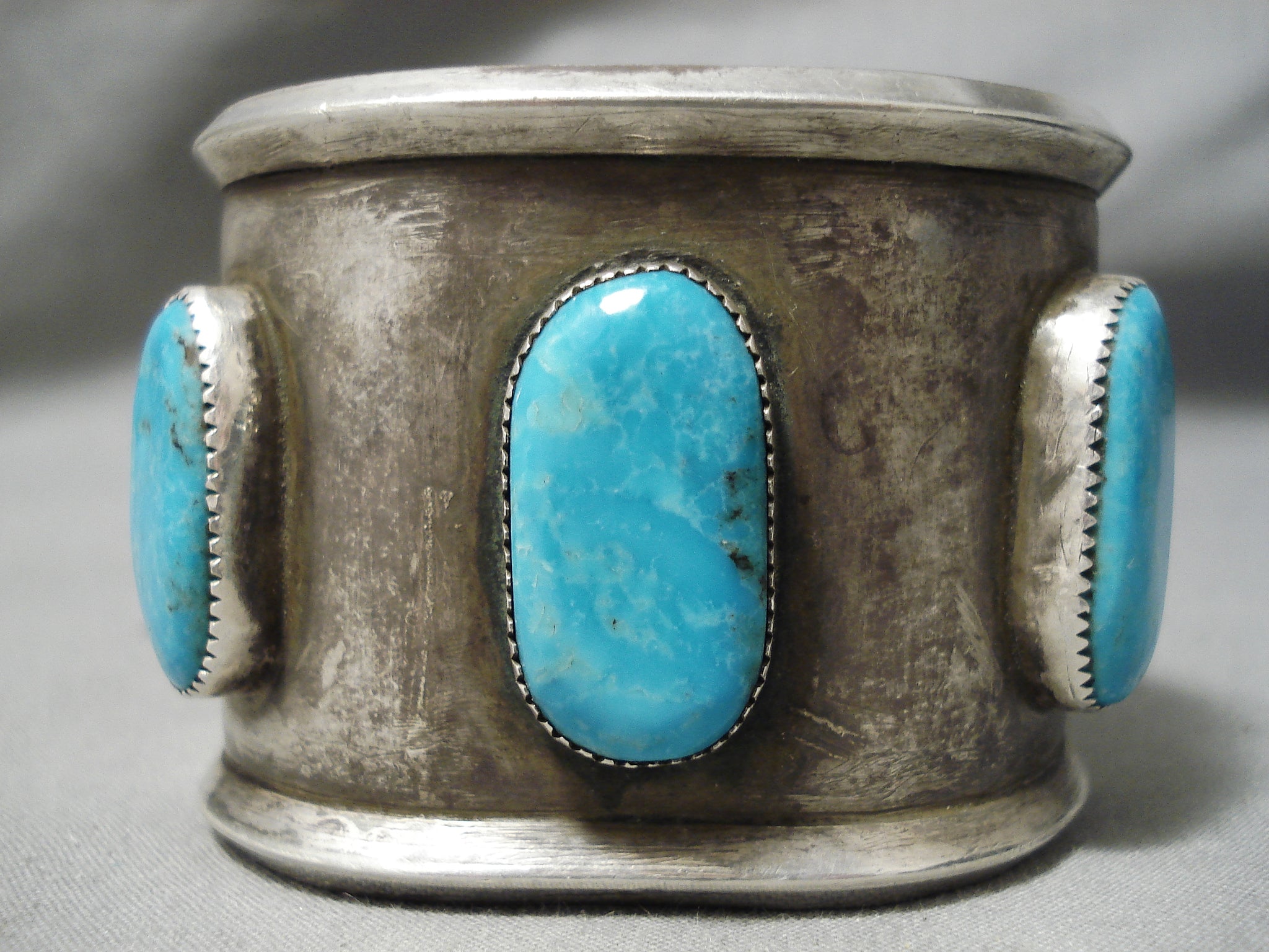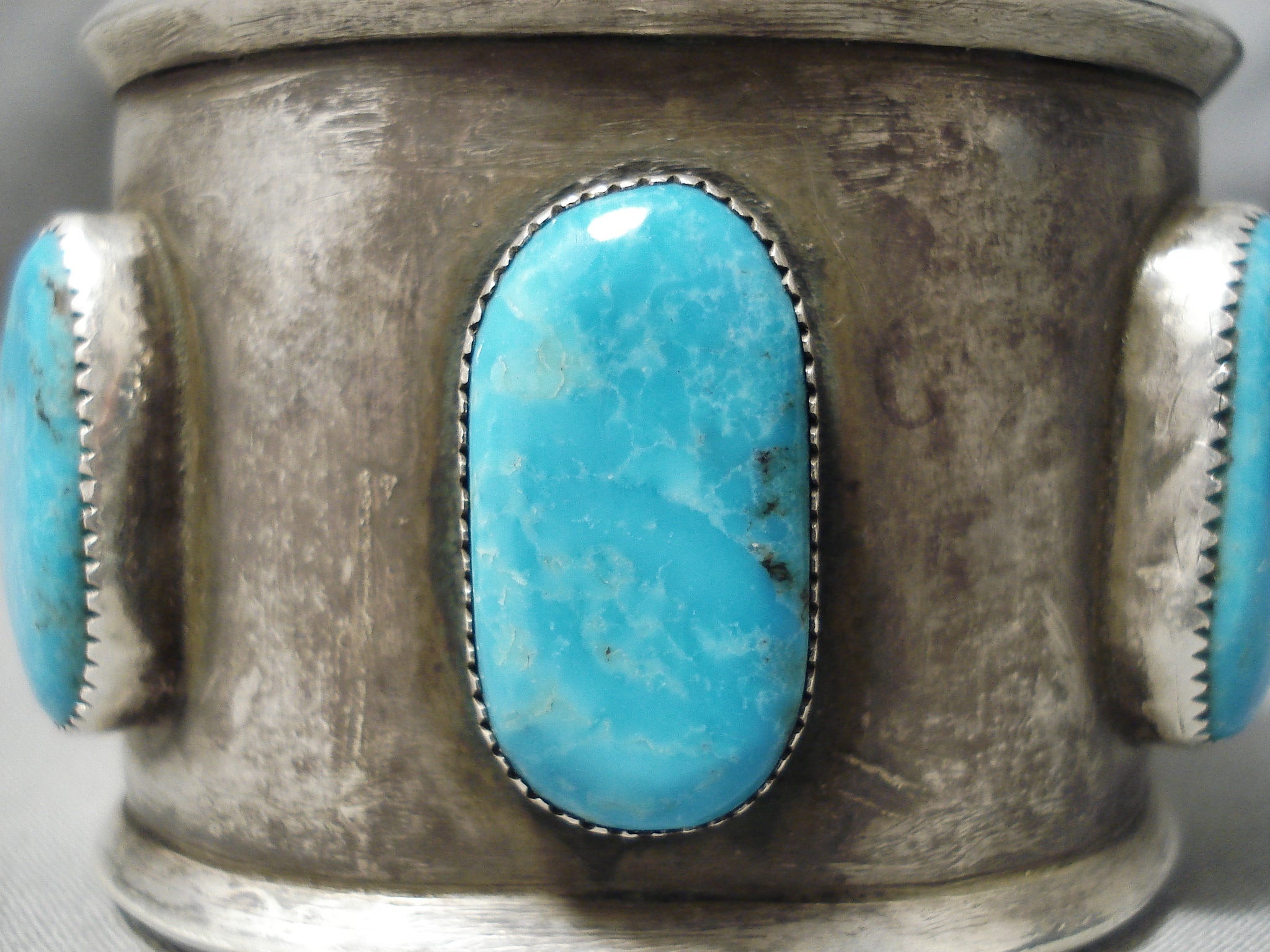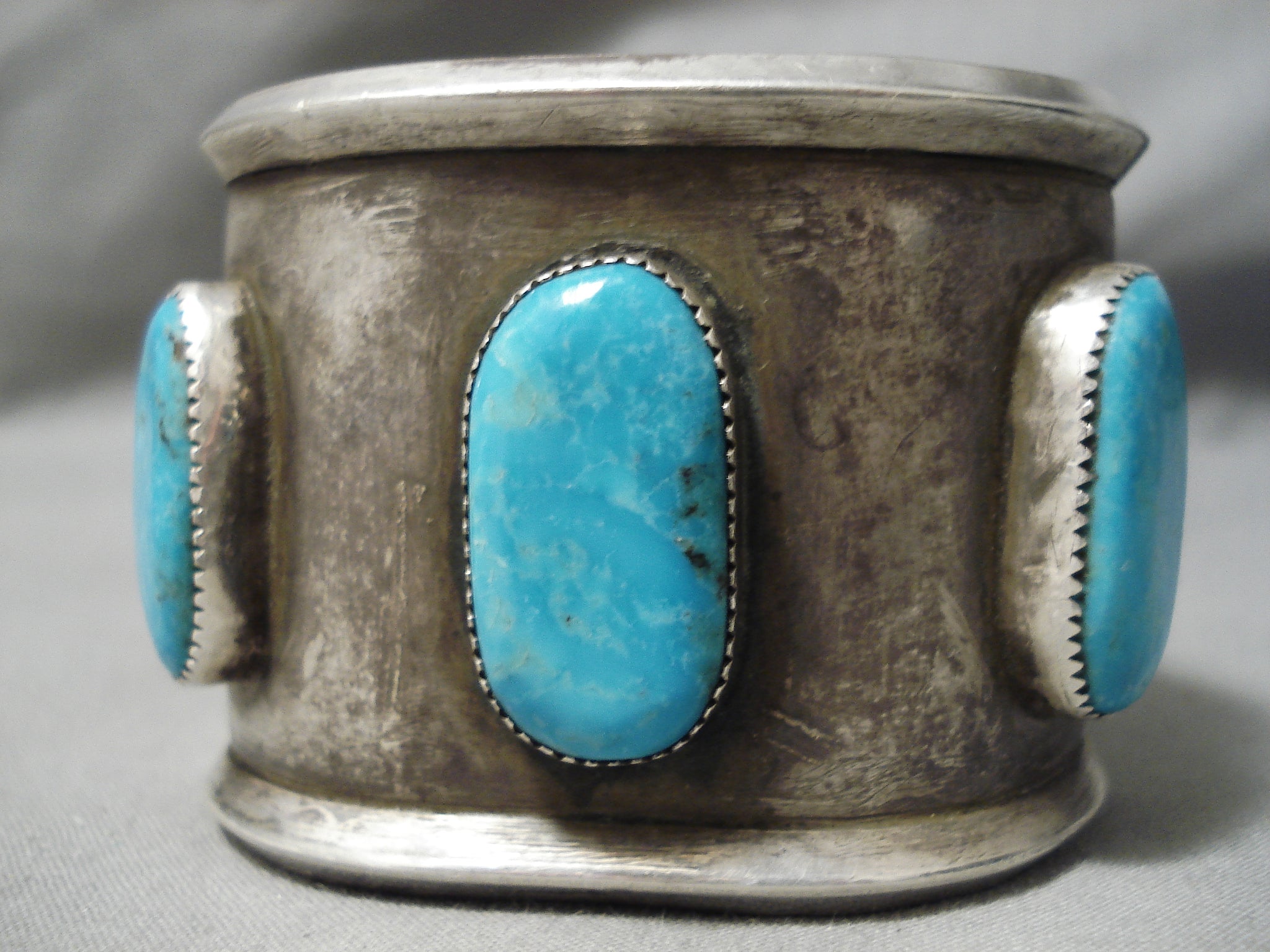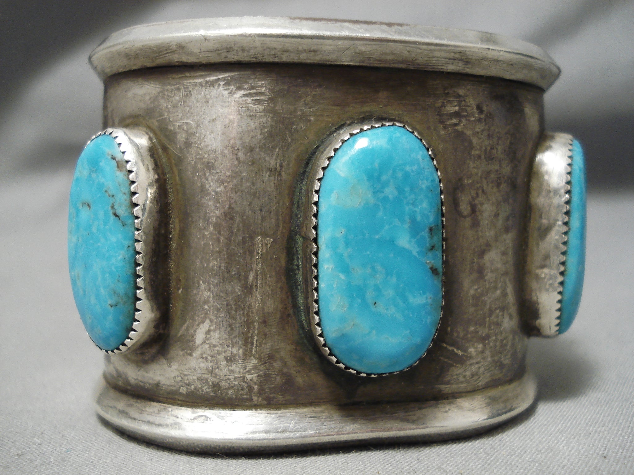 Tremendous Vintage Native American Navajo Huge Turquoise Sterling Silver Bracelet Old