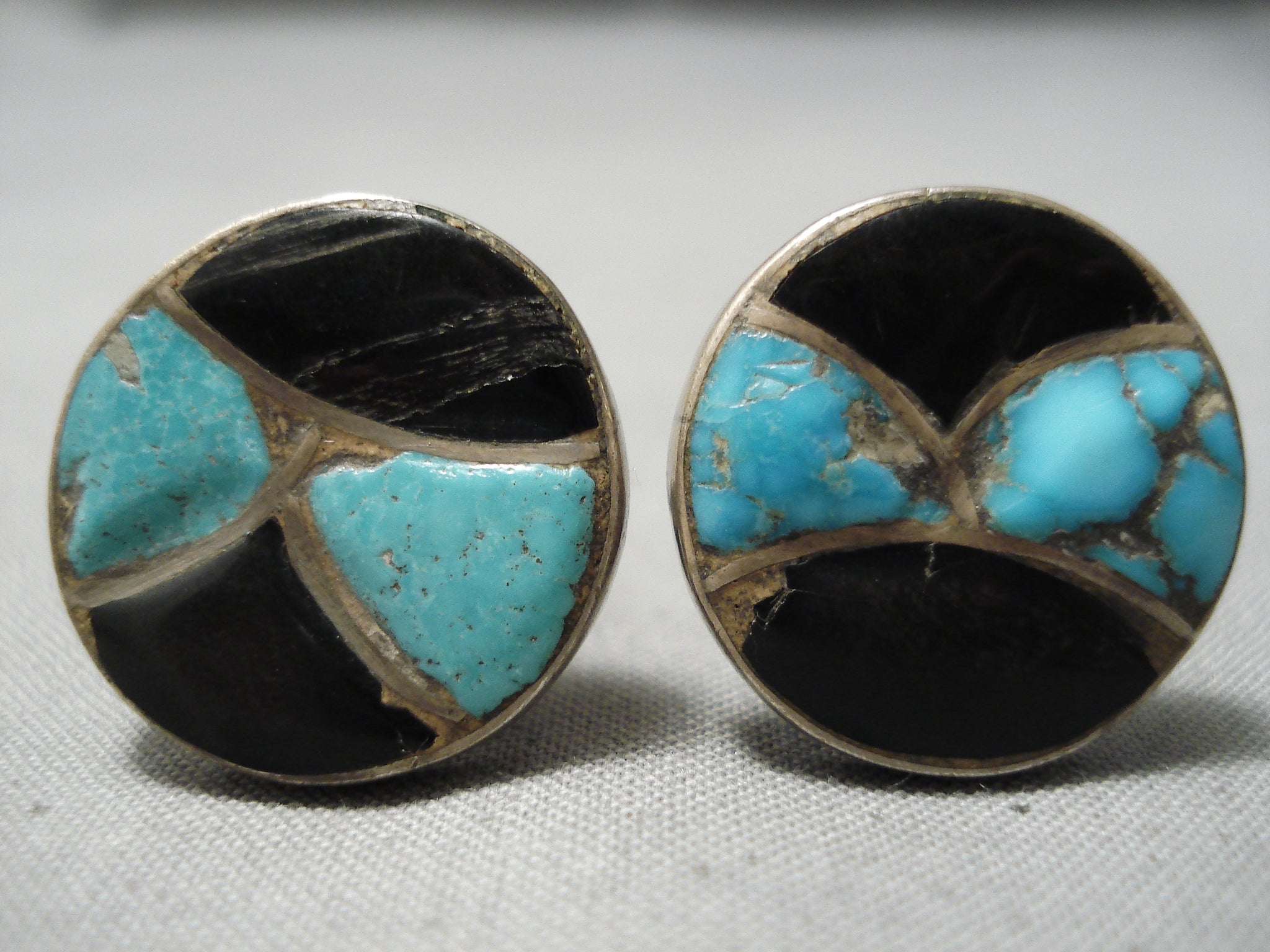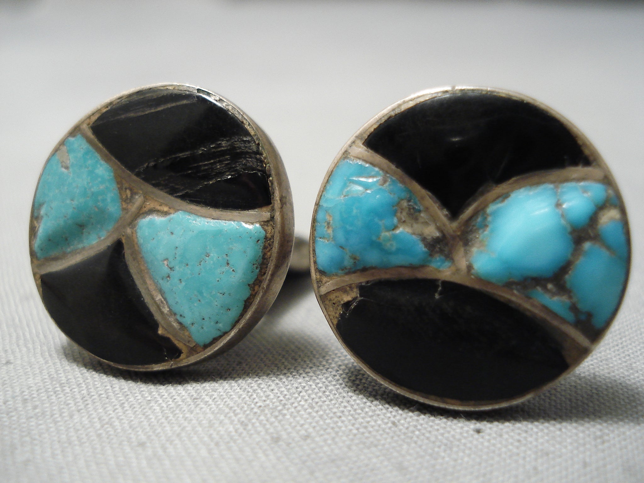 Tremendous Vintage Native American Navajo Turquoise Sterling Silver Men's Cufflinks Old