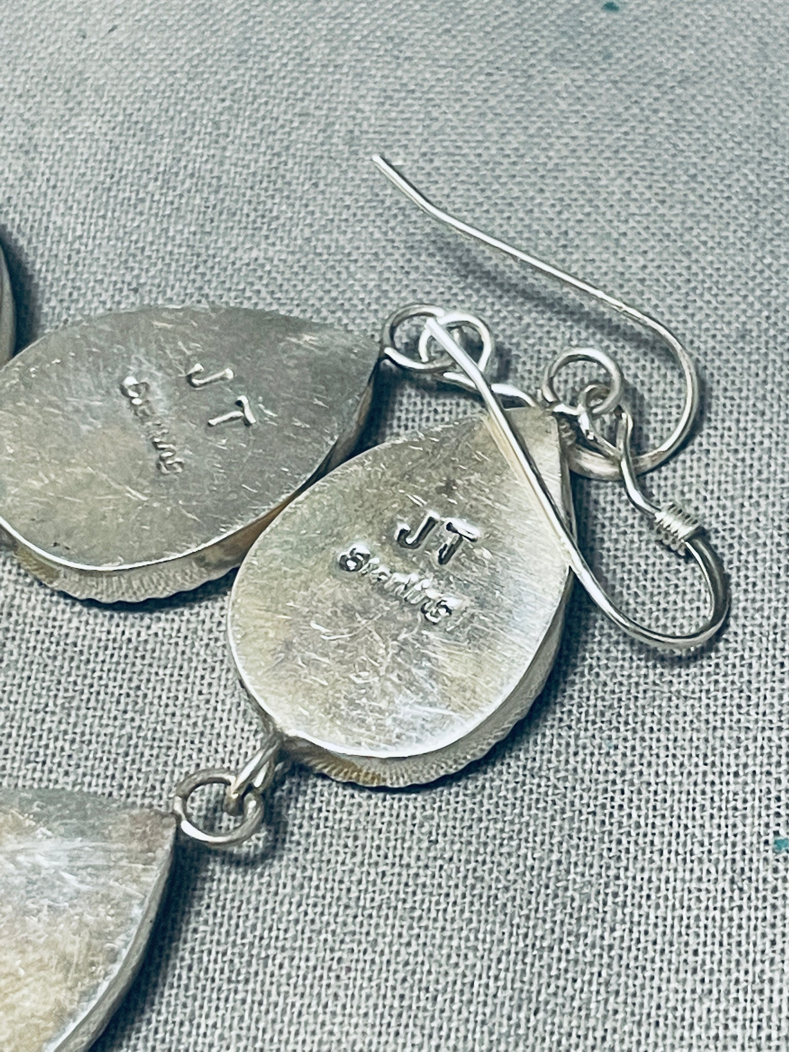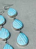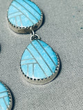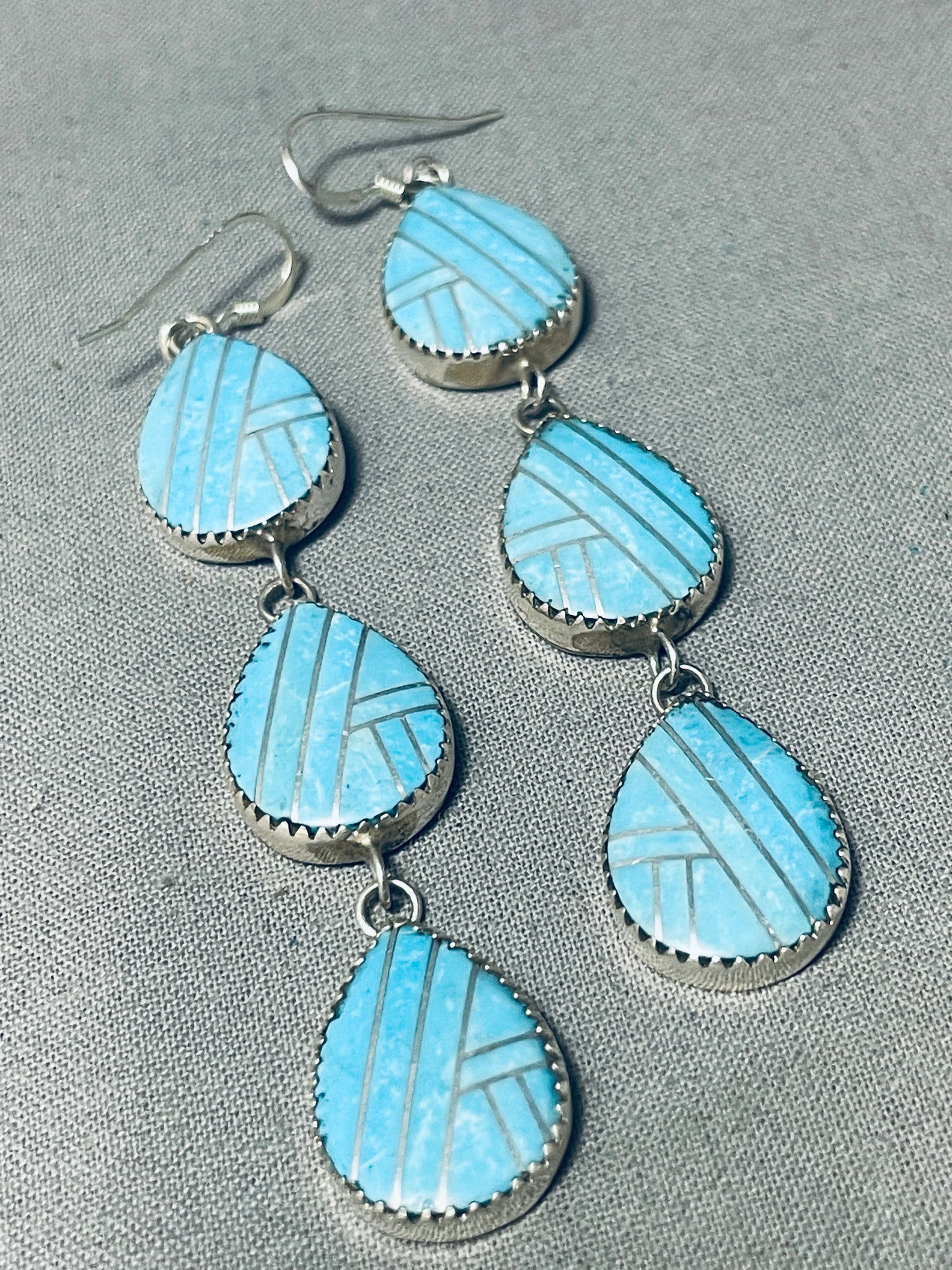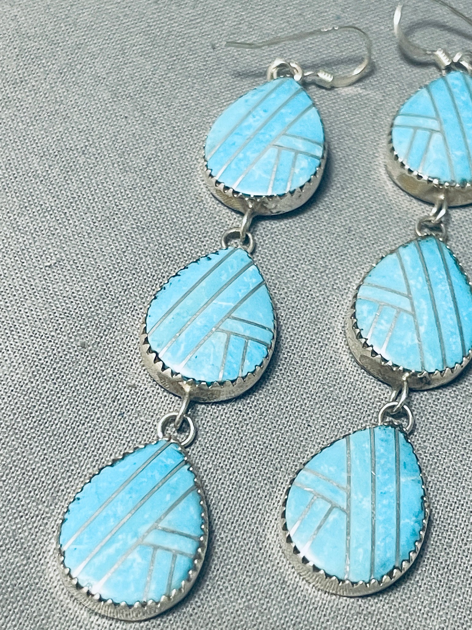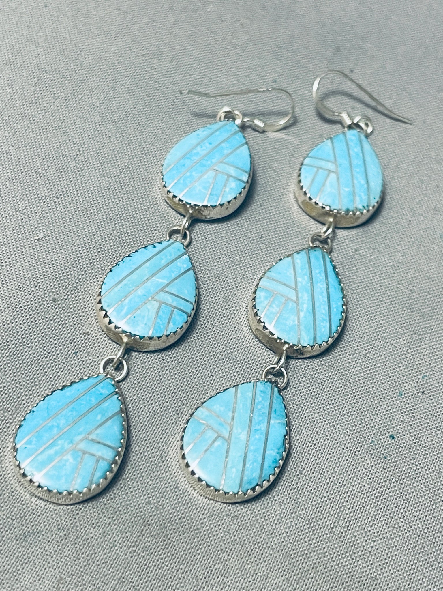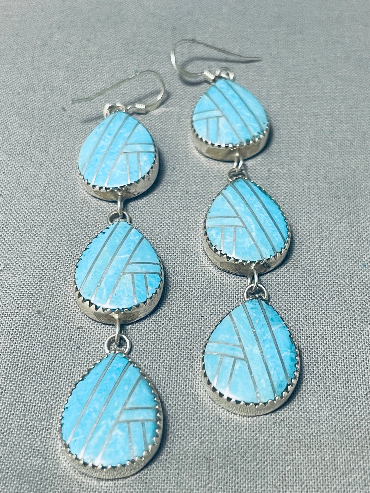 Triple Tier Native American Navajo Inlay Sterling Silver Earrings