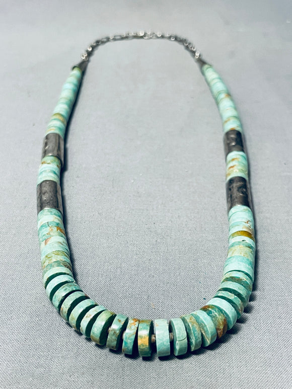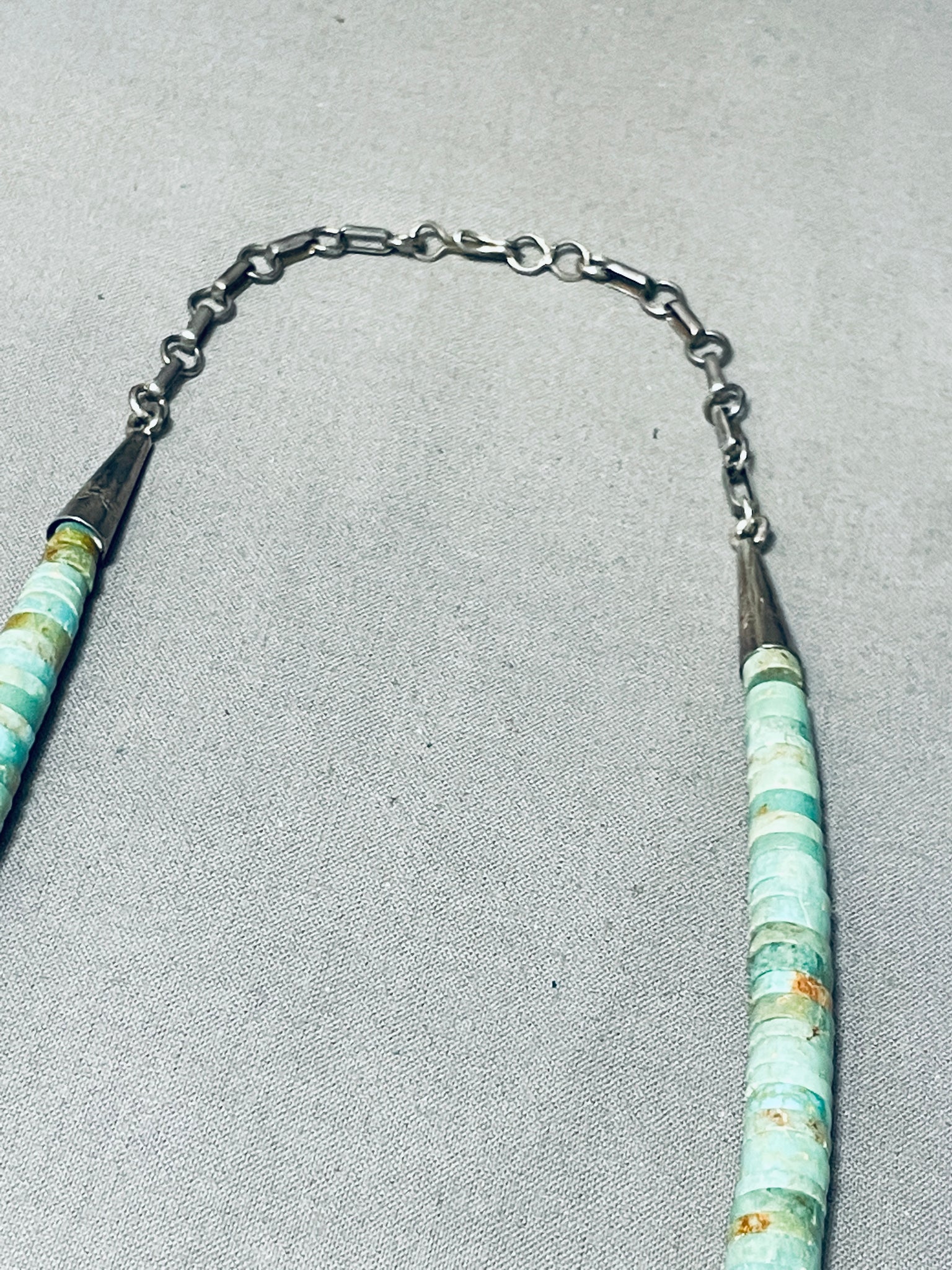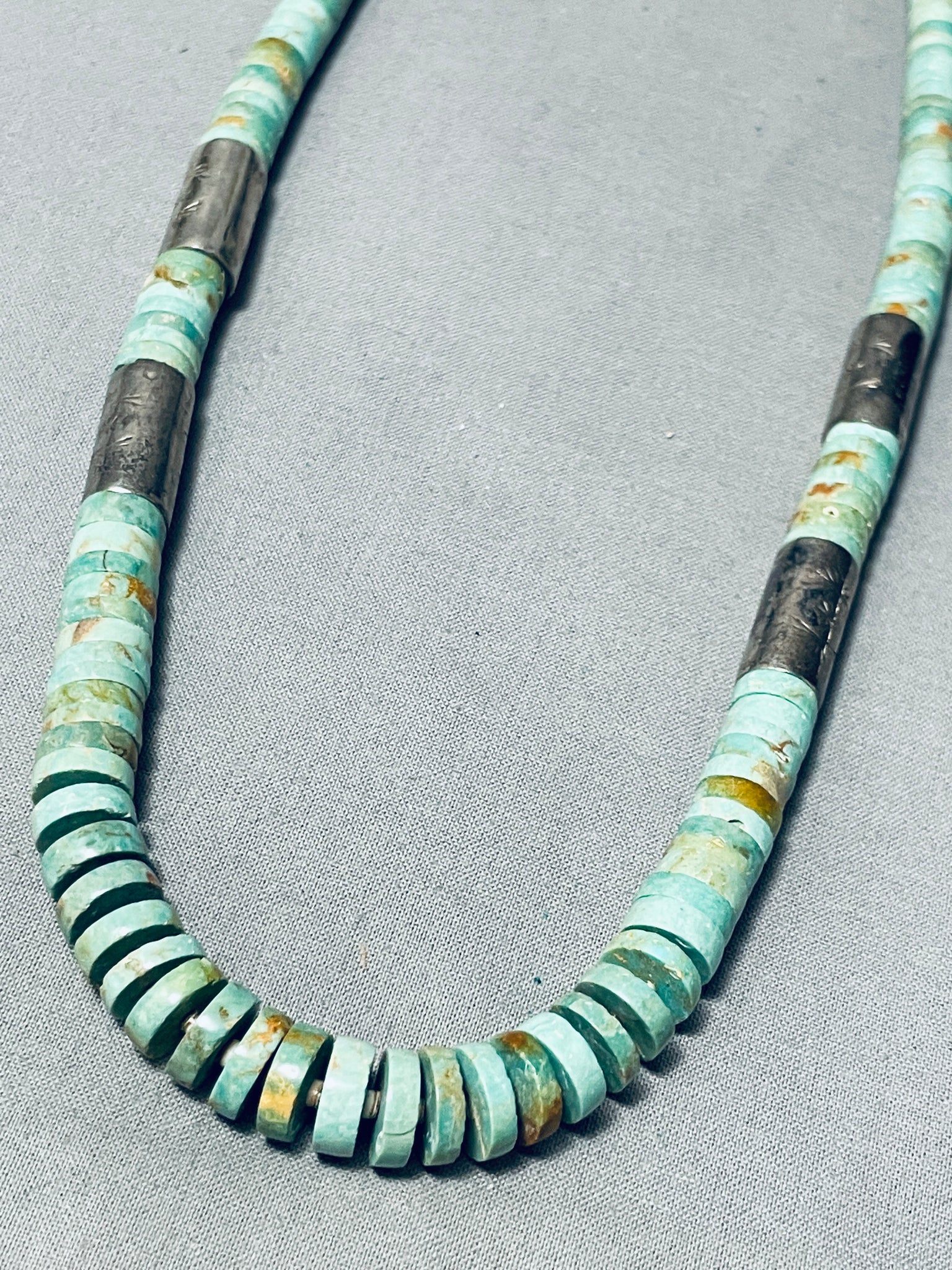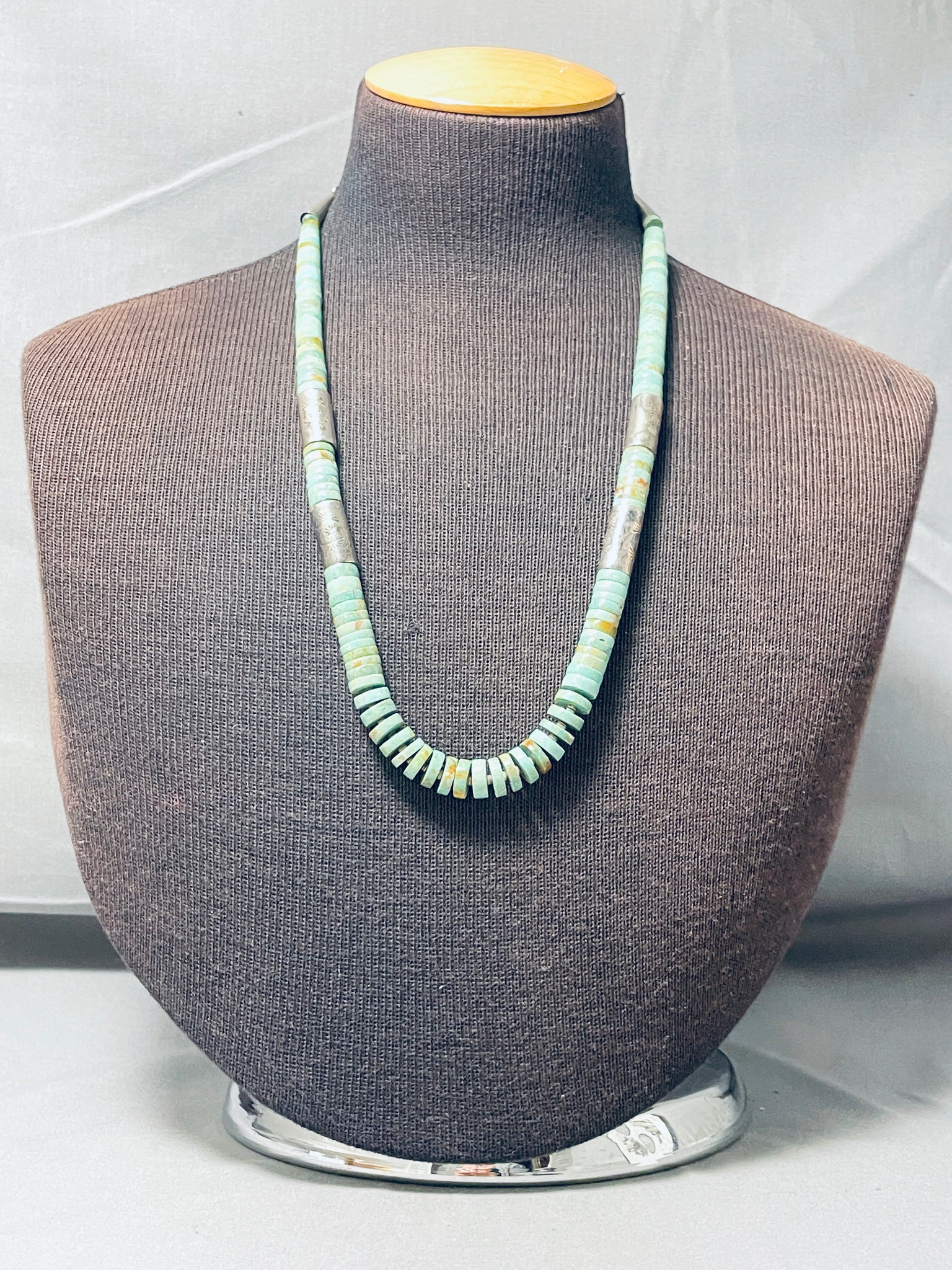 Tubule Silver Vintage Native American Navajo Royston Turquoise Disc Sterling Necklace