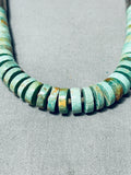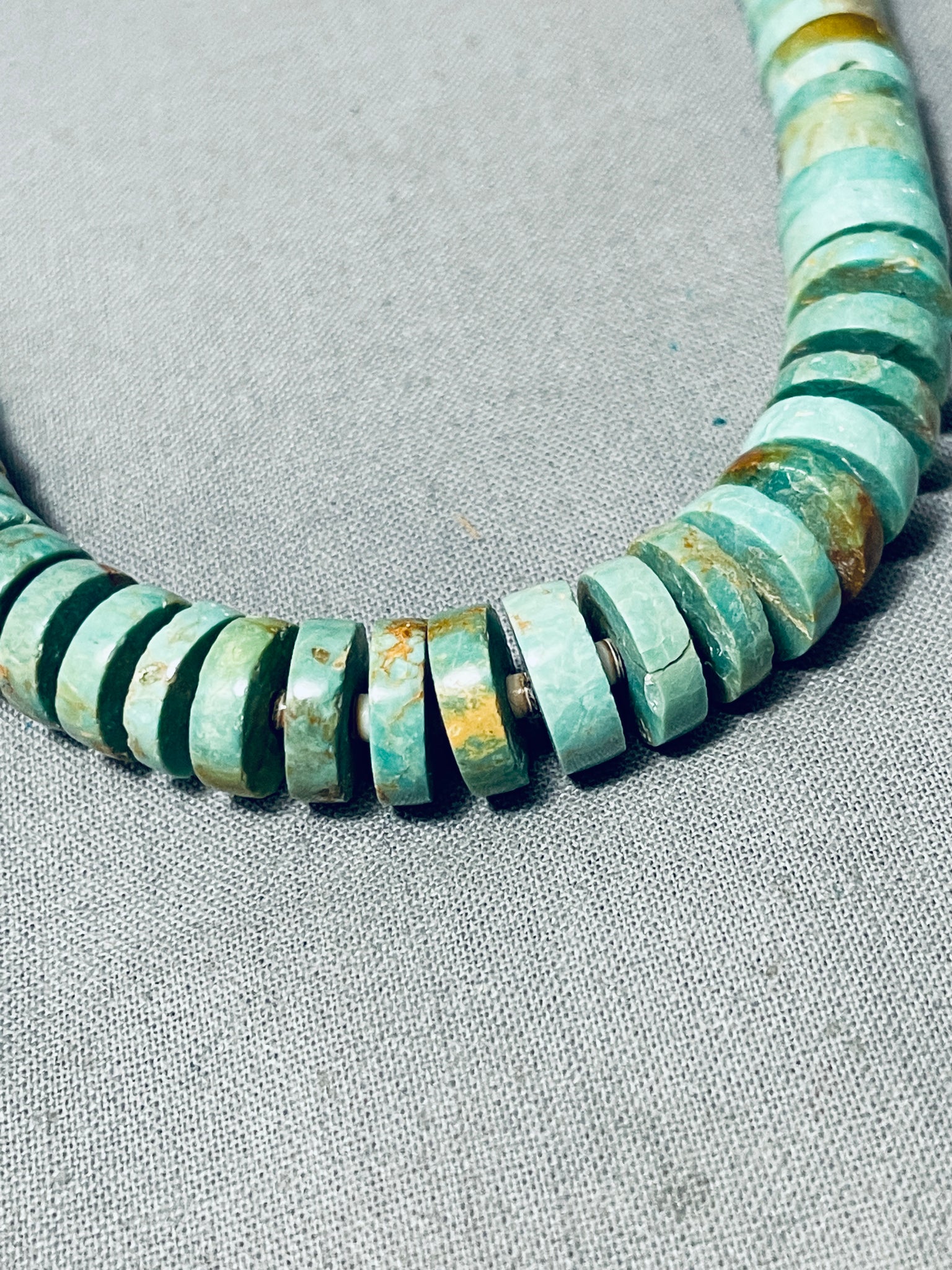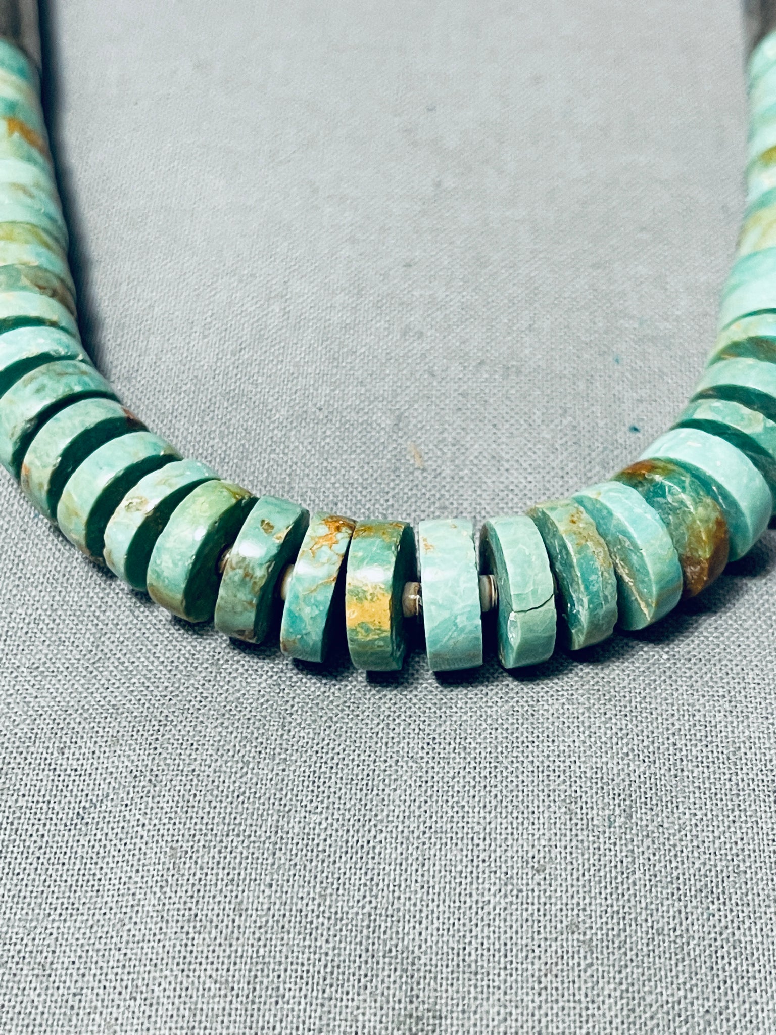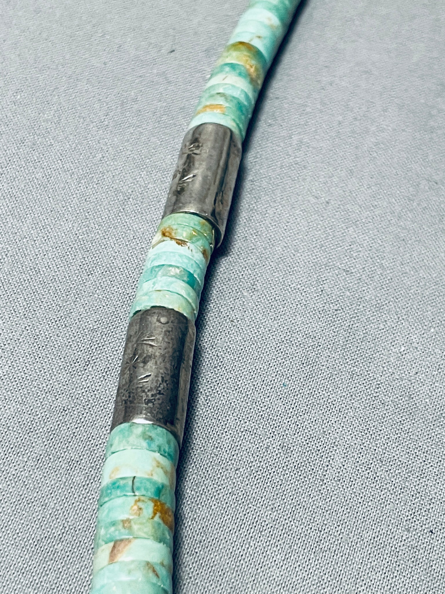 Tubule Silver Vintage Native American Navajo Royston Turquoise Disc Sterling Necklace