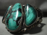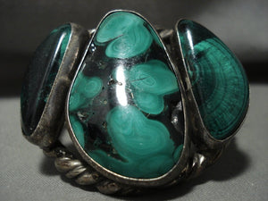 Ultra Heavy And Thick Vintage Navajo Malachite Native American Jewelry Silver Coiled Bracelet Old
