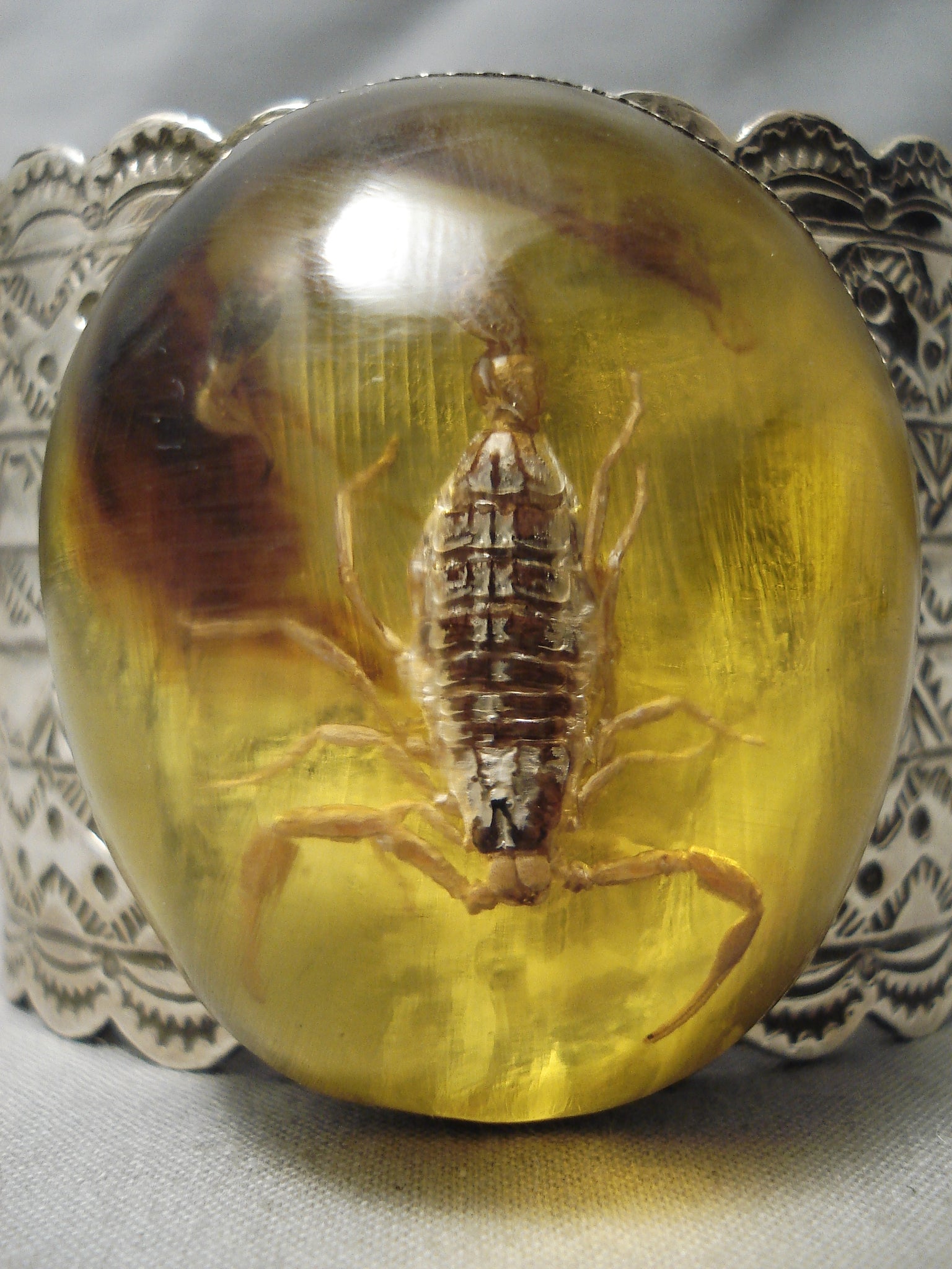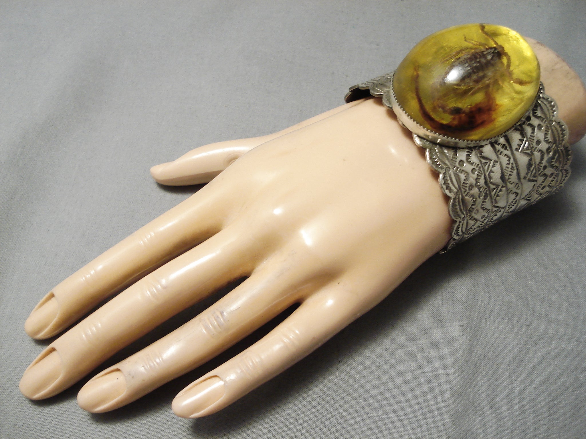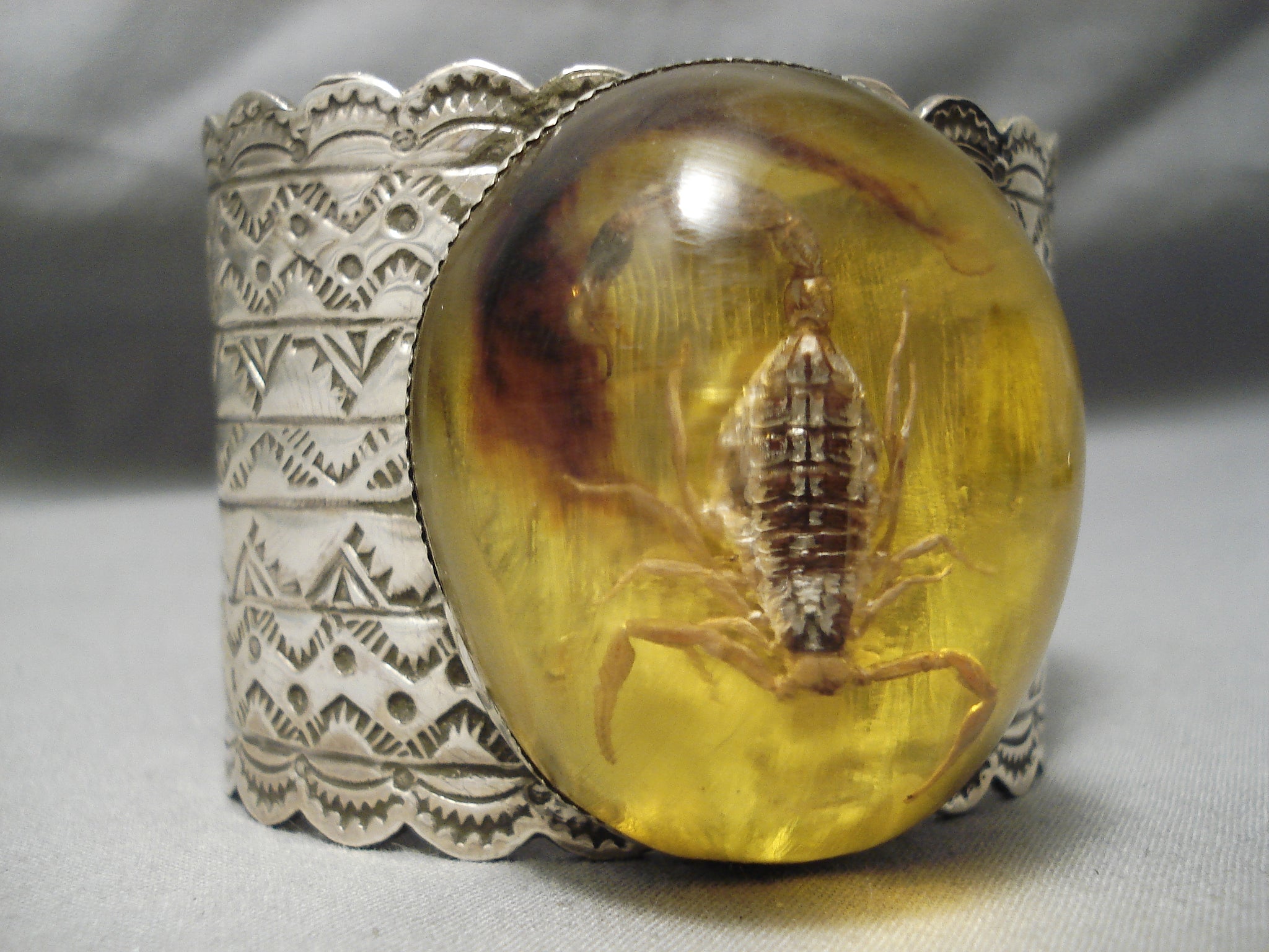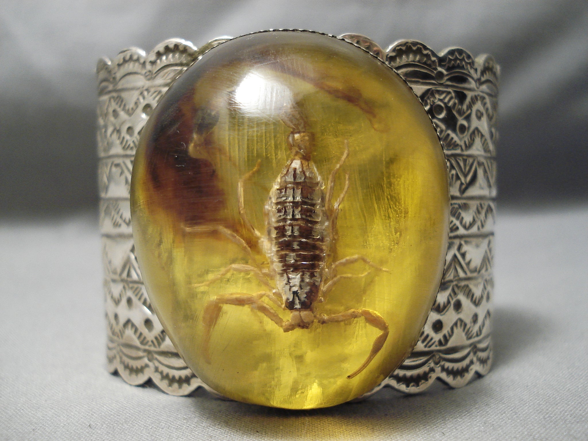 Ultra Rare Native American Scorpion Amber Sterling Silver Bracelet Huge