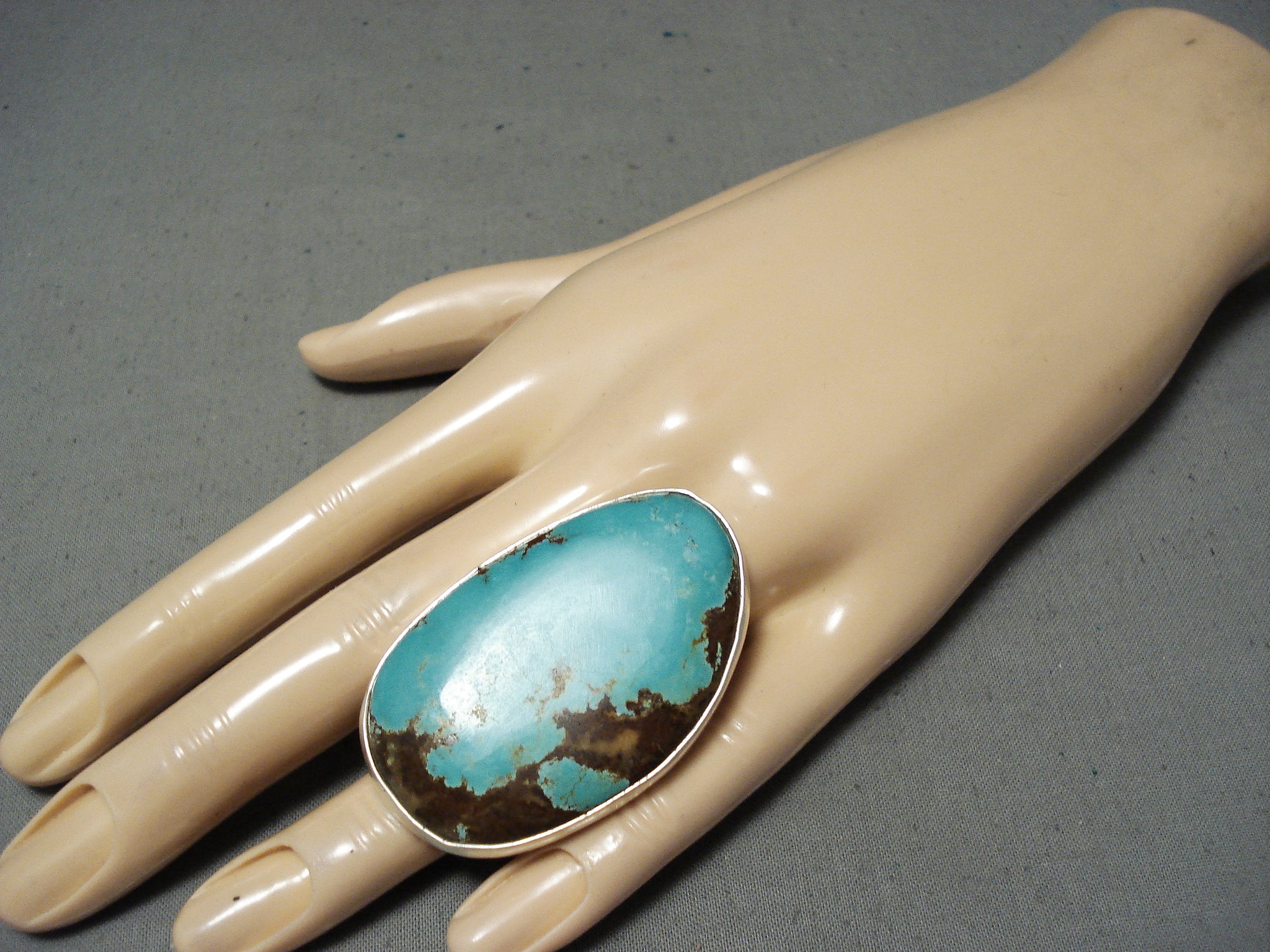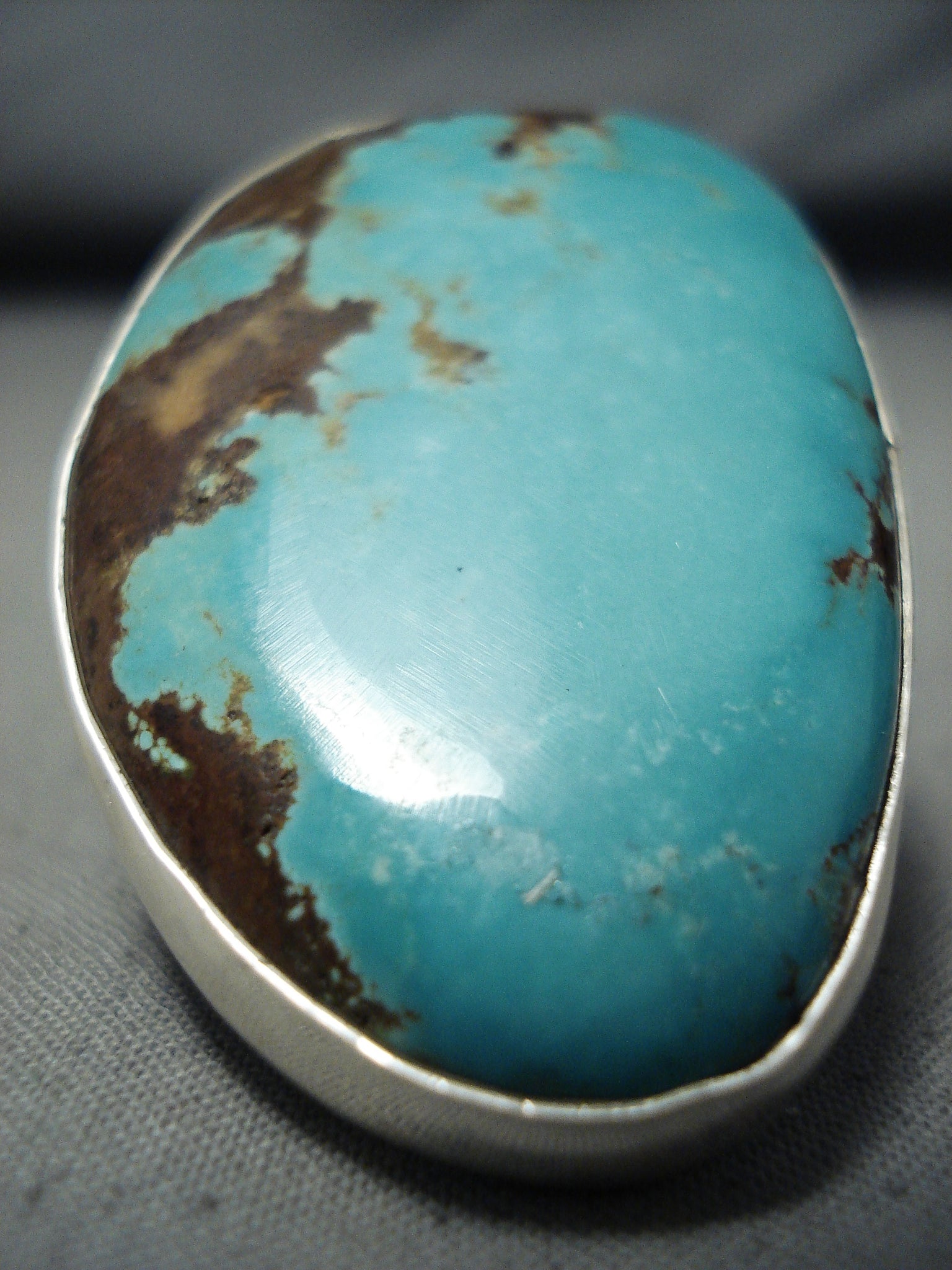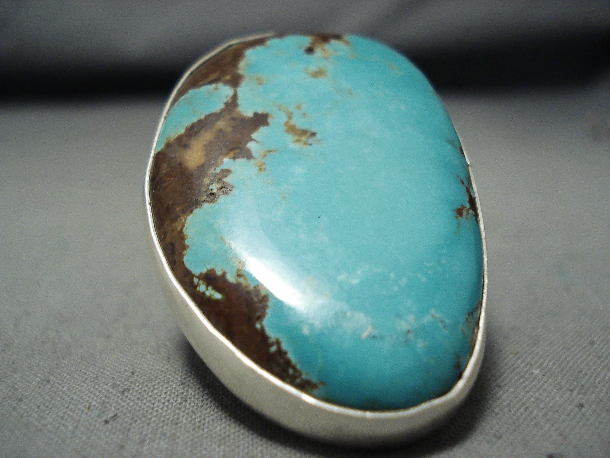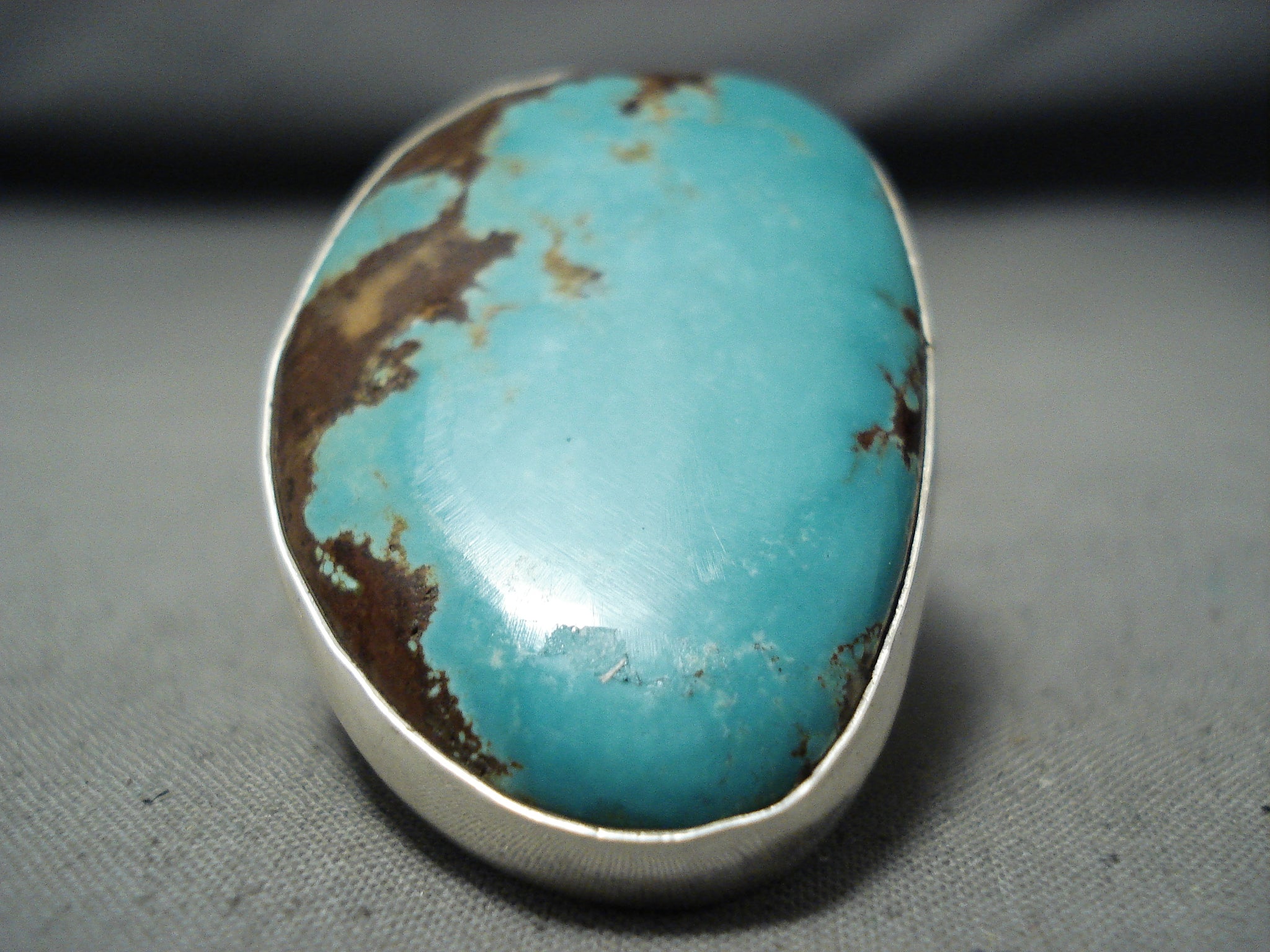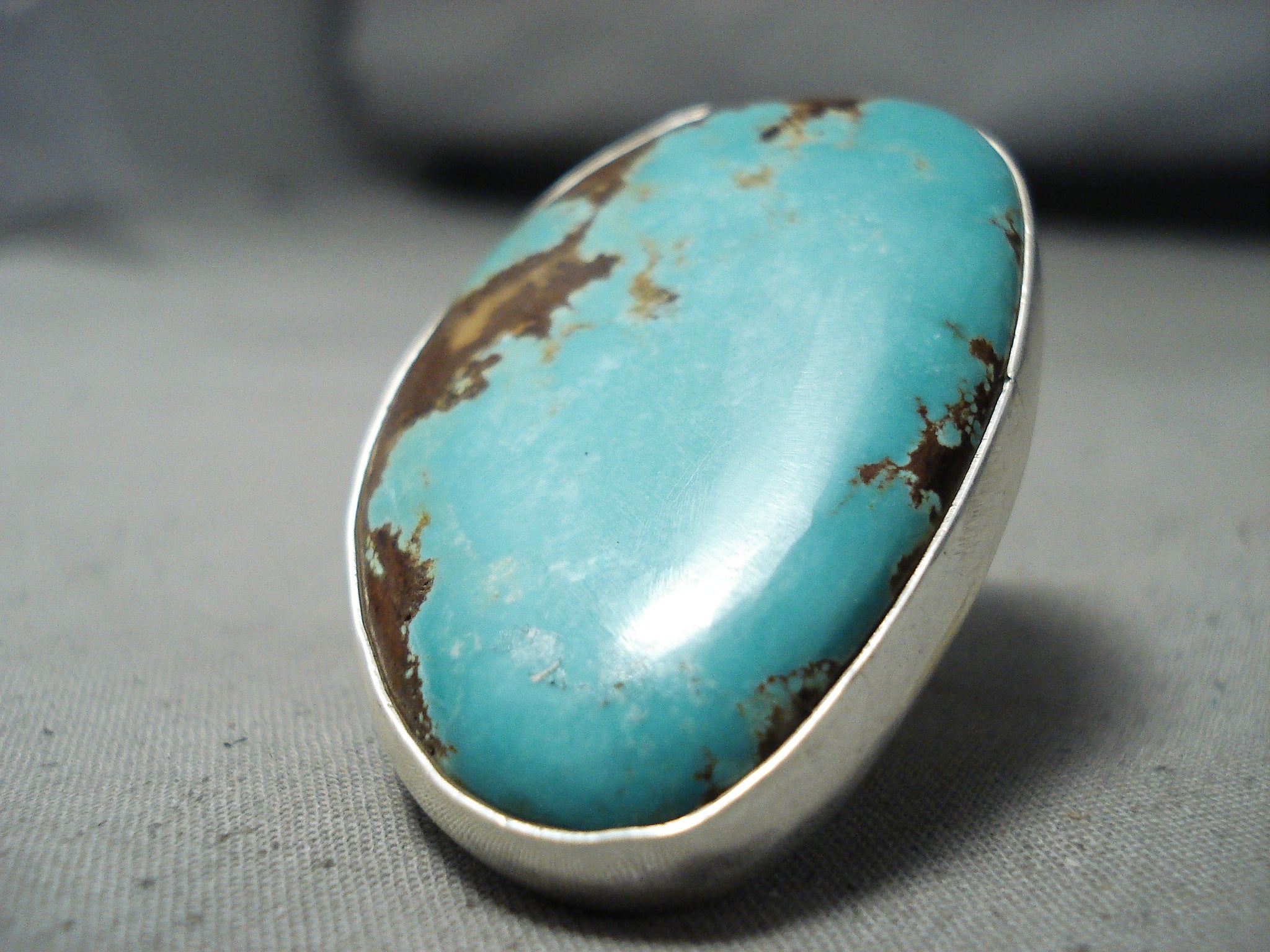 Unbelievable Native American Navajo #8 Turquoise Mine Sterling Silver Ring Signed