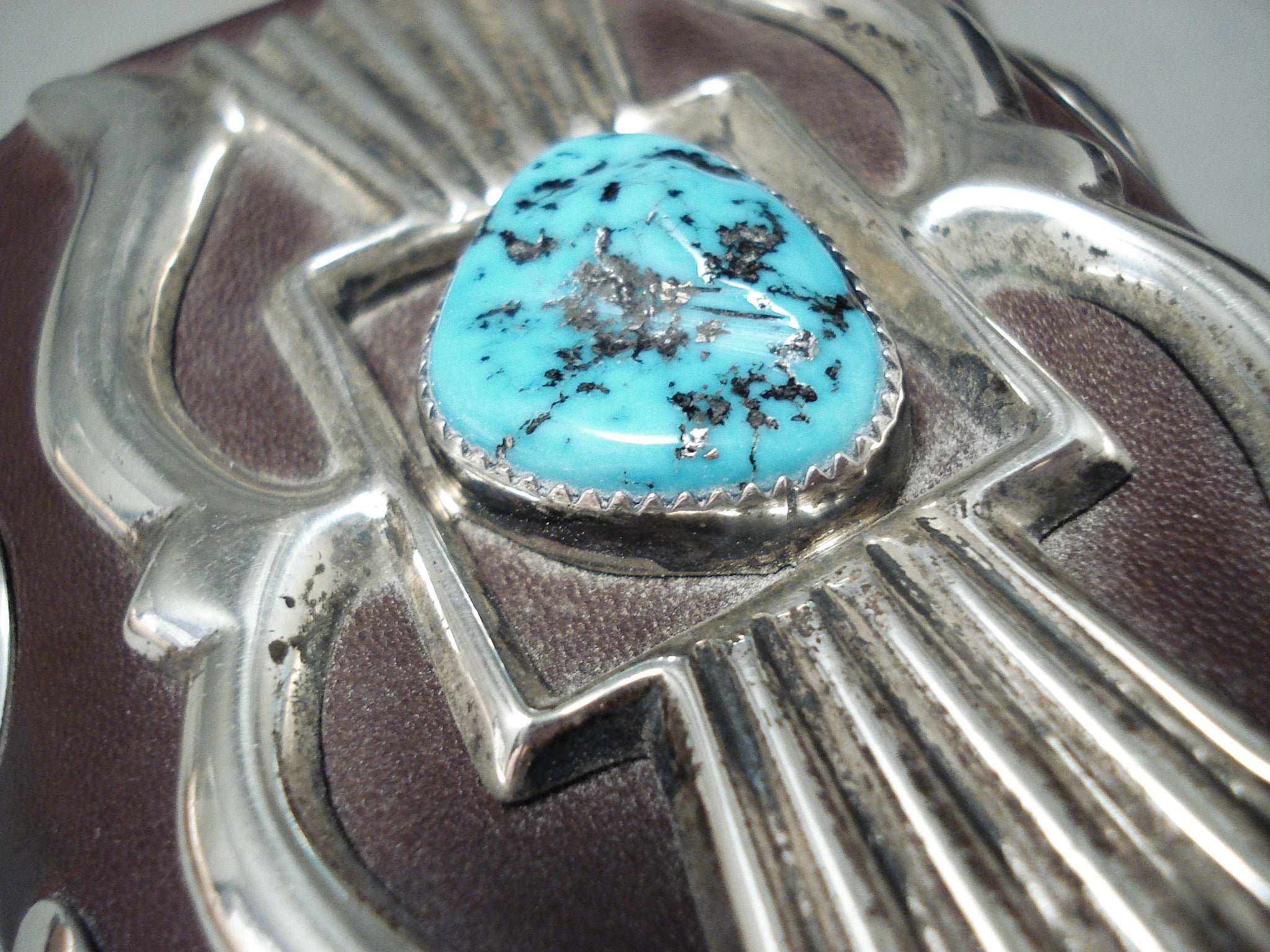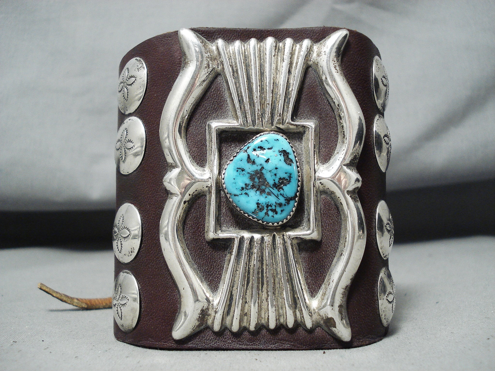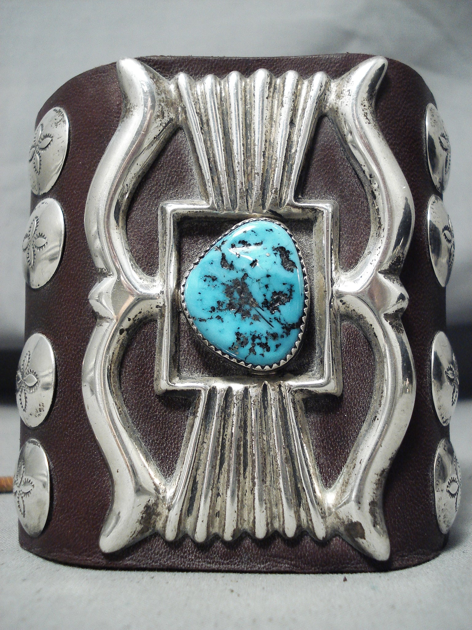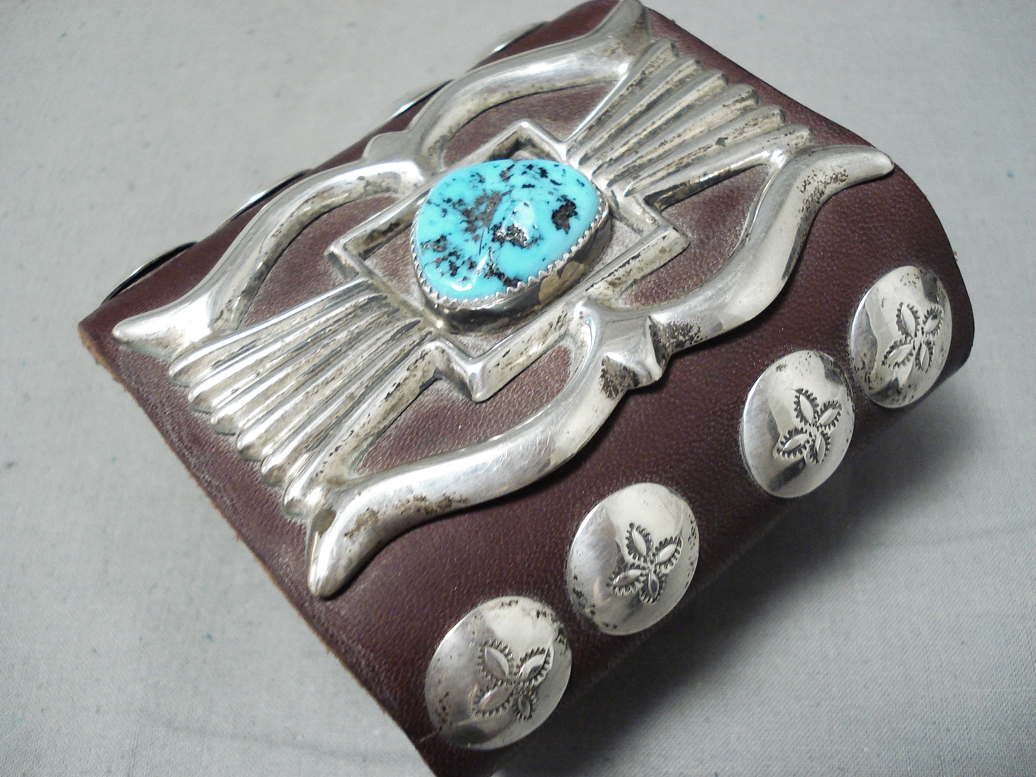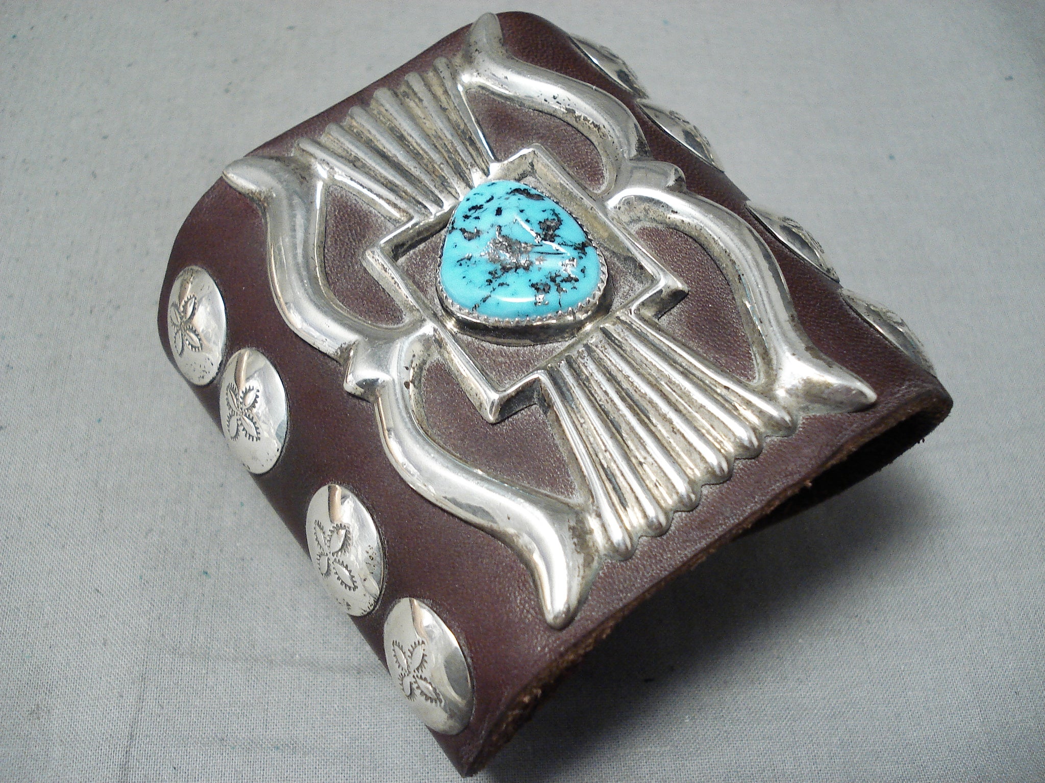 Unforgettable Vintage Native American Navajo Sleeping Beauty Turquoise Sterling Silver Bowguard
