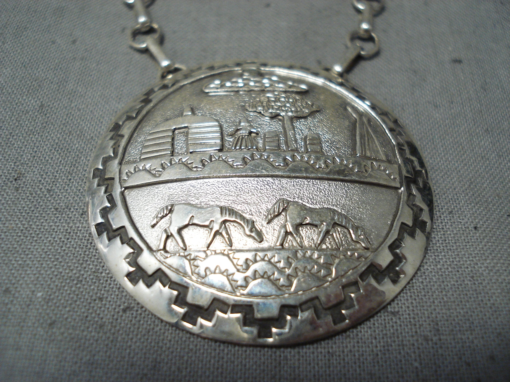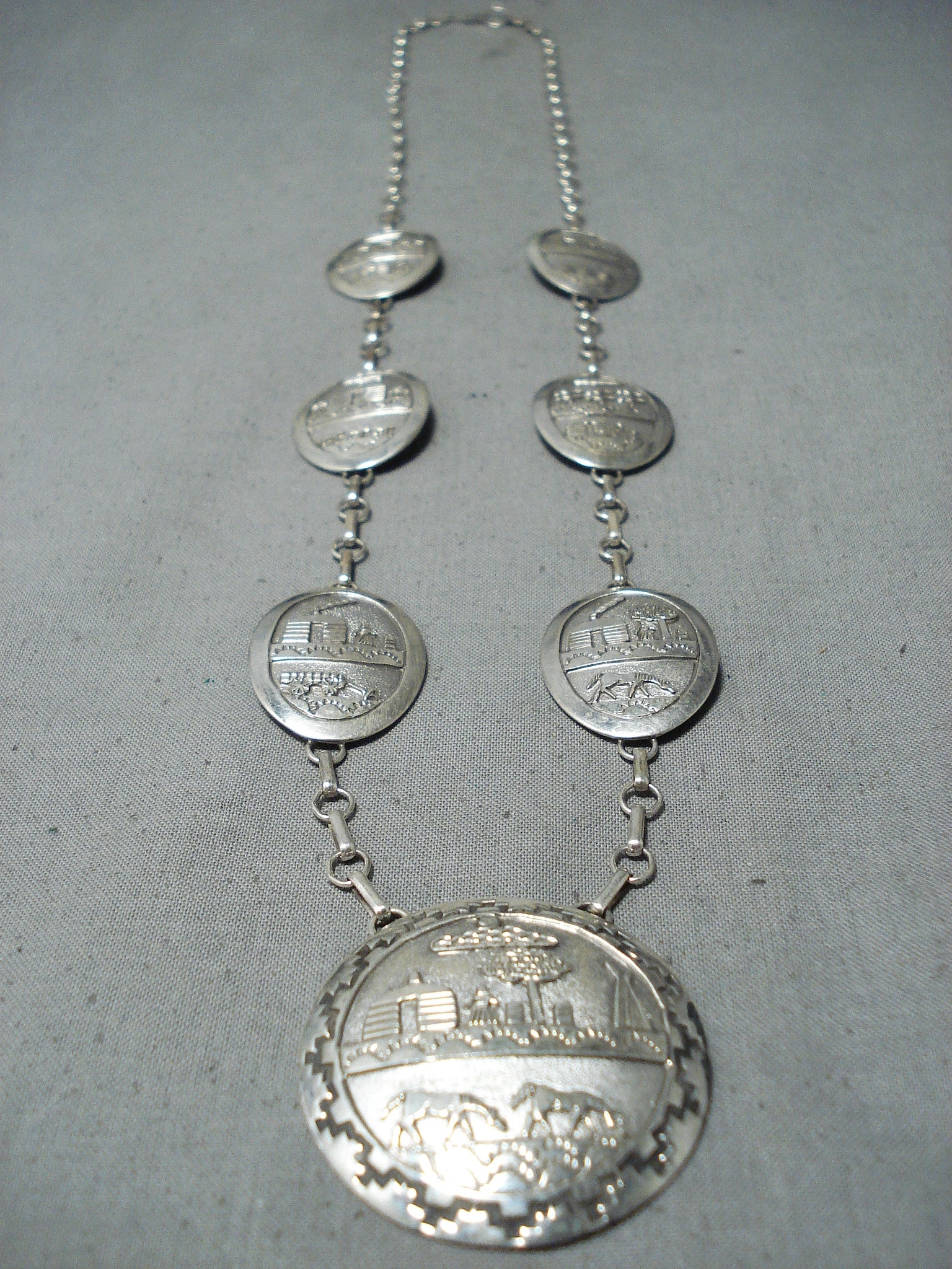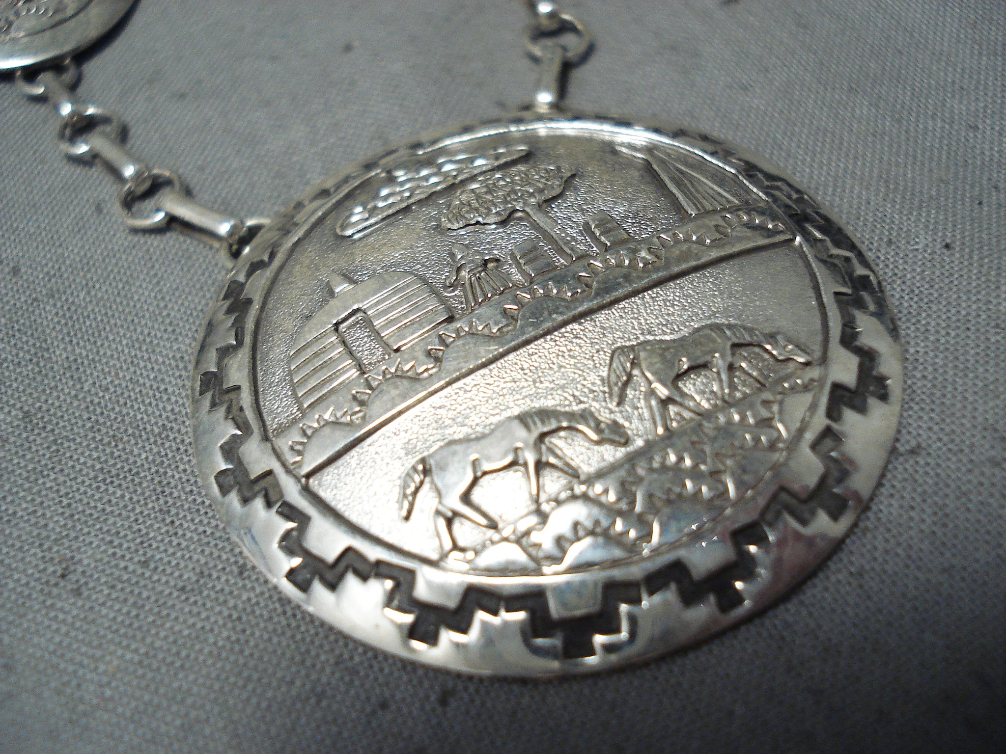 Unique Exquisite Navajo Sterling Silver Storyteller Necklace Native American