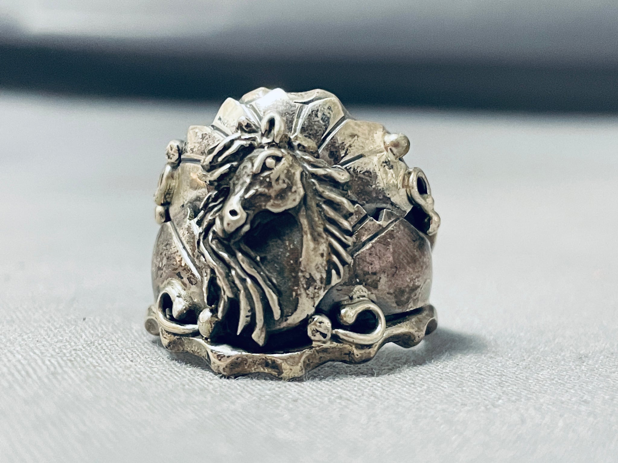 Unique Native American Navajo Sterling Silver Handcarved Huge Horse Ring