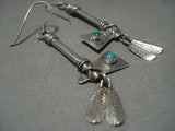 Unique!! Vintage Navajo Tomahawk Snake Eyes Turquoise Native American Jewelry Silver Earrings