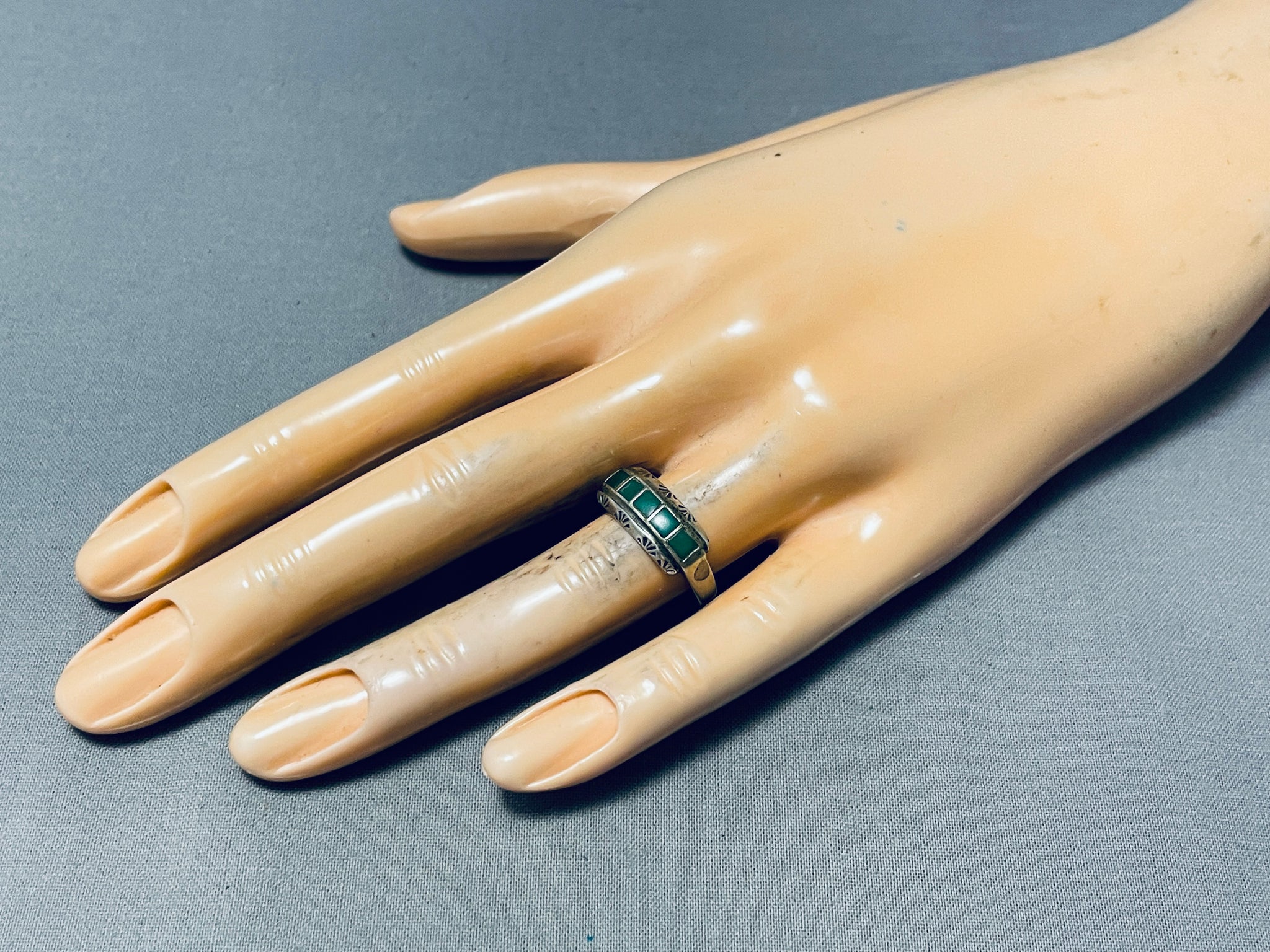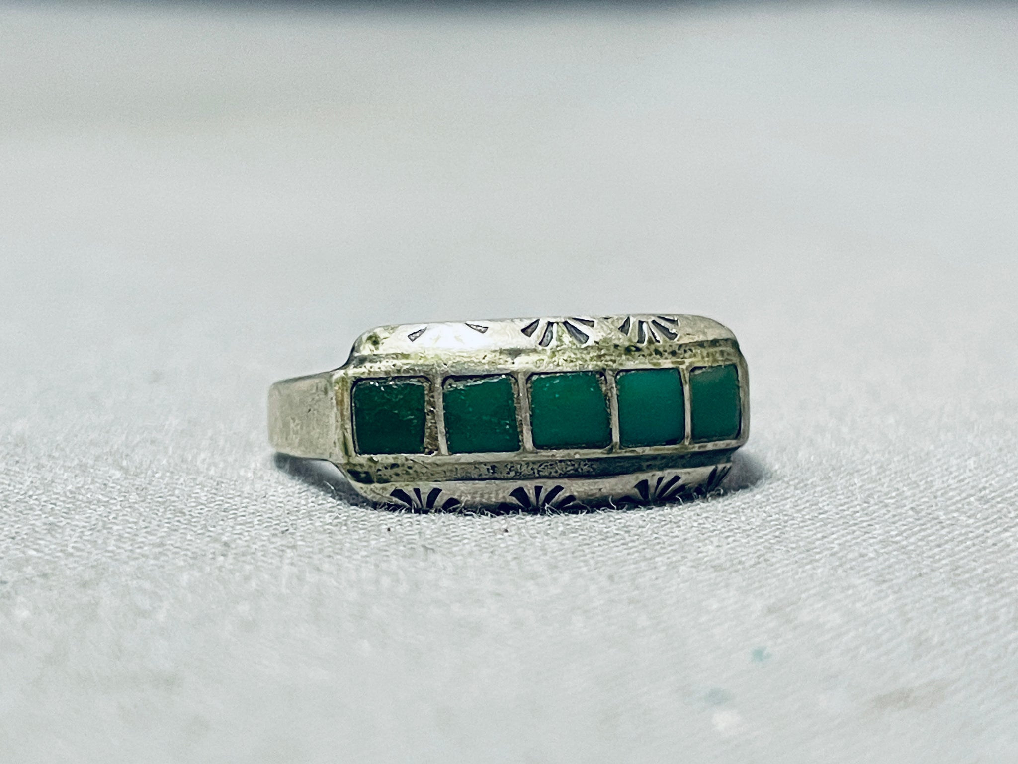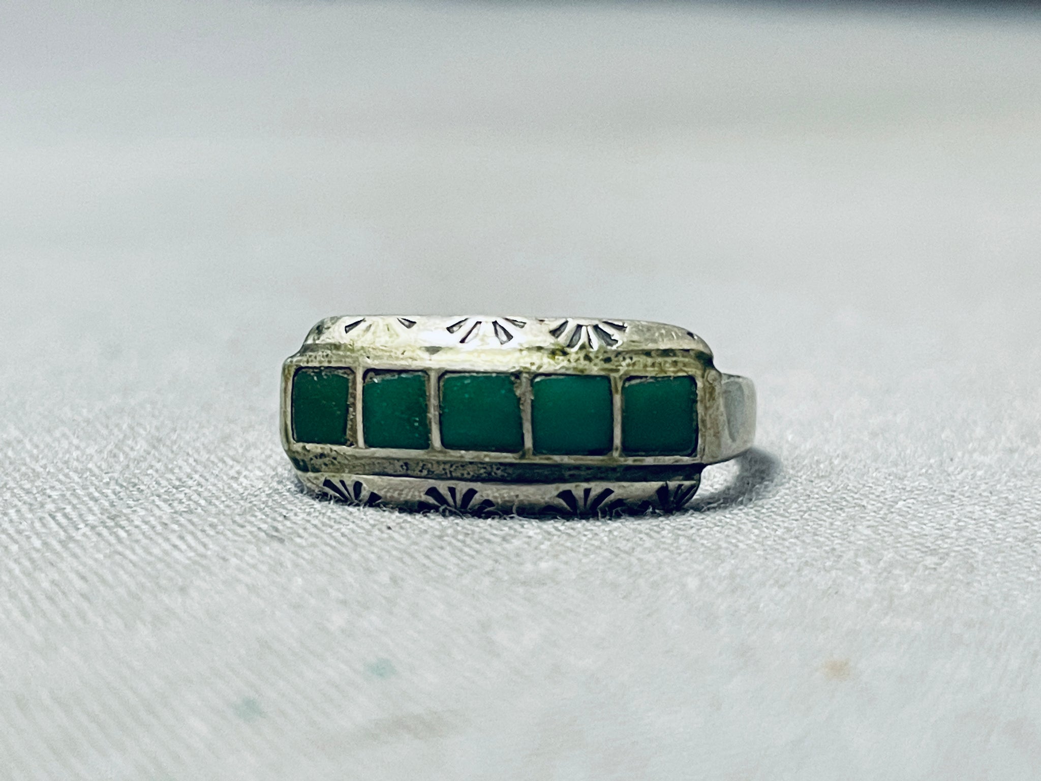 Very Early Vintage Native American Zuni 5 Cerrillos Turquoise Sterling Silver Ring