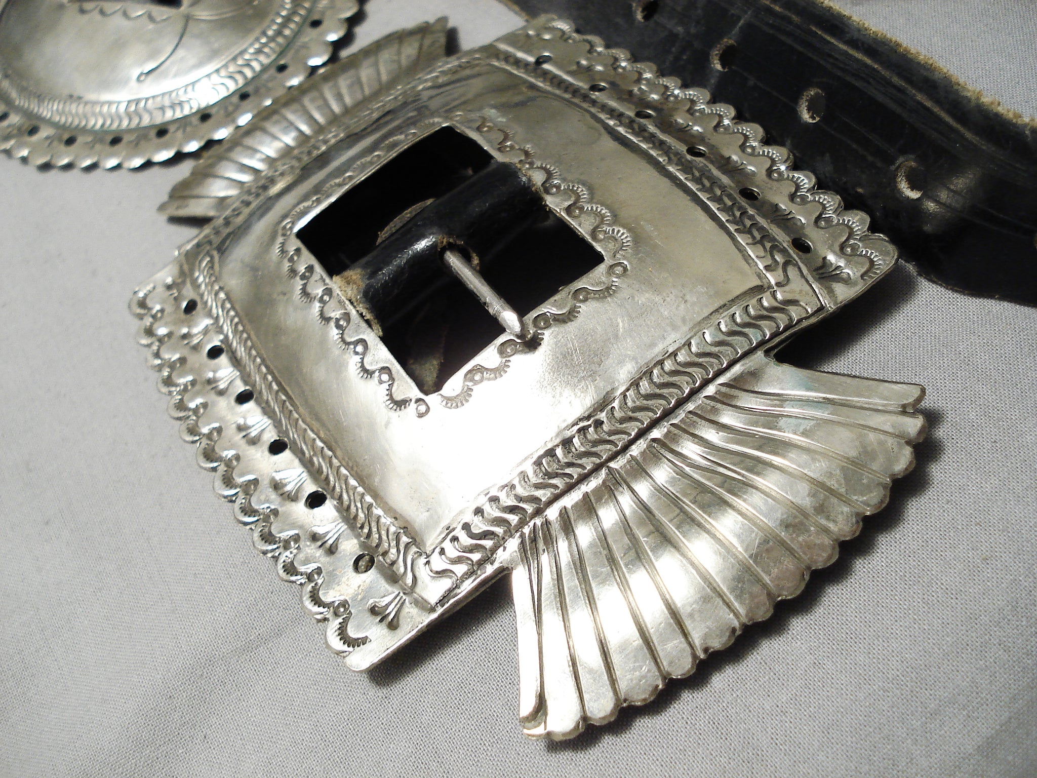 Very Important Early 1900's Vintage Native American Navajo Coin Silver Concho Belt Old