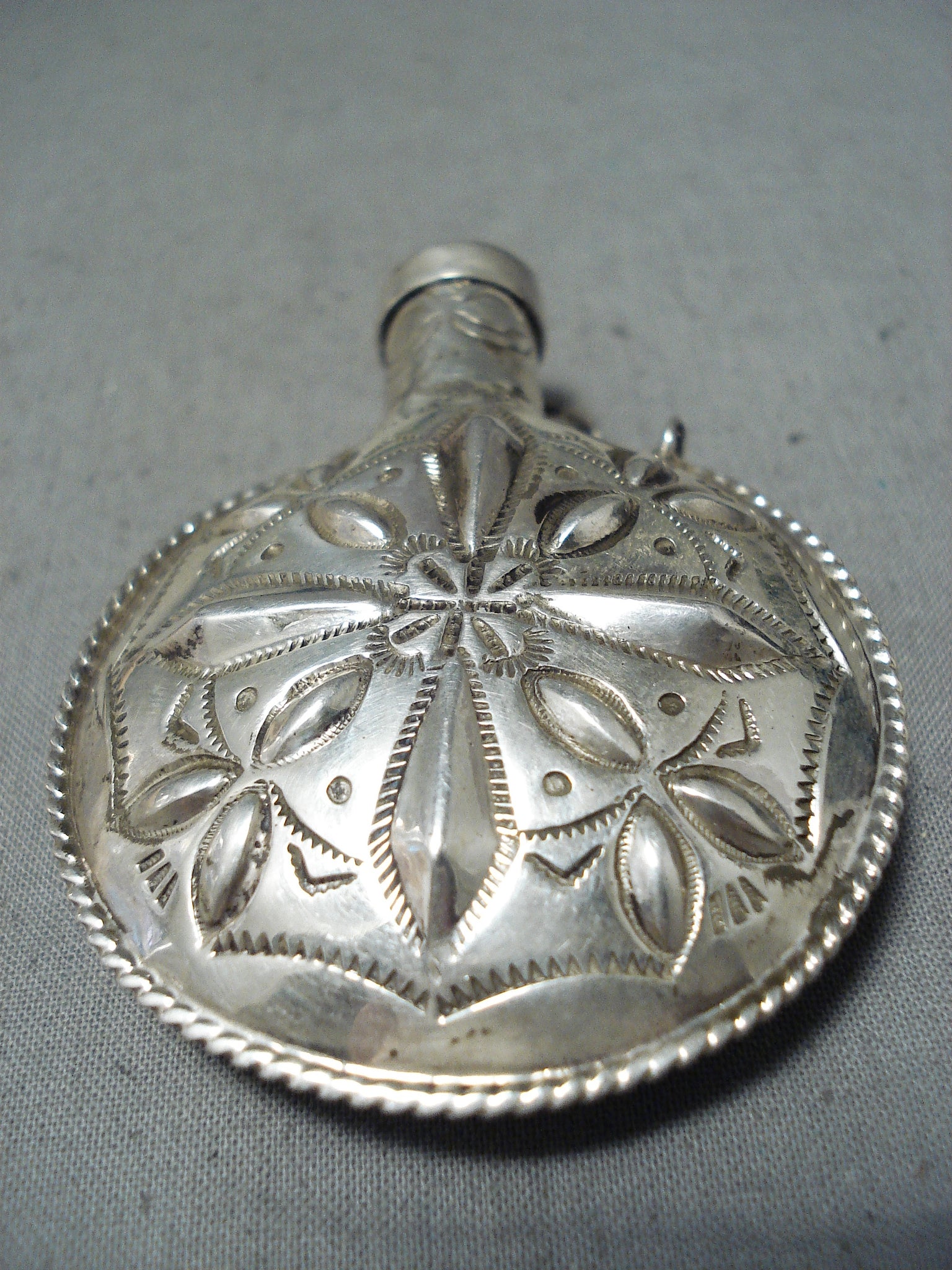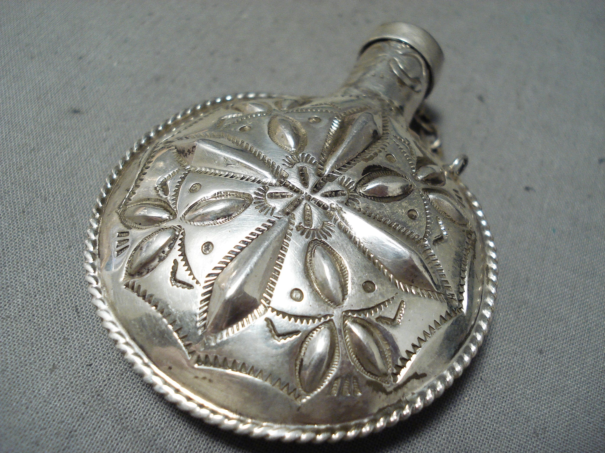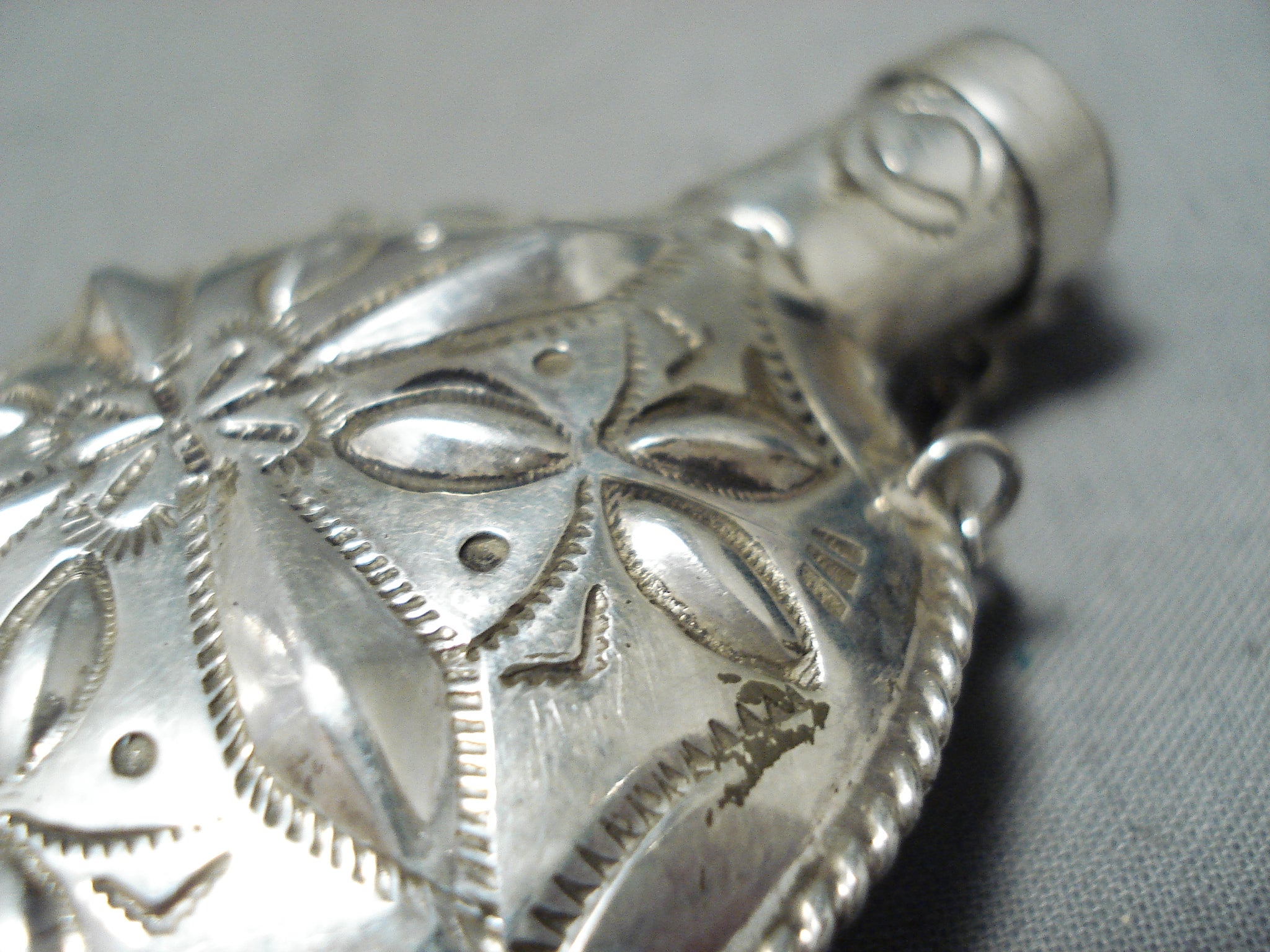 Very Important Vintage Native American Navajo Ray Adakai Sterling Silver Flask Pendant Necklace