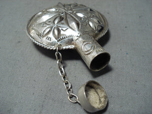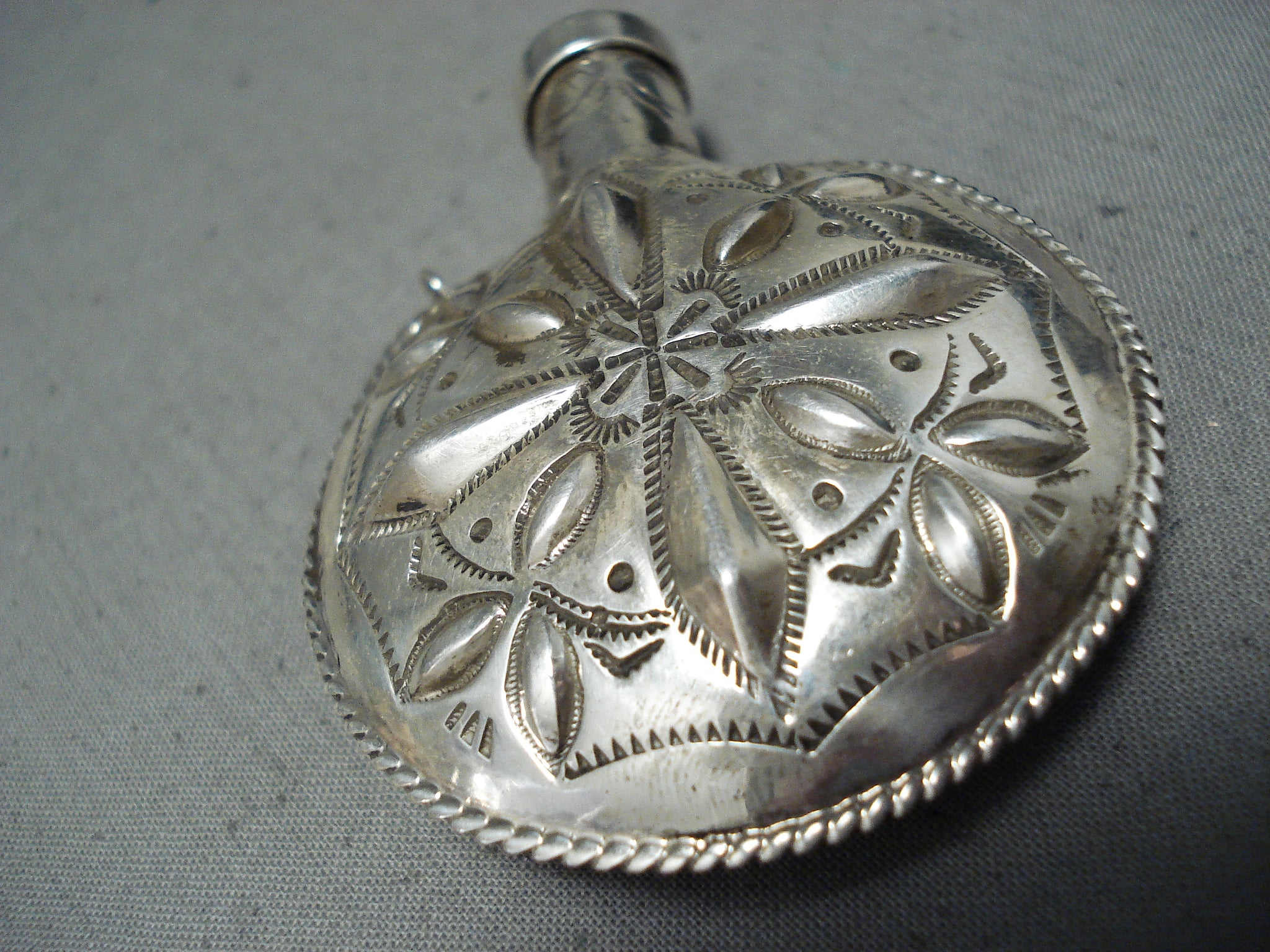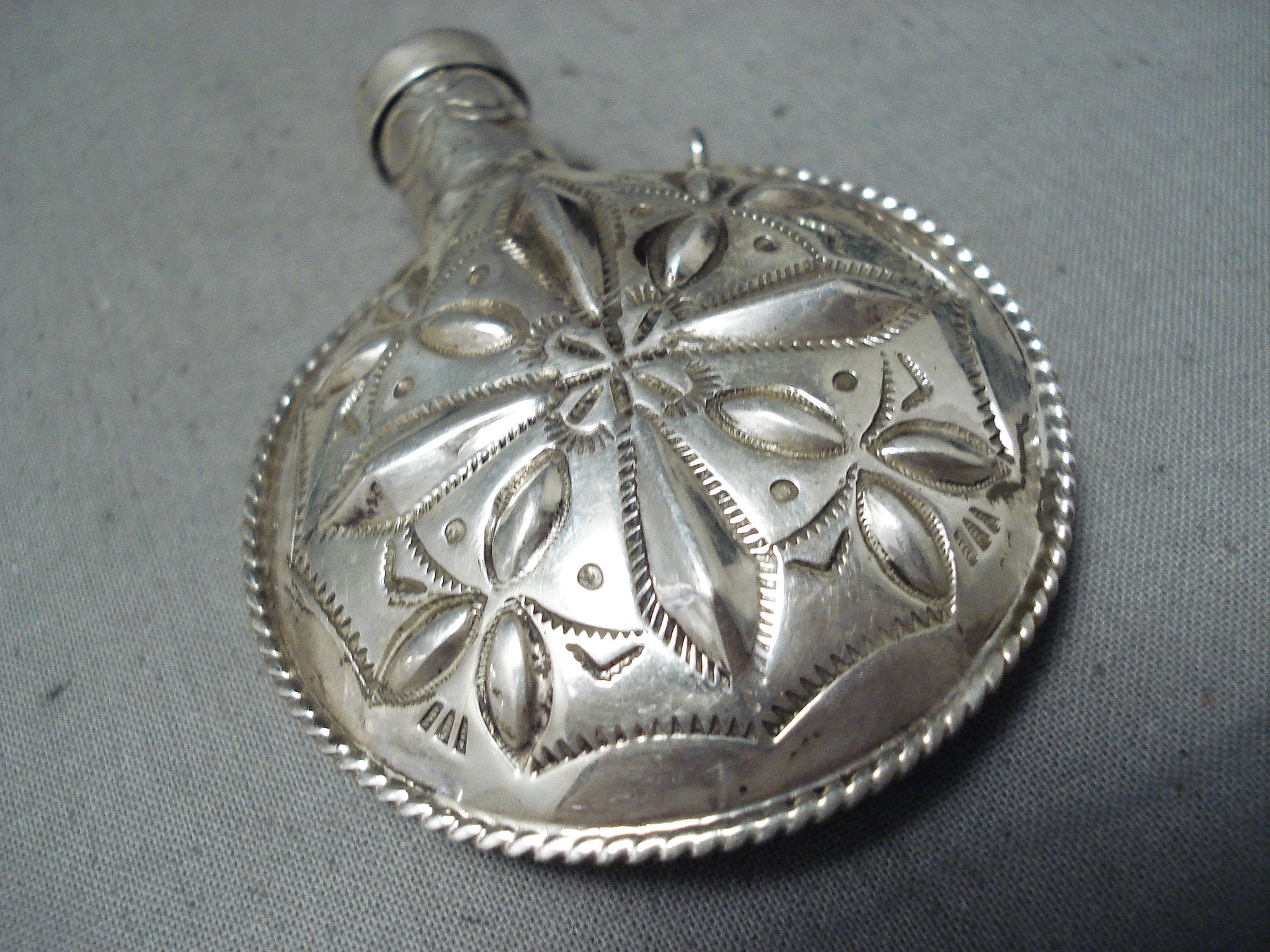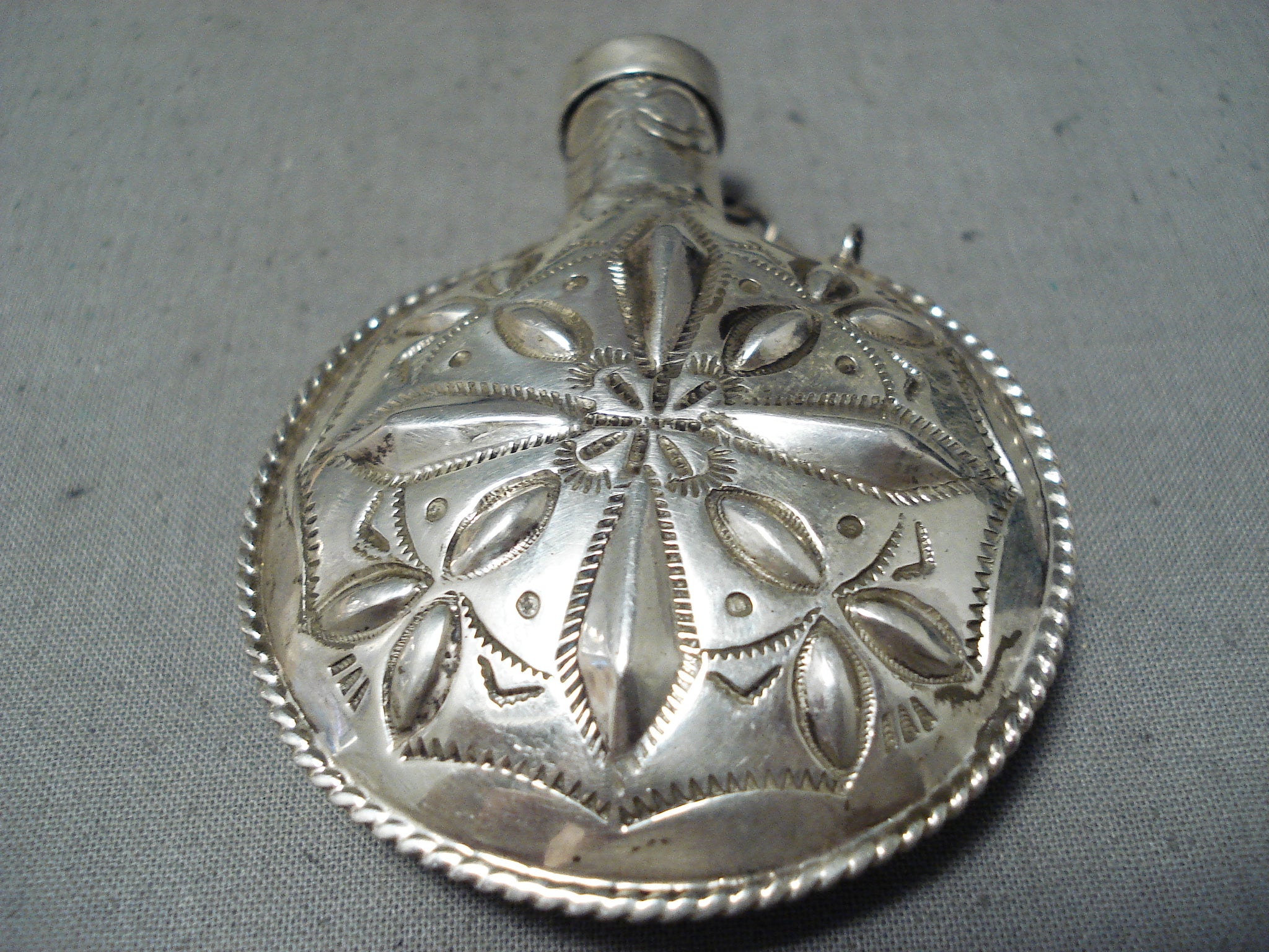 Very Important Vintage Native American Navajo Ray Adakai Sterling Silver Flask Pendant Necklace