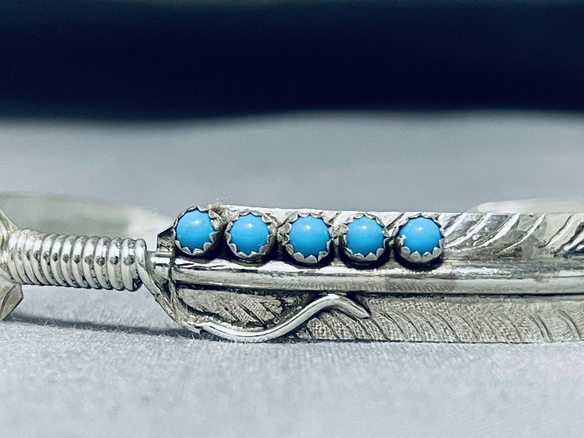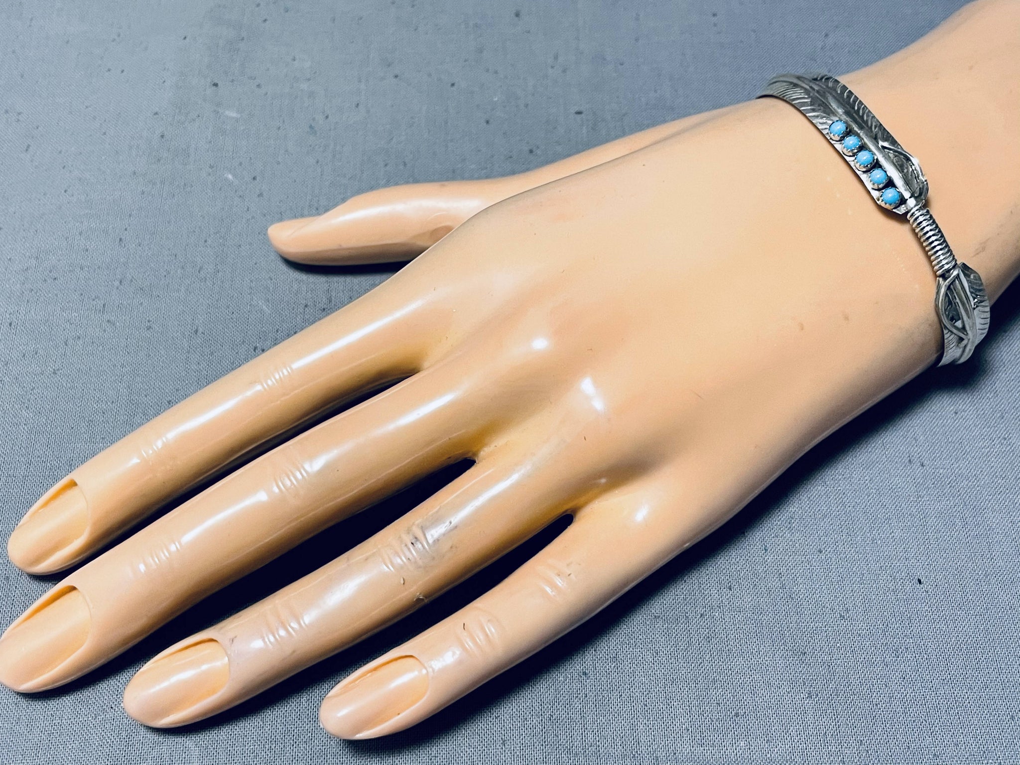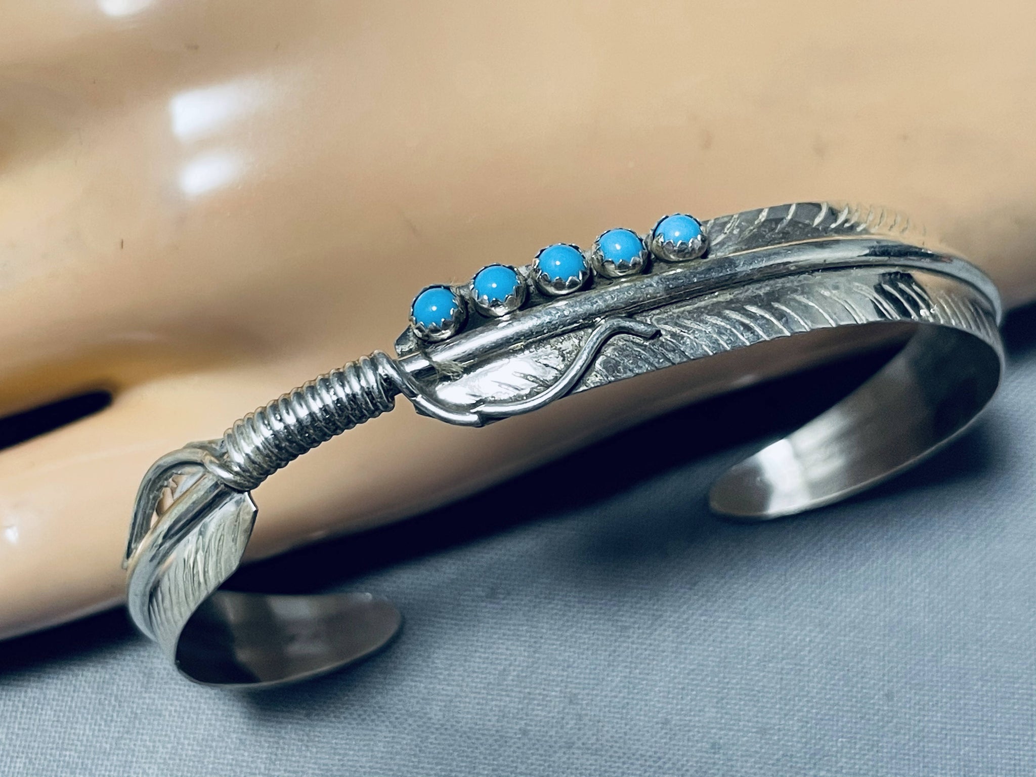 Very Intricate Detailed Native American Navajo Turquoise Feather Sterling Silver Bracelet