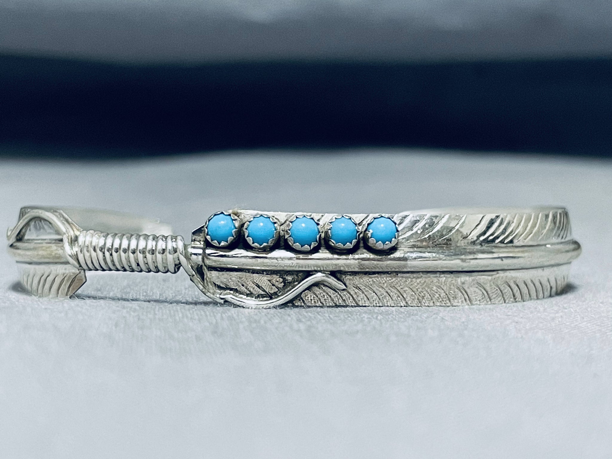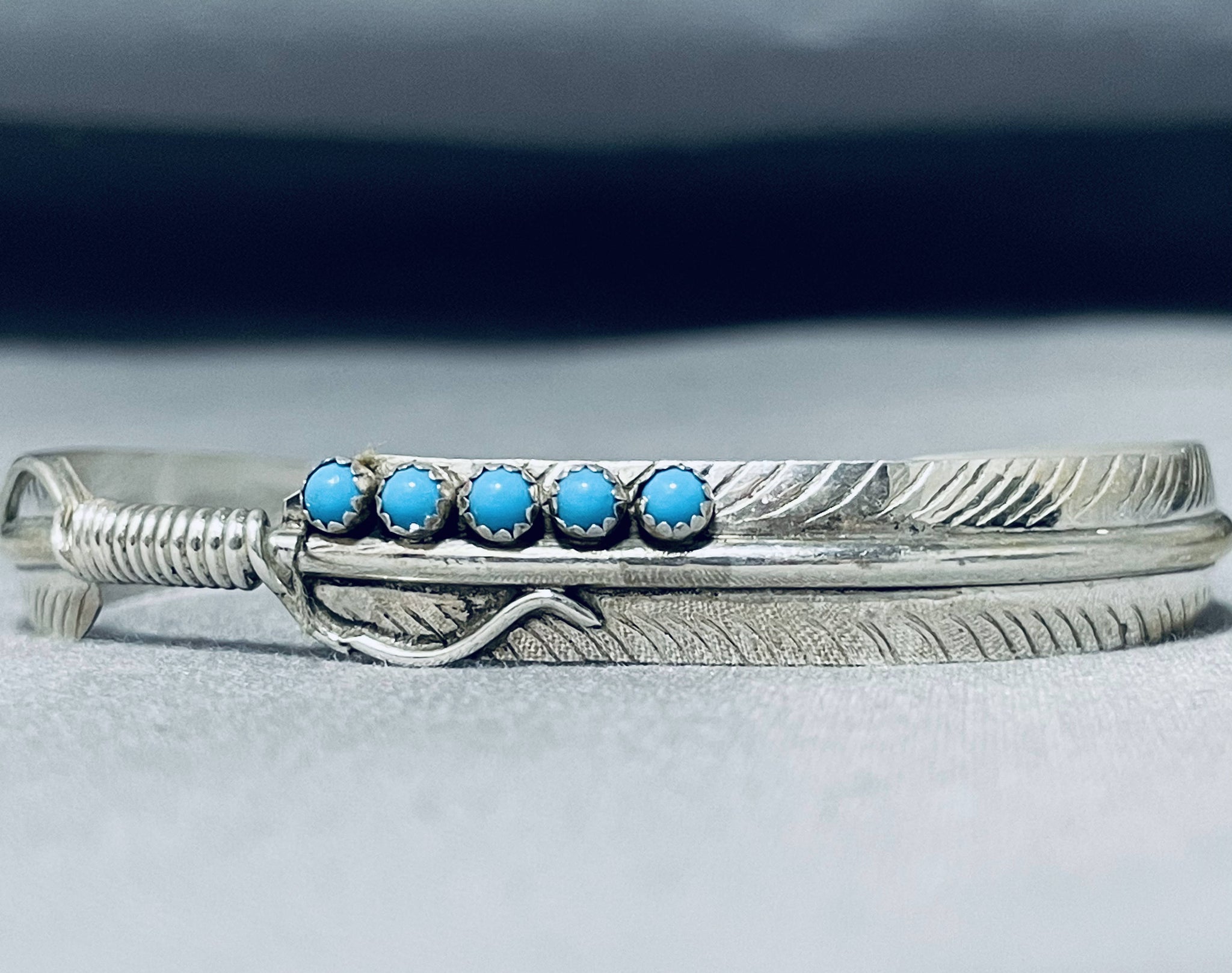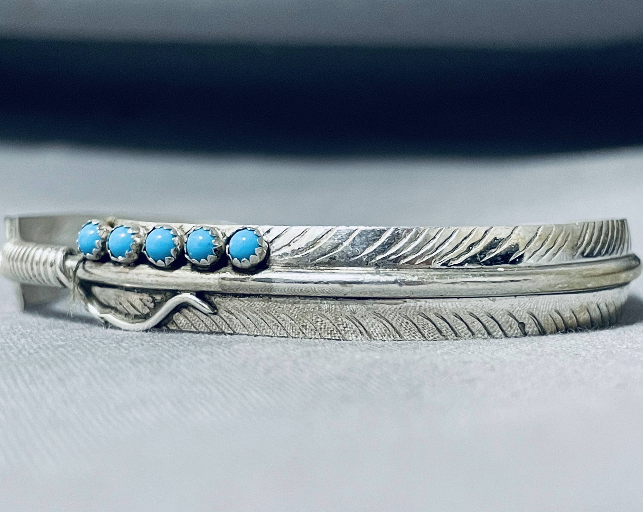 Very Intricate Detailed Native American Navajo Turquoise Feather Sterling Silver Bracelet