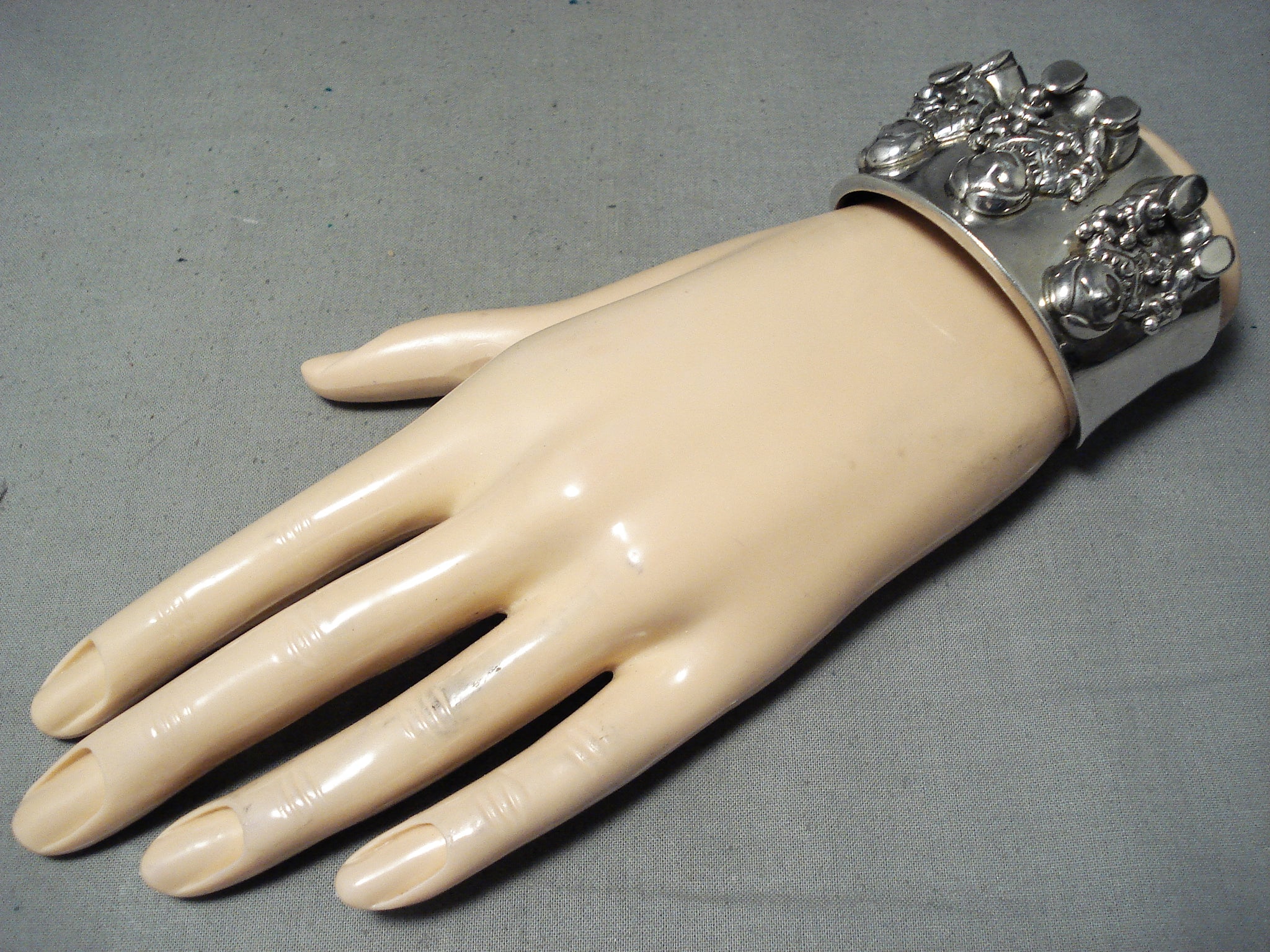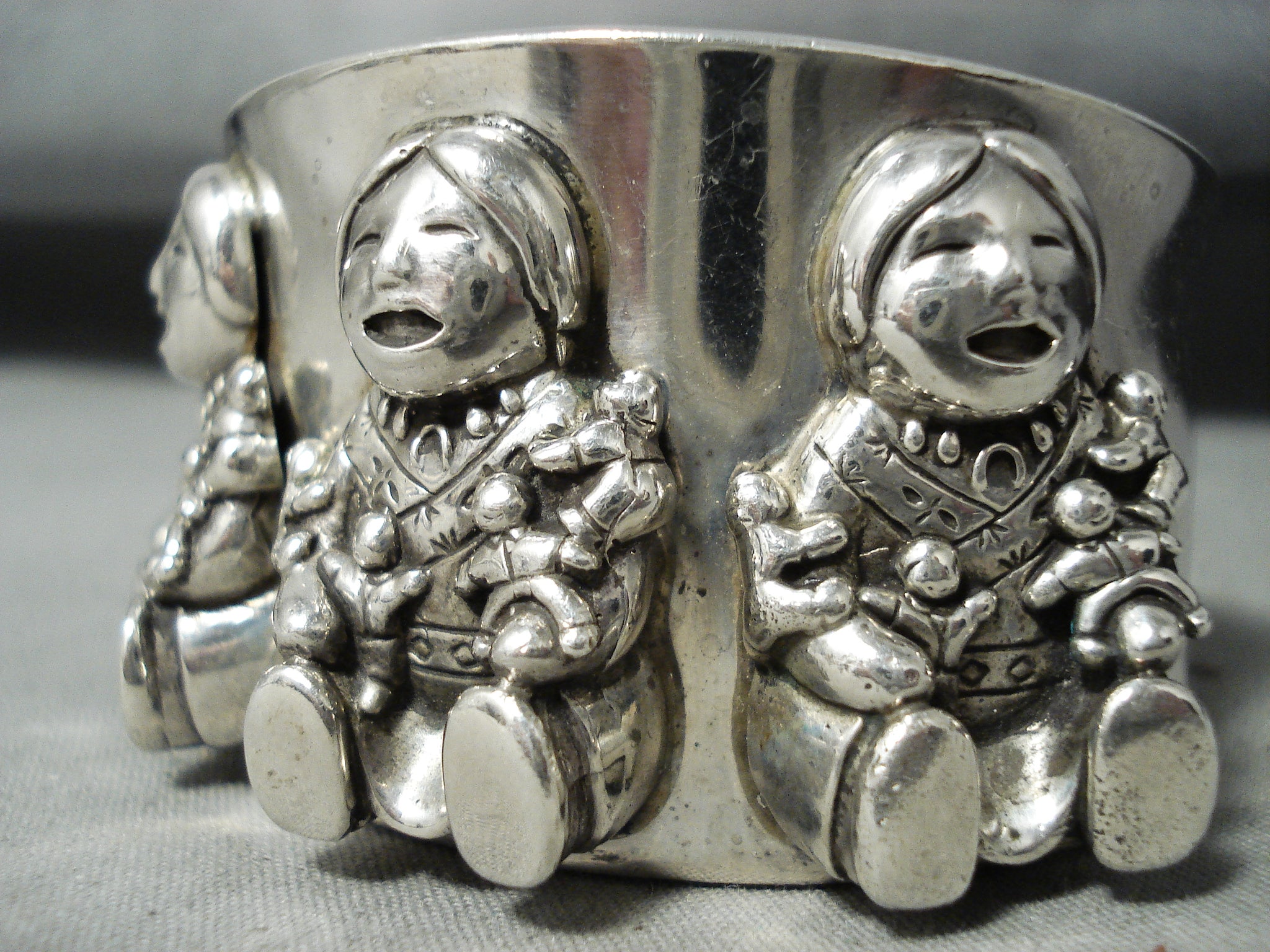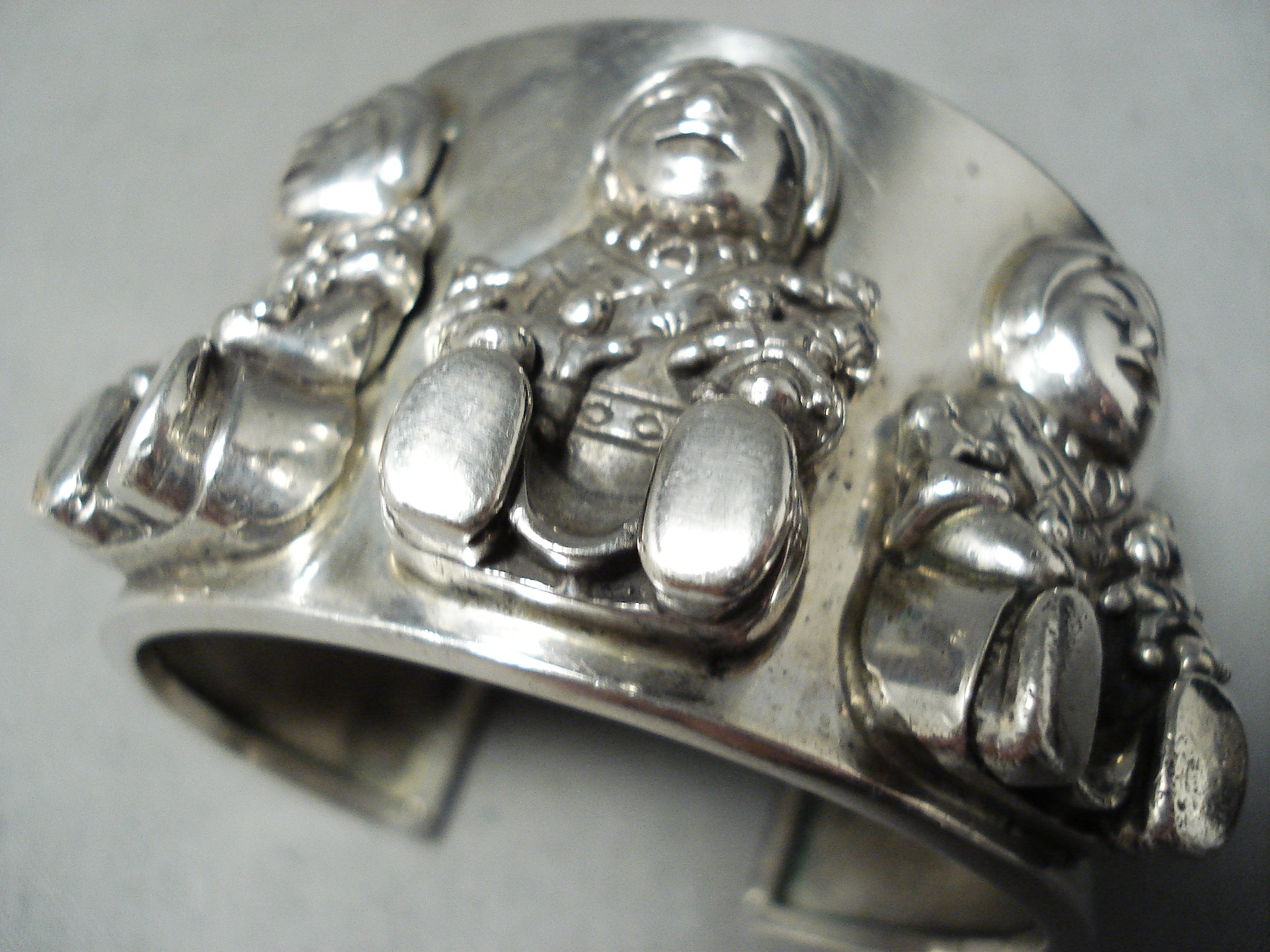 Very Intricate Vintage Native American Navajo Sterling Silver Story Teller Bracelet