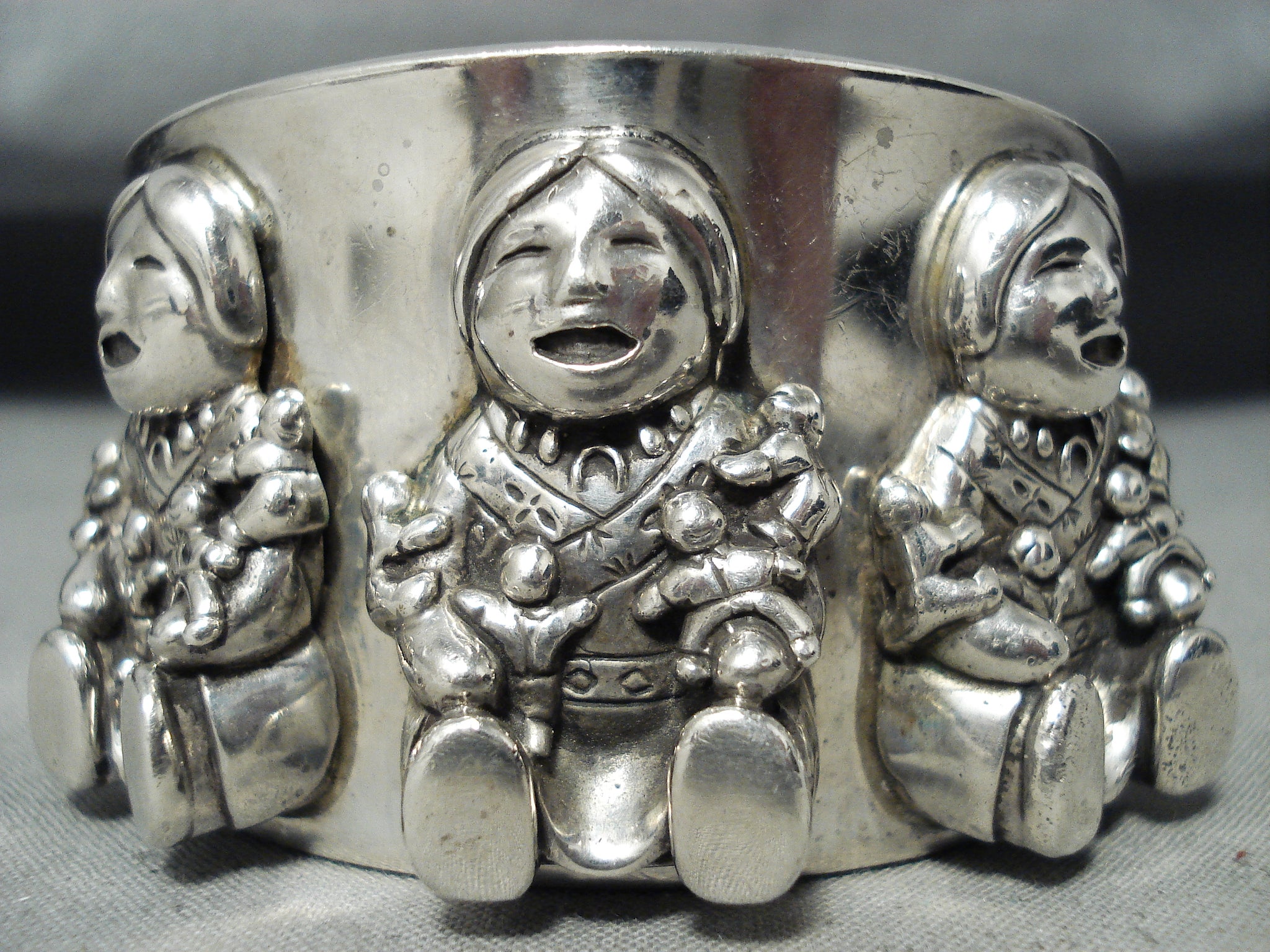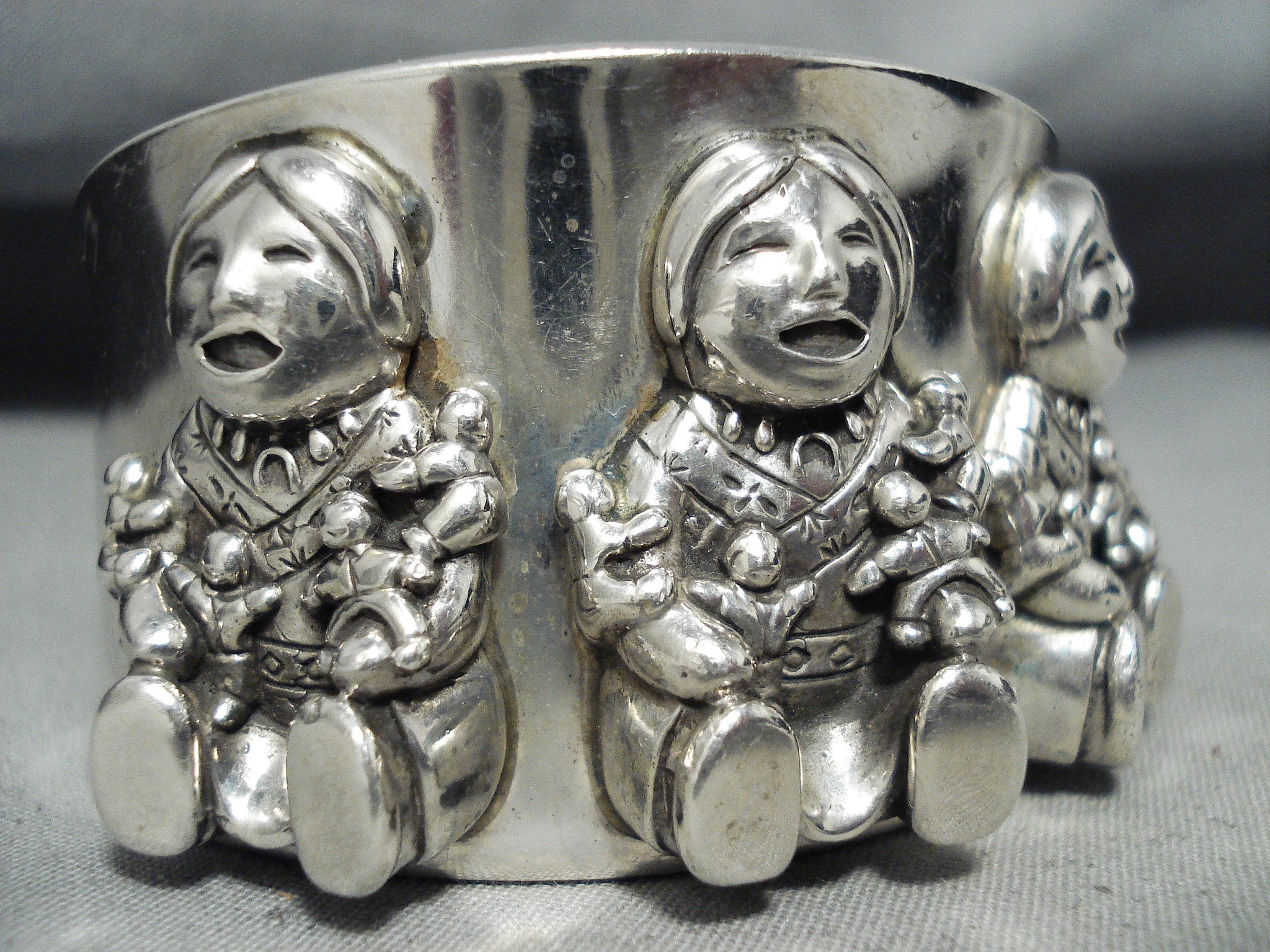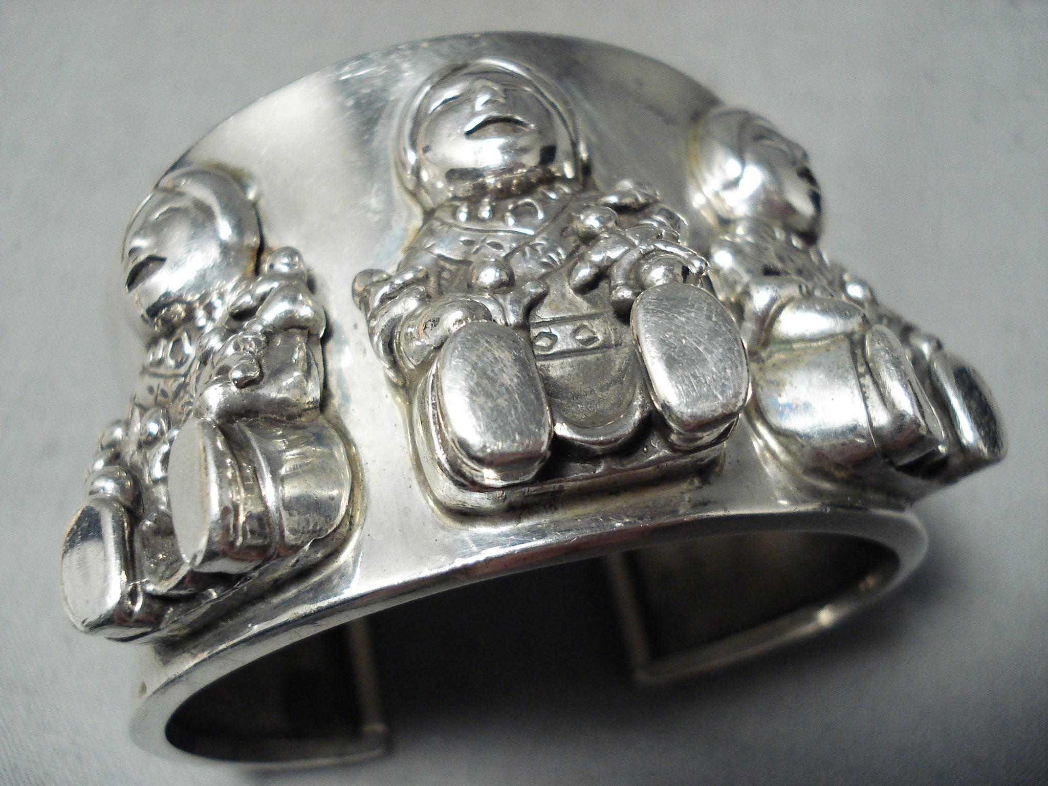 Very Intricate Vintage Native American Navajo Sterling Silver Story Teller Bracelet