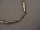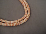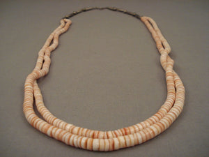 Up for sale is this wonderful vintage Santo Domingo necklace having a double strand of handcut orange shell heishi and a single strand of handcarved silver spindles and silver beads with a handmade silver hook and eye clasp! Silver spindles each measure about 3/4" x 1/8" and silver beads each measure around 1/4" x 1/4". Sterling silver. The length of the necklace measures around 32". Sturdy 83 grams. LAYAWAYS- We are happy to work with you and are more flexible than anyone on the net. Simply send us an email for more information.