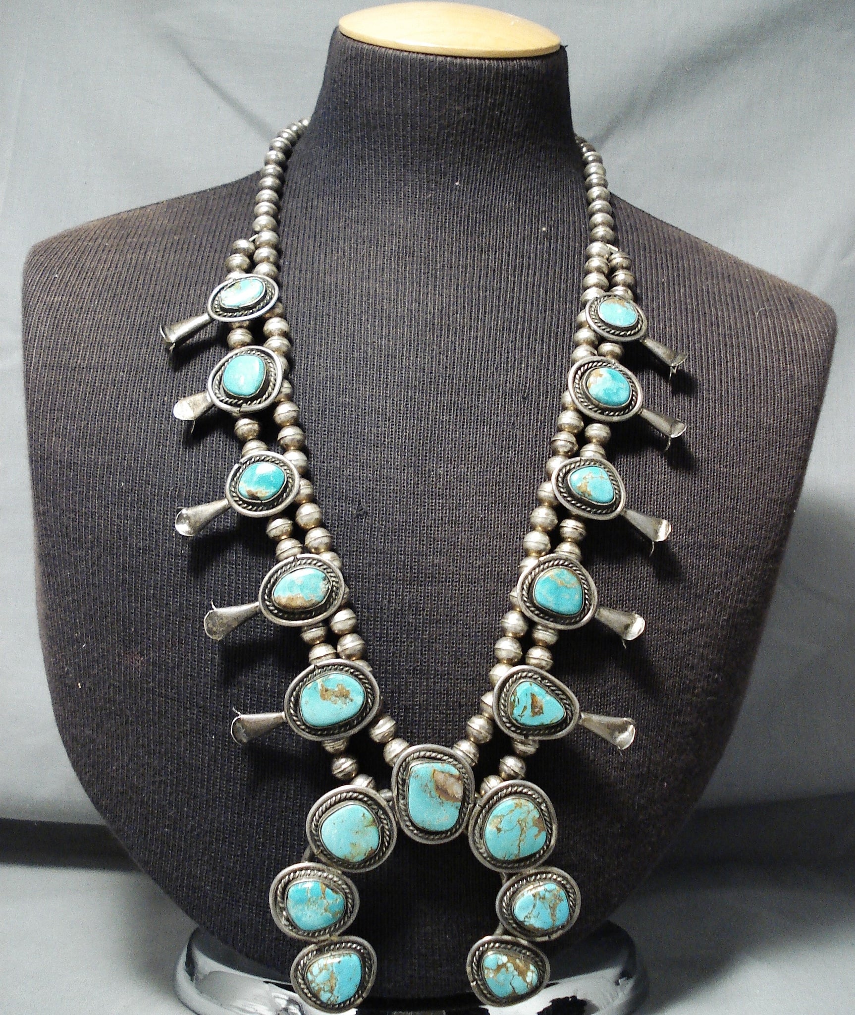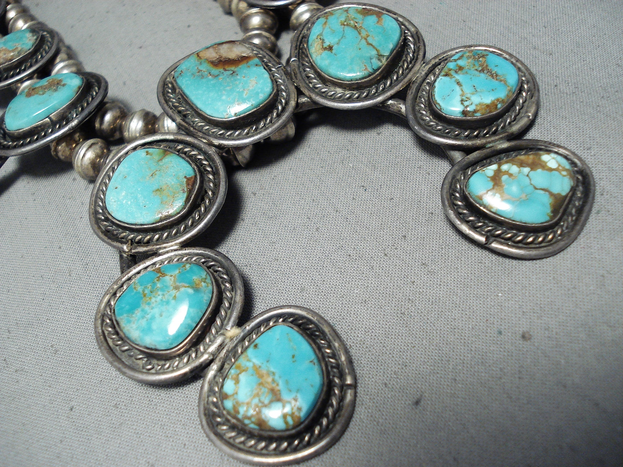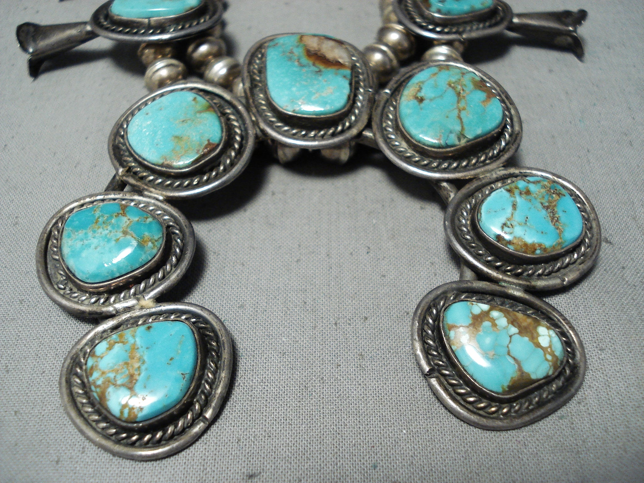 Very Rare #8 Turquoise Vintage Native American Navajo Sterling Silver Squash Blossom Necklace