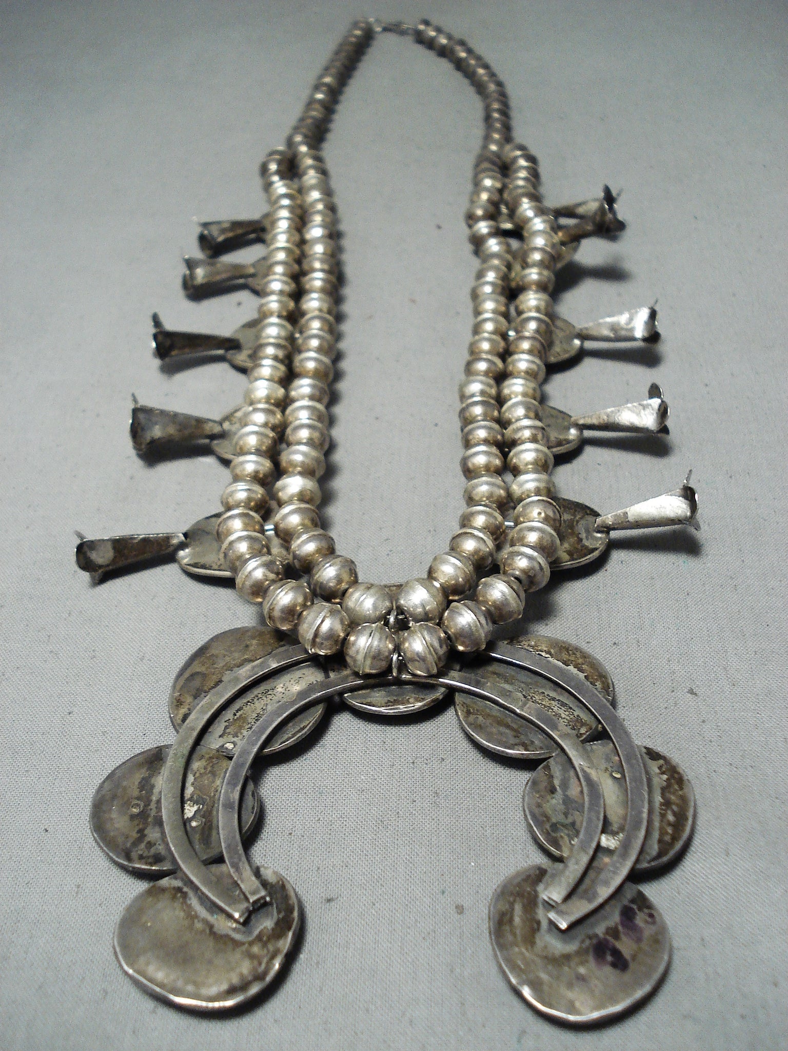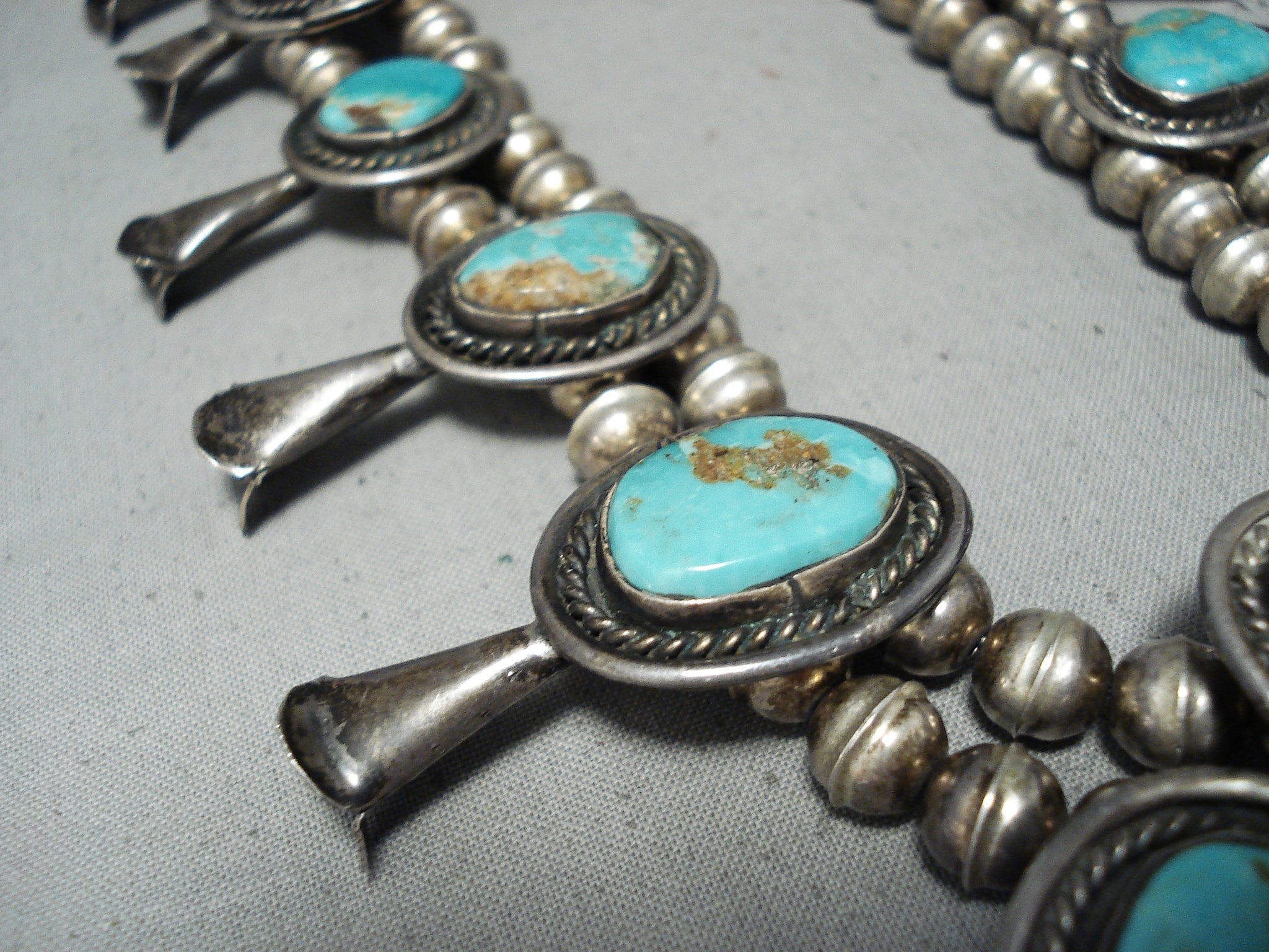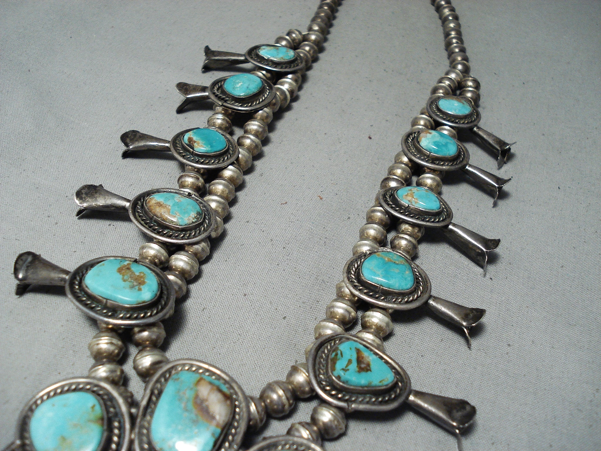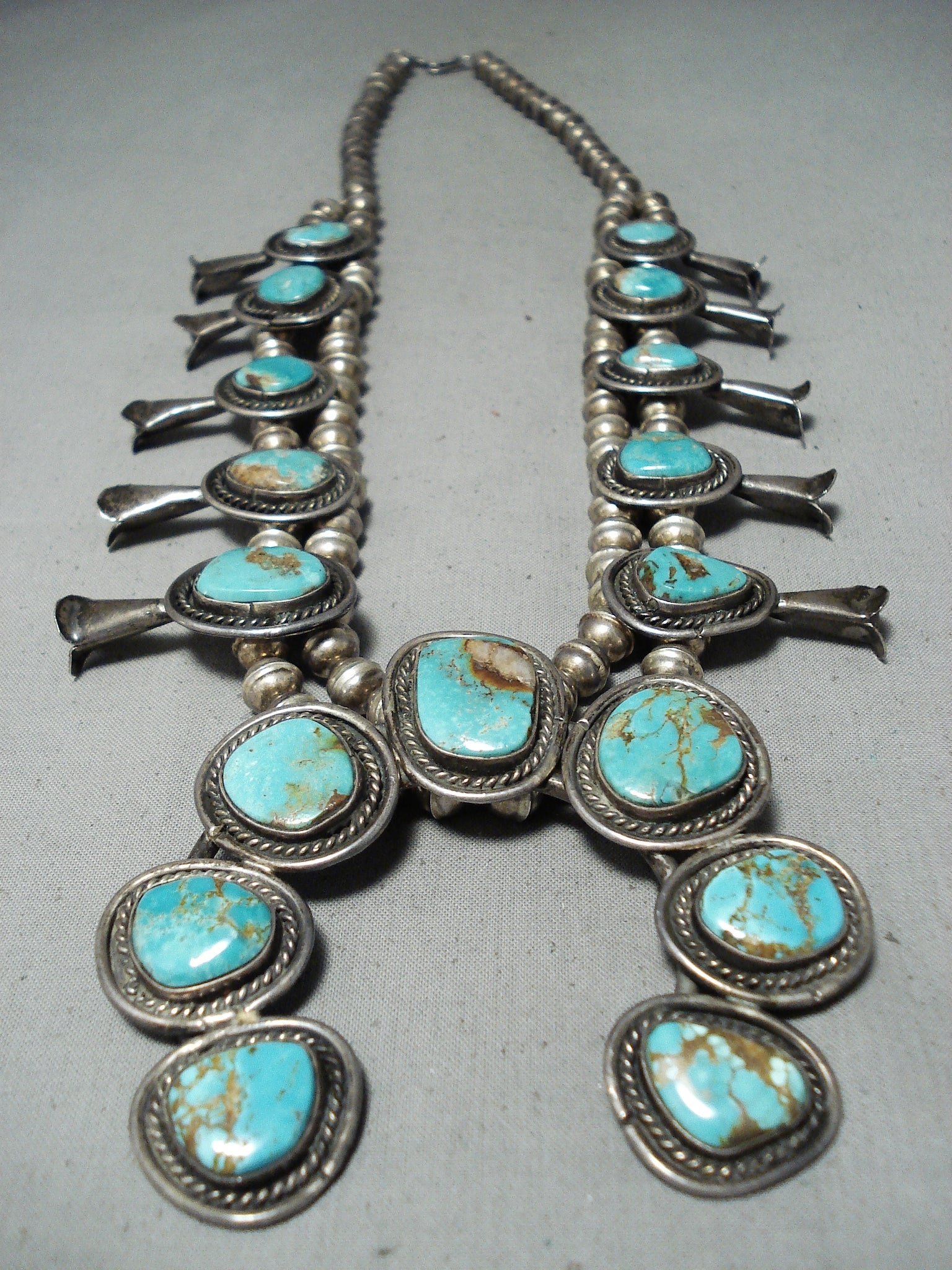 Very Rare #8 Turquoise Vintage Native American Navajo Sterling Silver Squash Blossom Necklace
