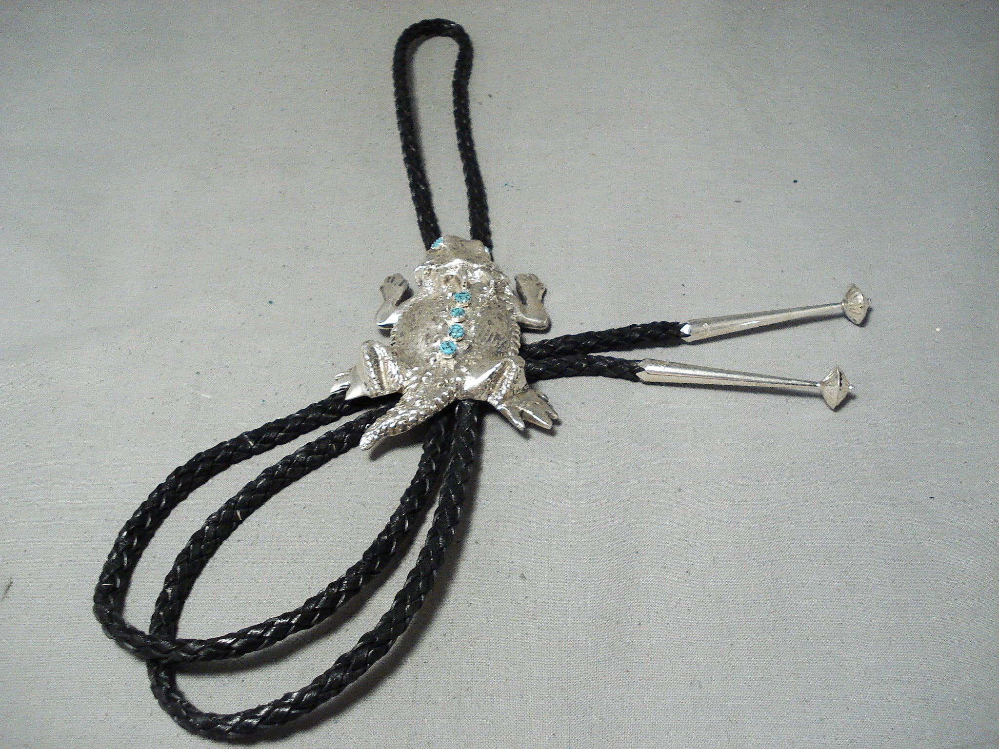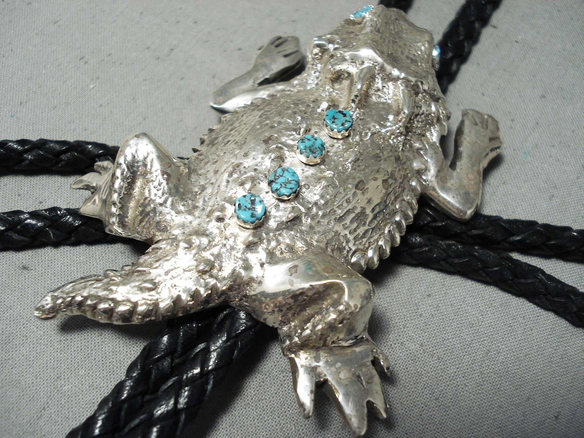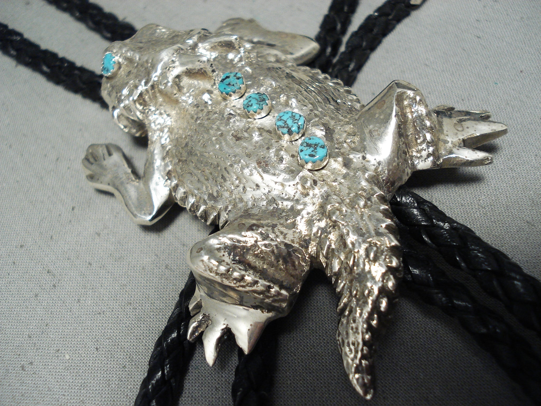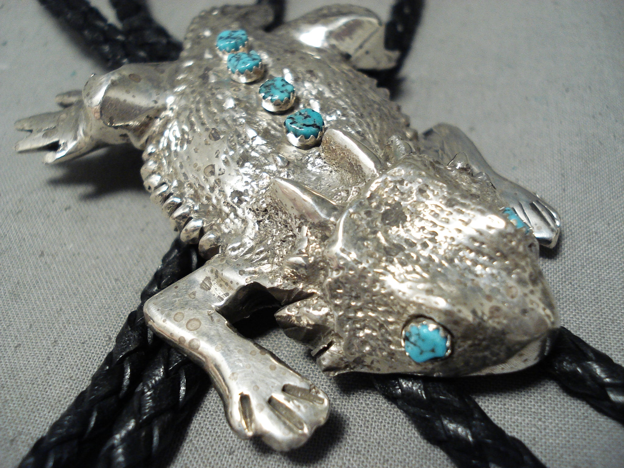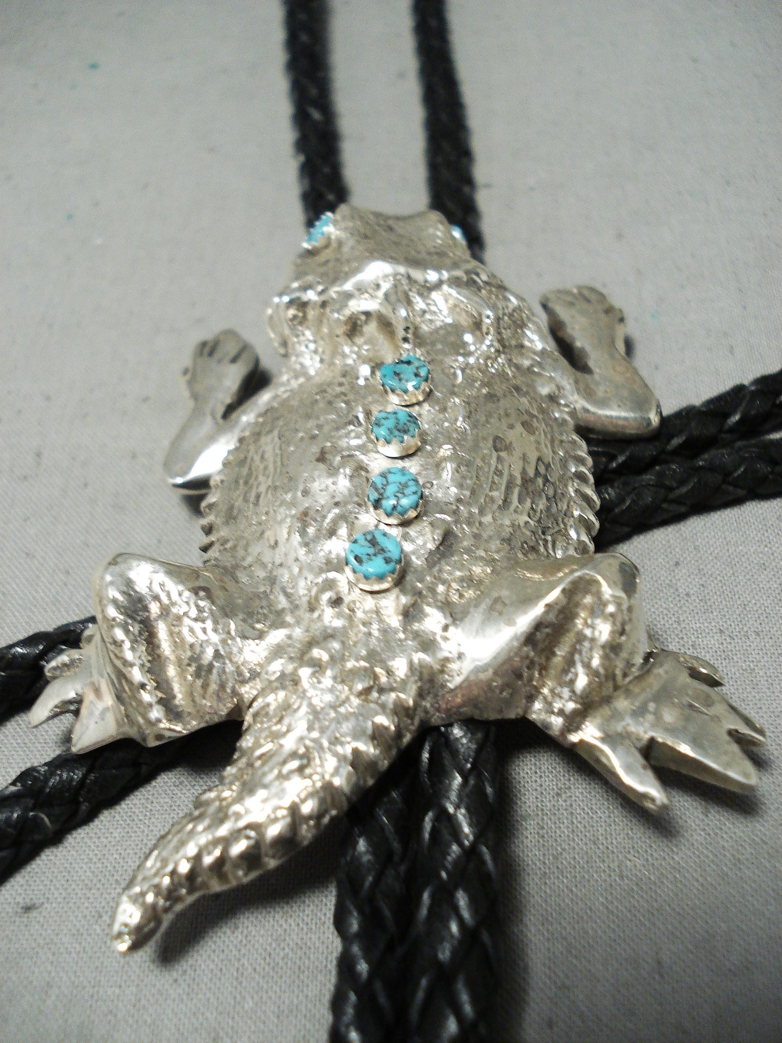 Very Rare Colossal Toad Native American Navajo Turquoise Sterling Silver Bolo Tie