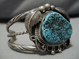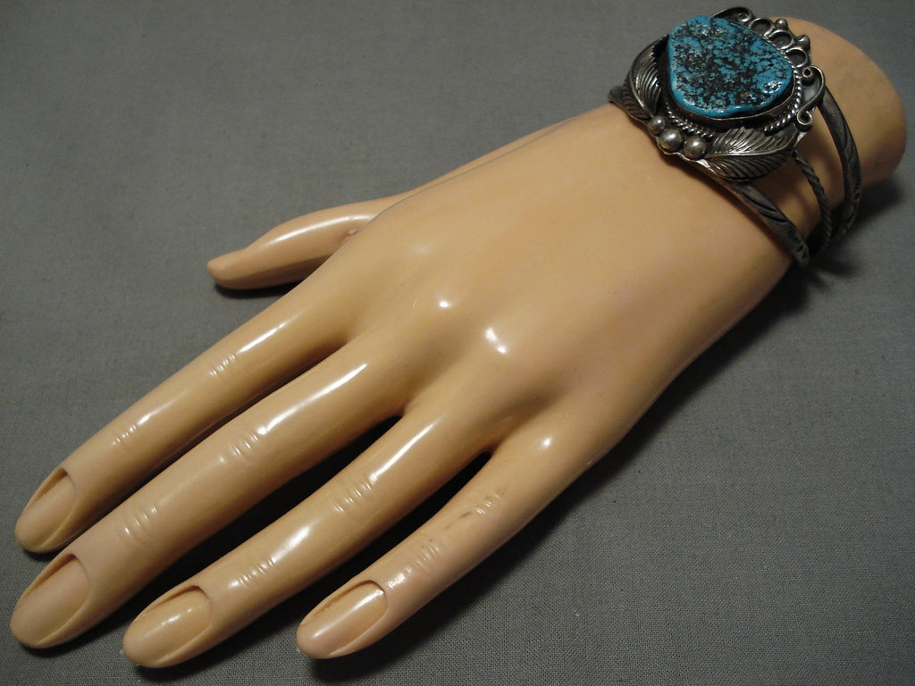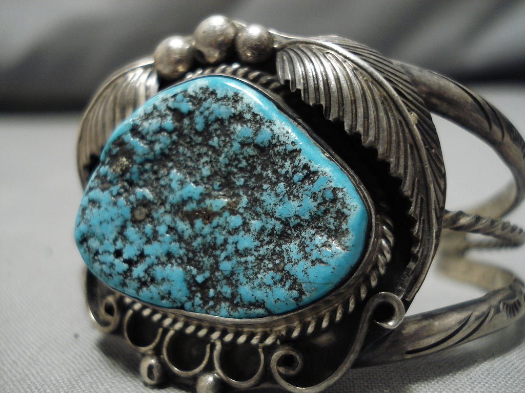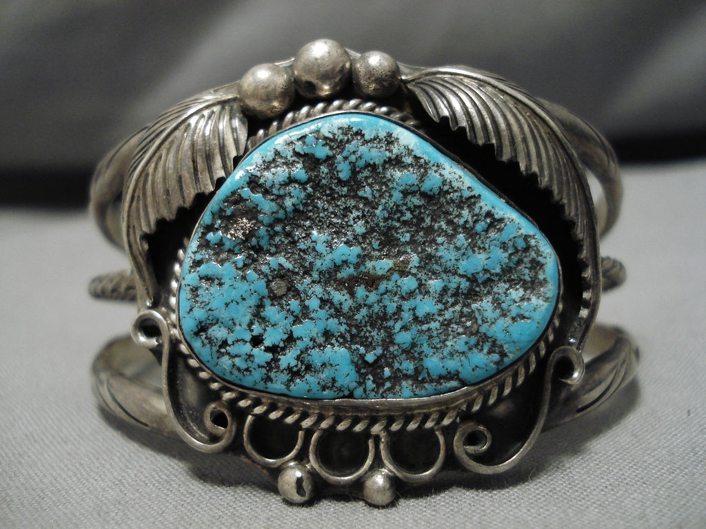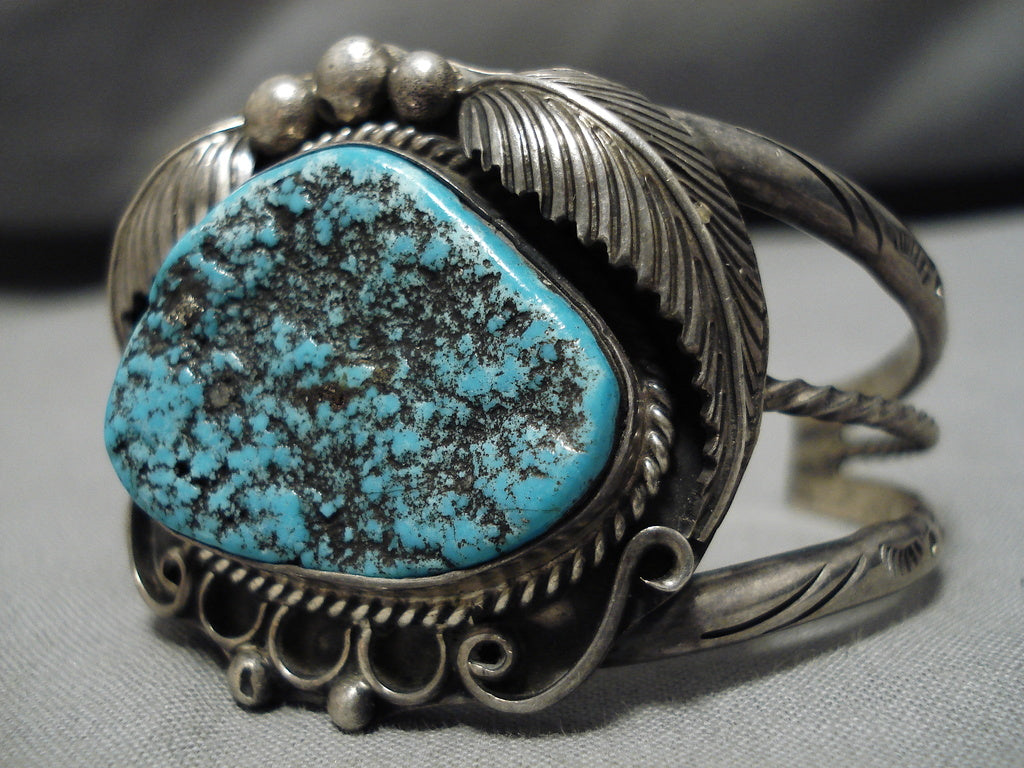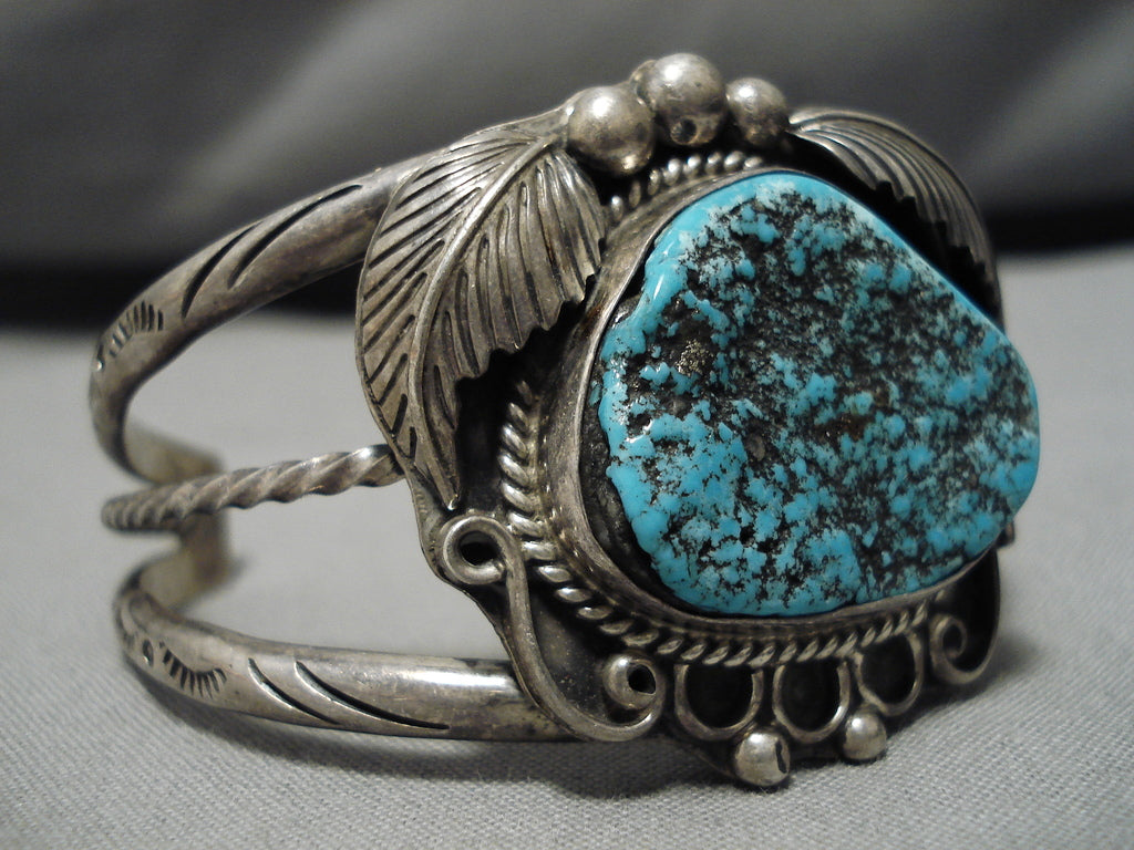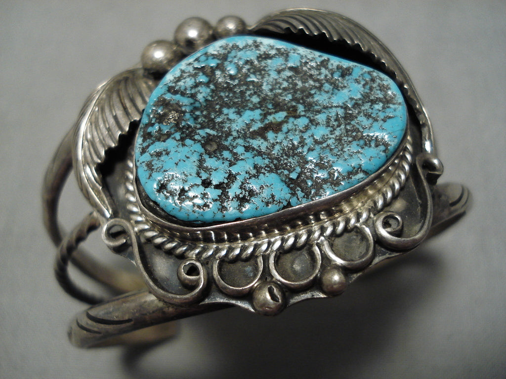 Very Rare Old Persin Turquoise Vintage Native American Navajo Sterling Silver Bracelet Old Cuff