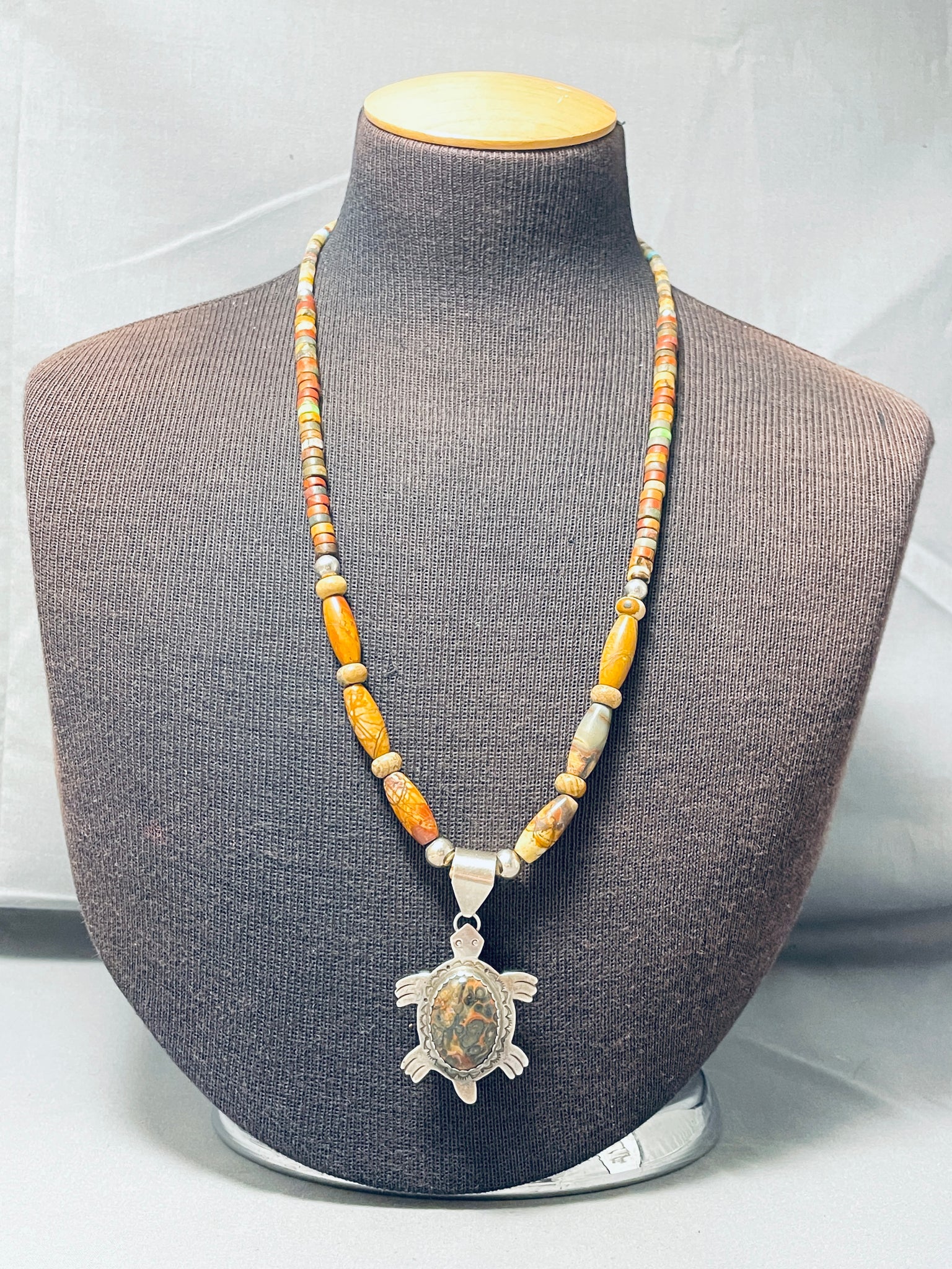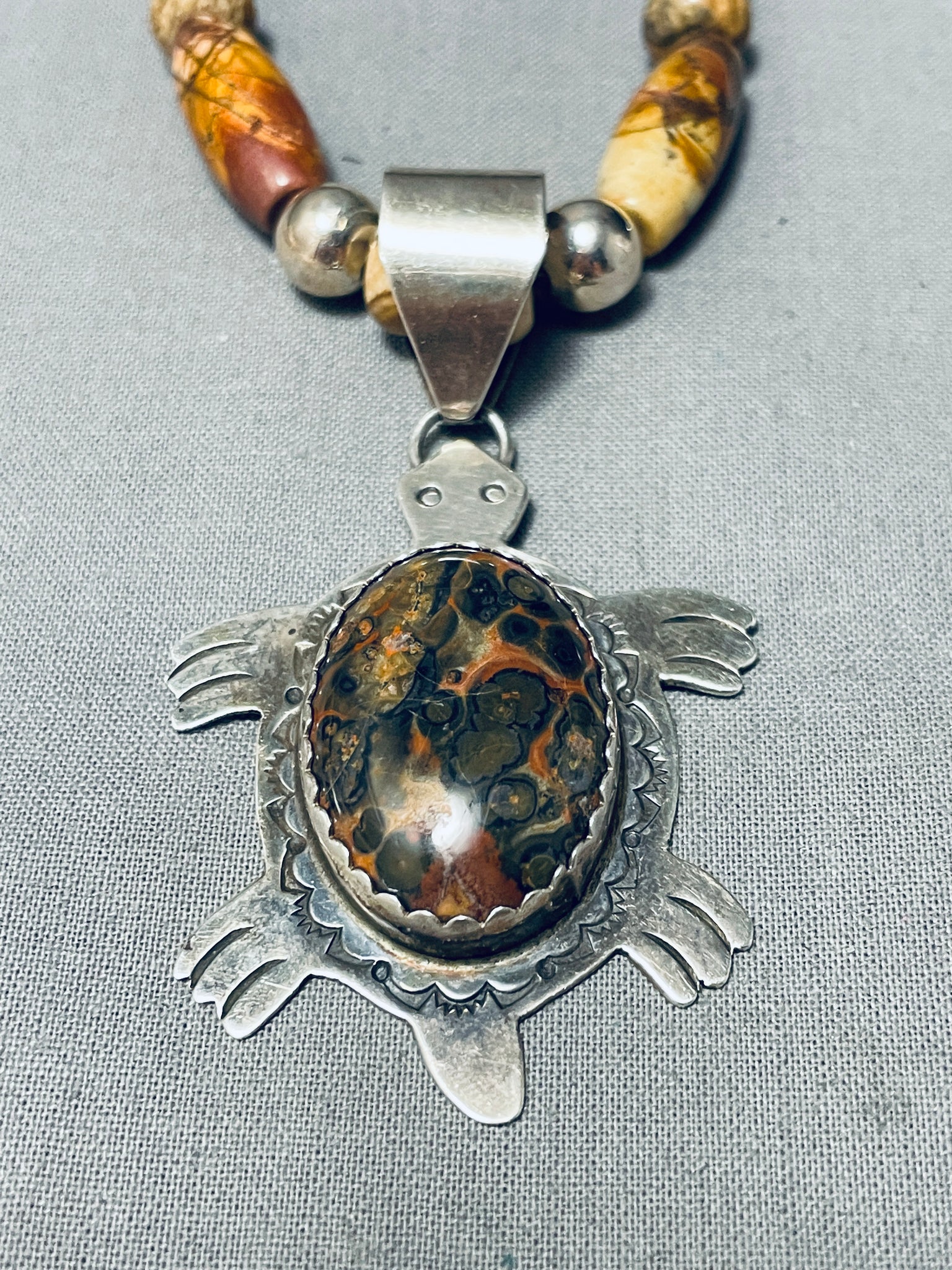 Very Rare Turtle Vintage Native American Navajo Sterling Silver Necklace