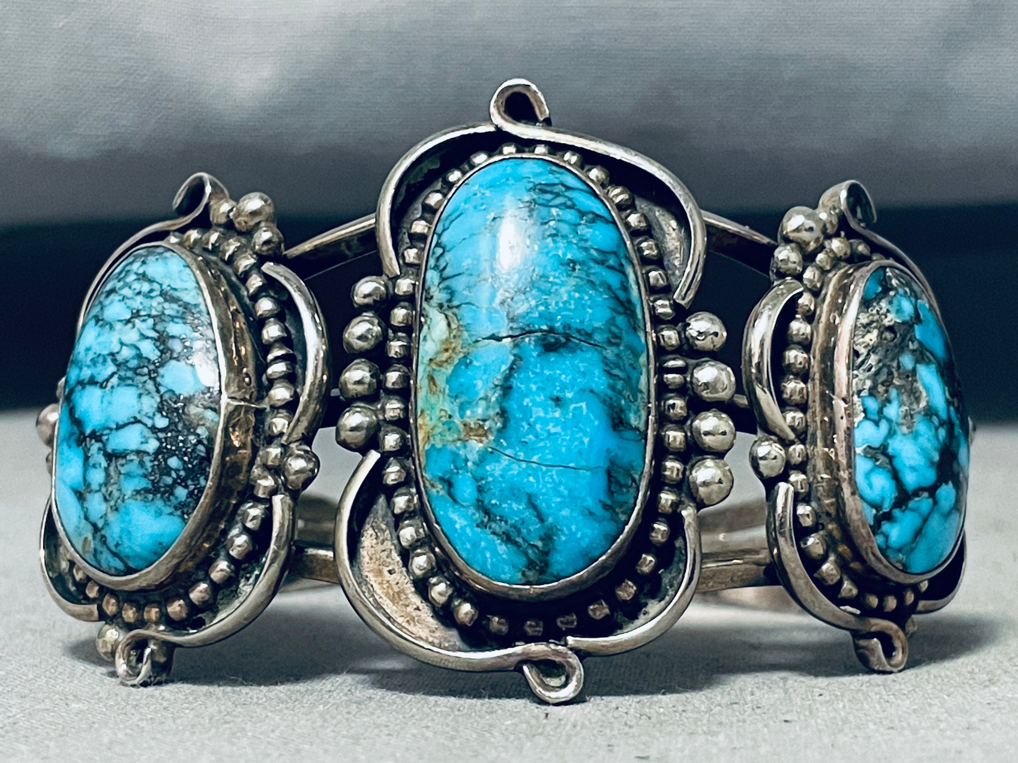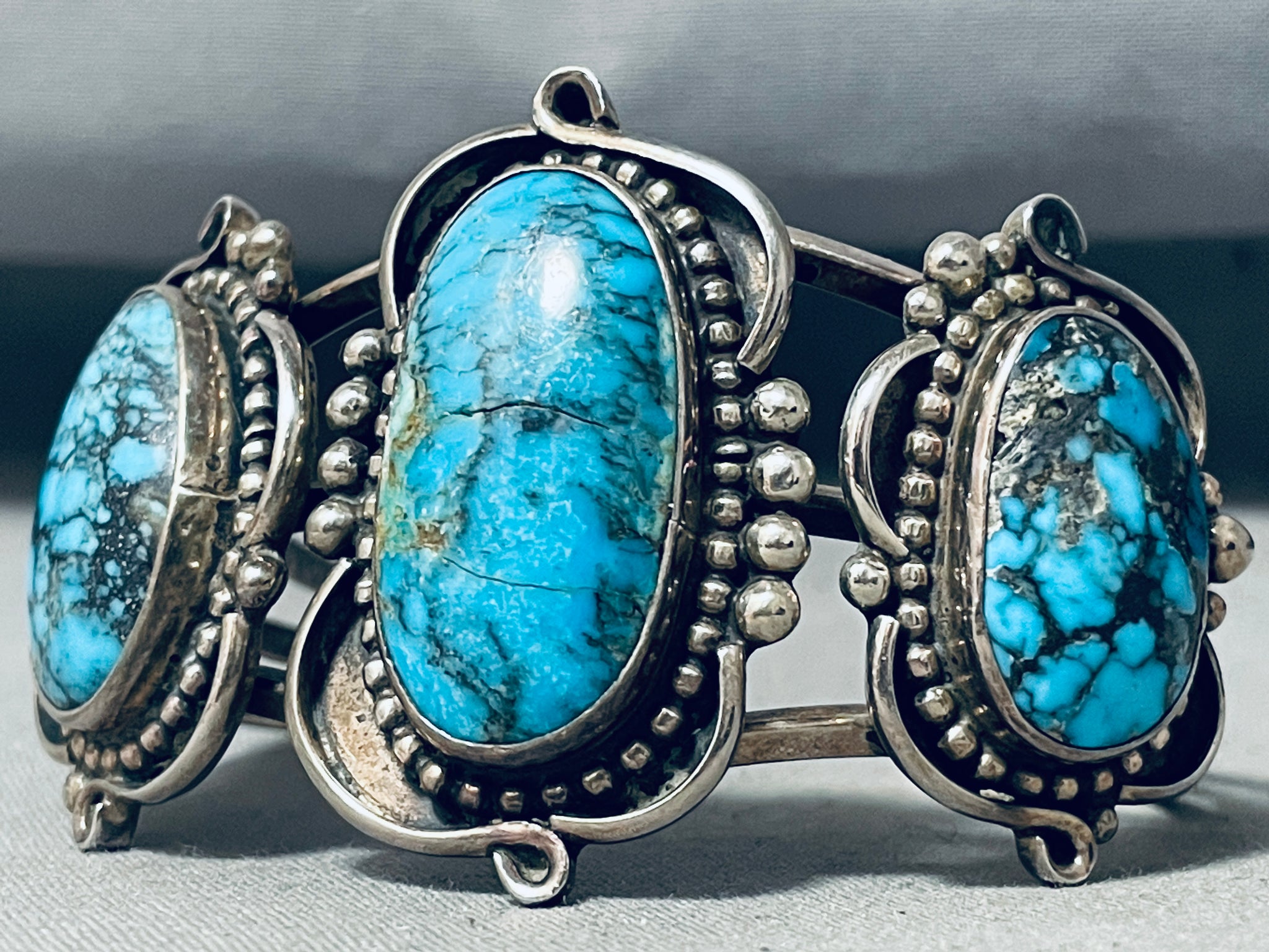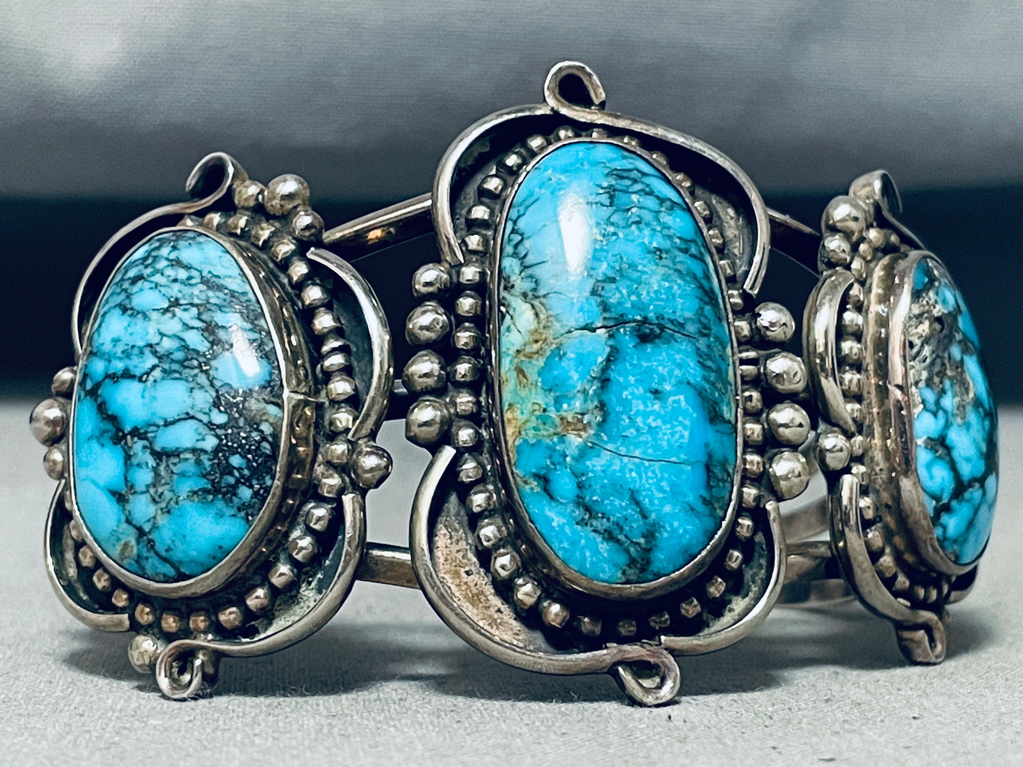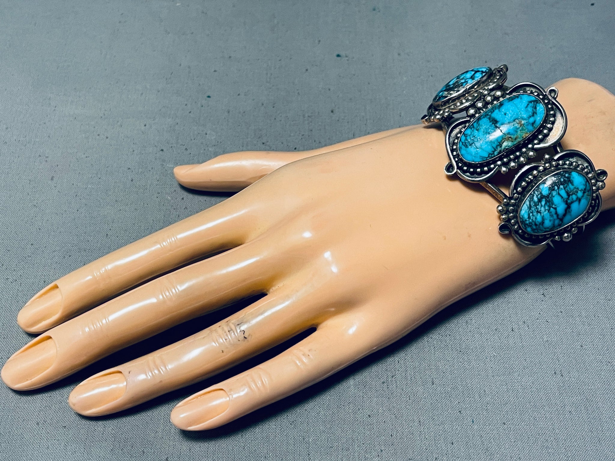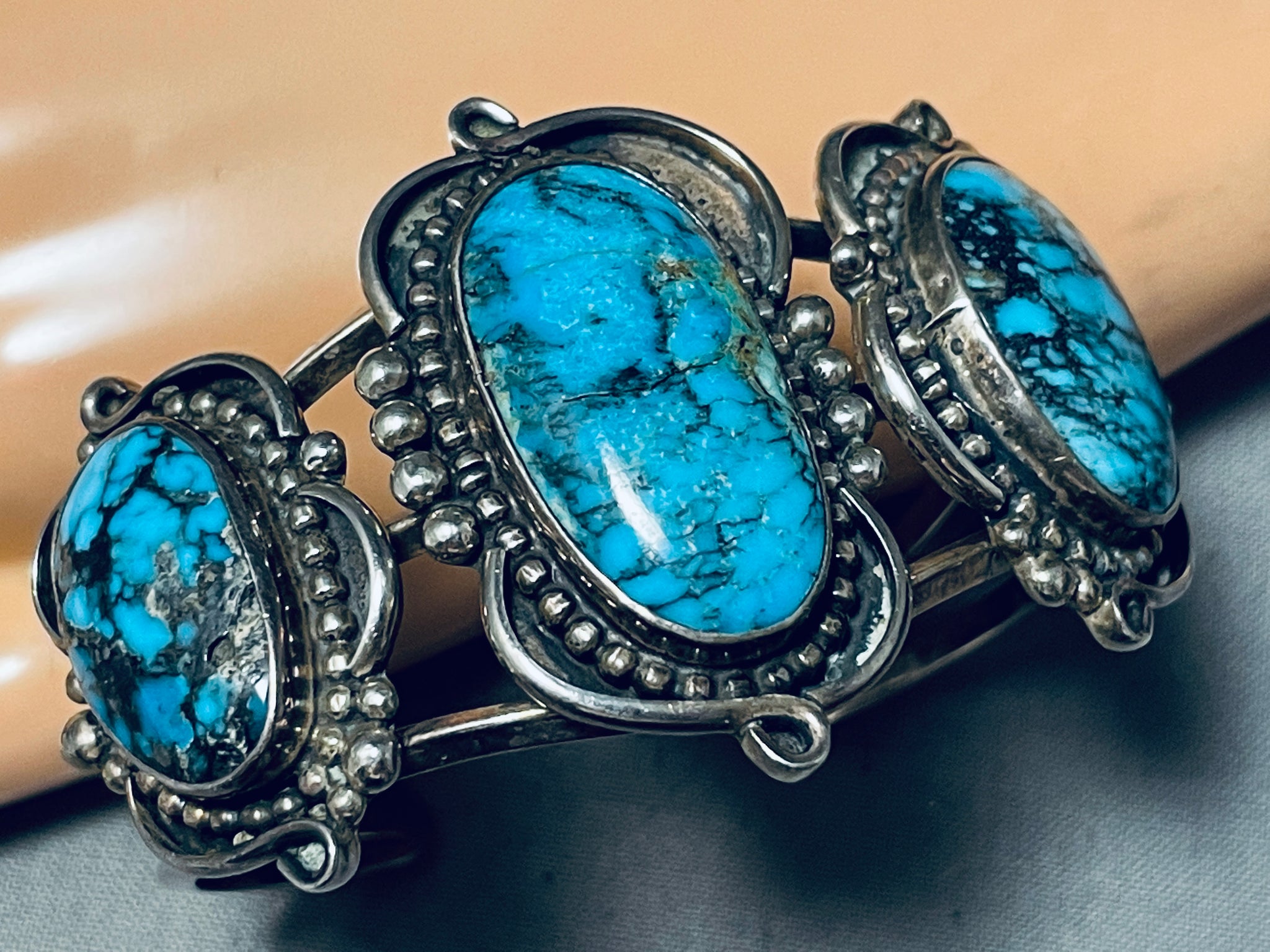 Very Rare Vintage Native American Navajo Blue Diamond Turquoise Sterling Silver Bracelet