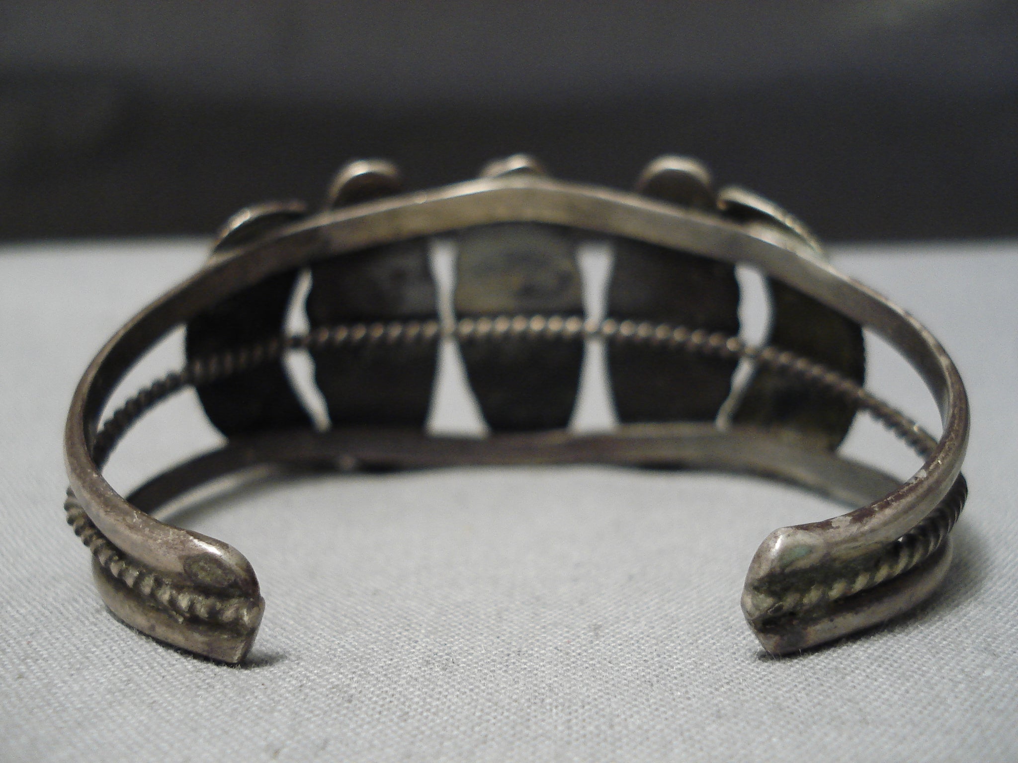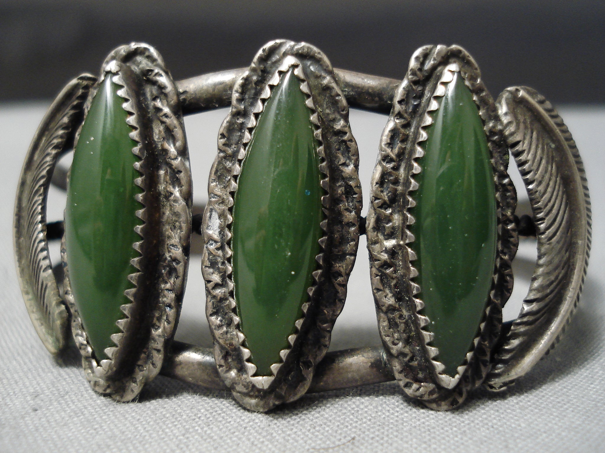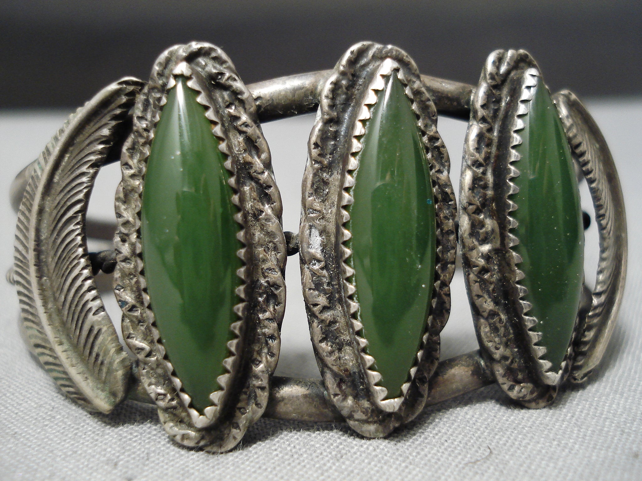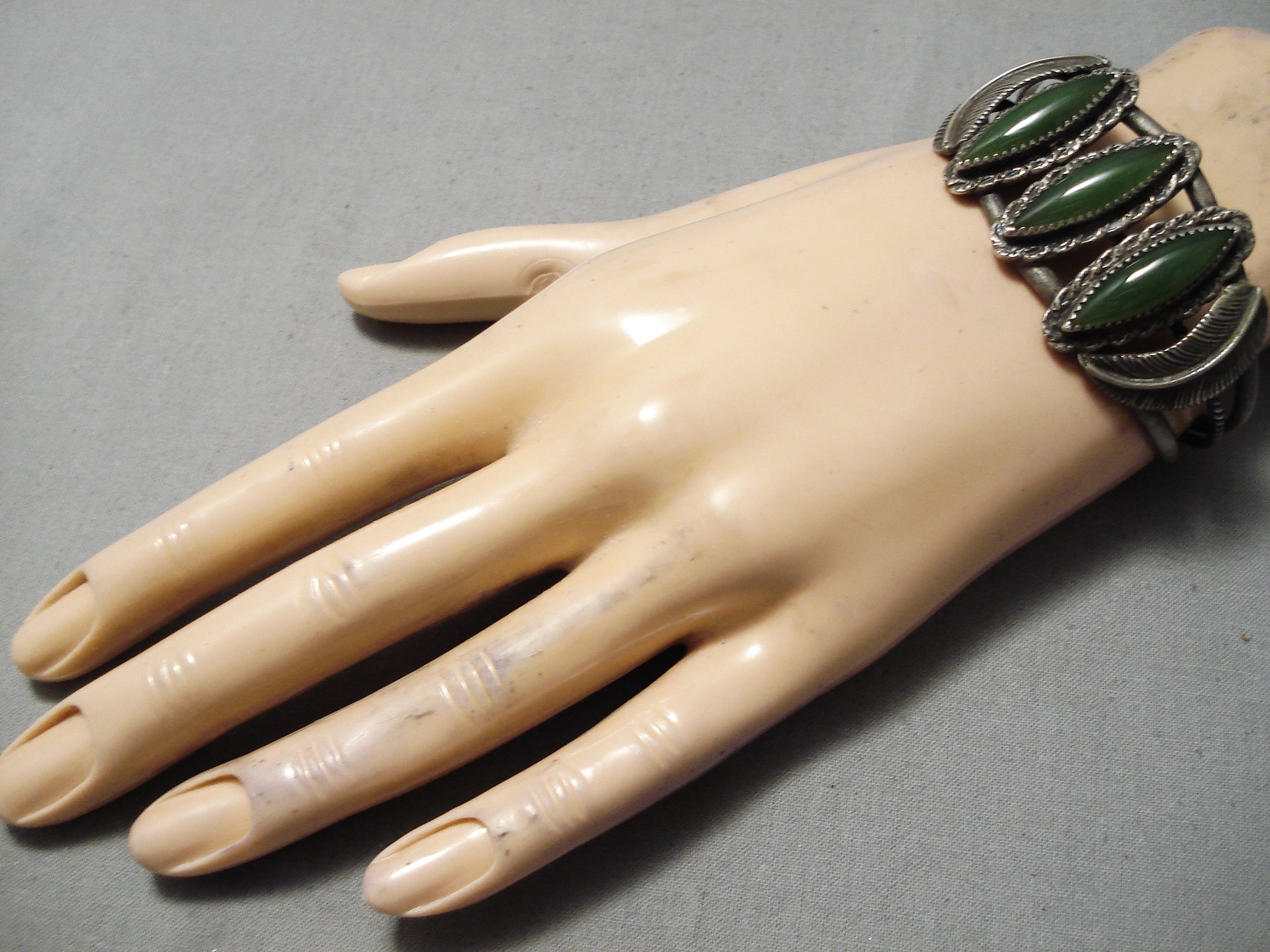 Very Rare!! Vintage Native American Navajo Jade Sterling Silver Leaf Bracelet Old