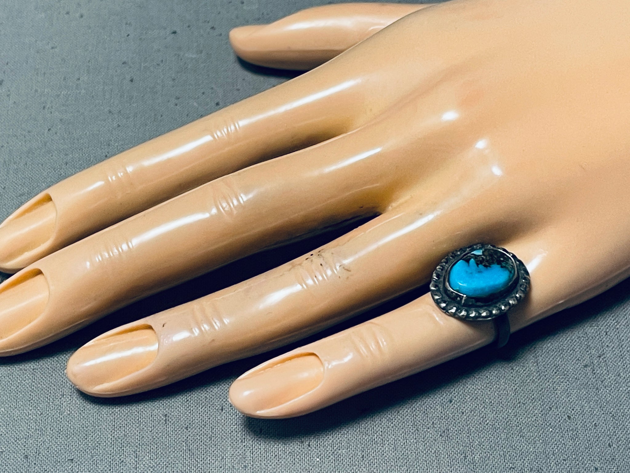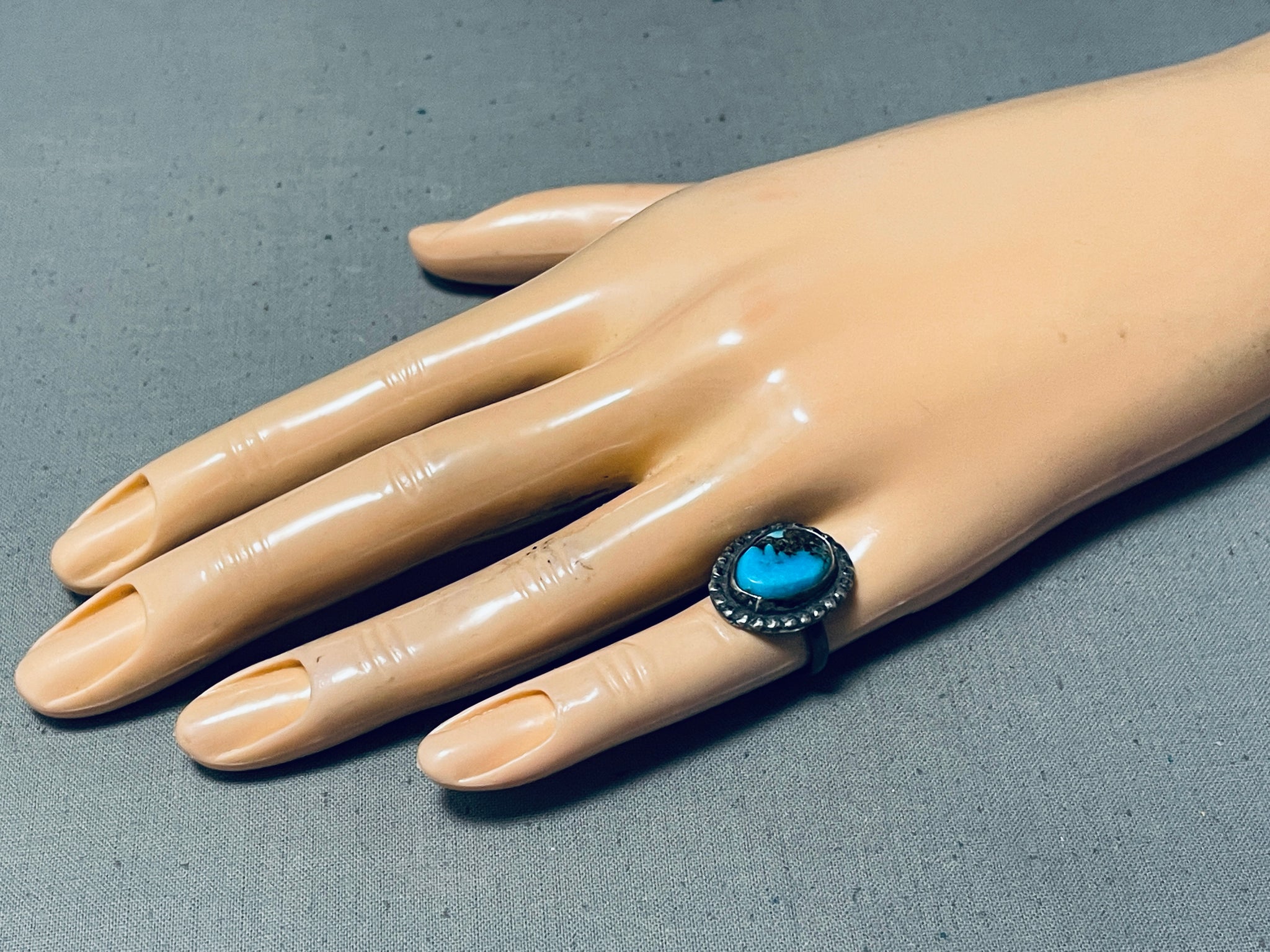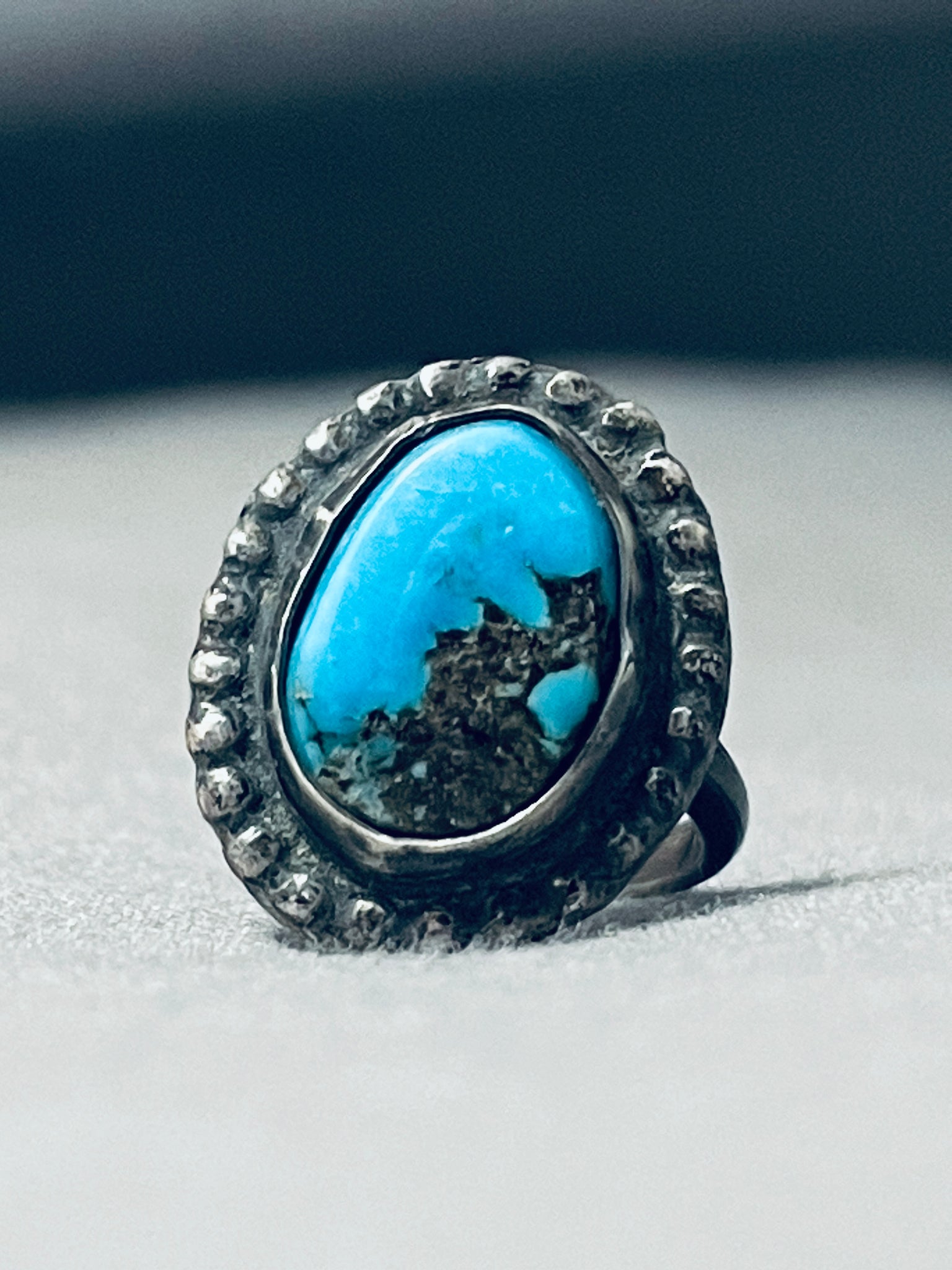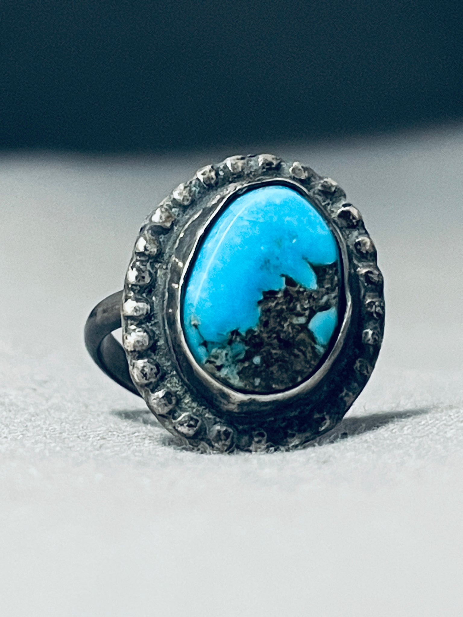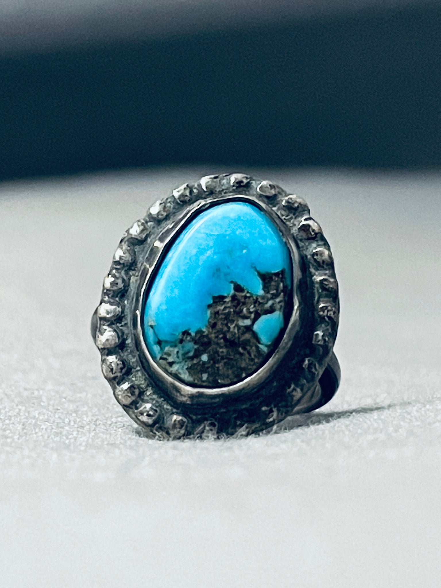 Very Rare Vintage Native American Navajo Morenci Turquoise Sterling Silver Ring