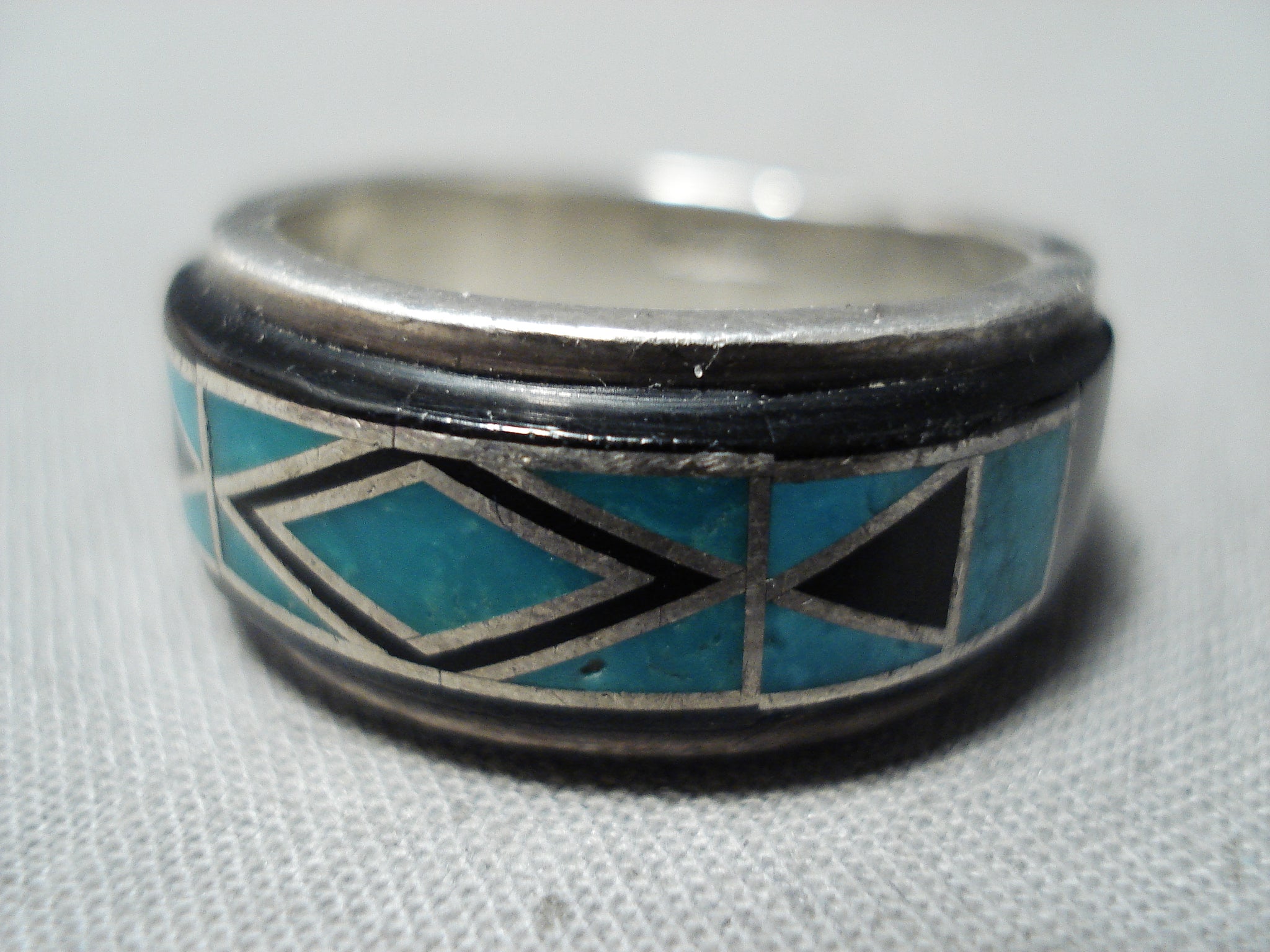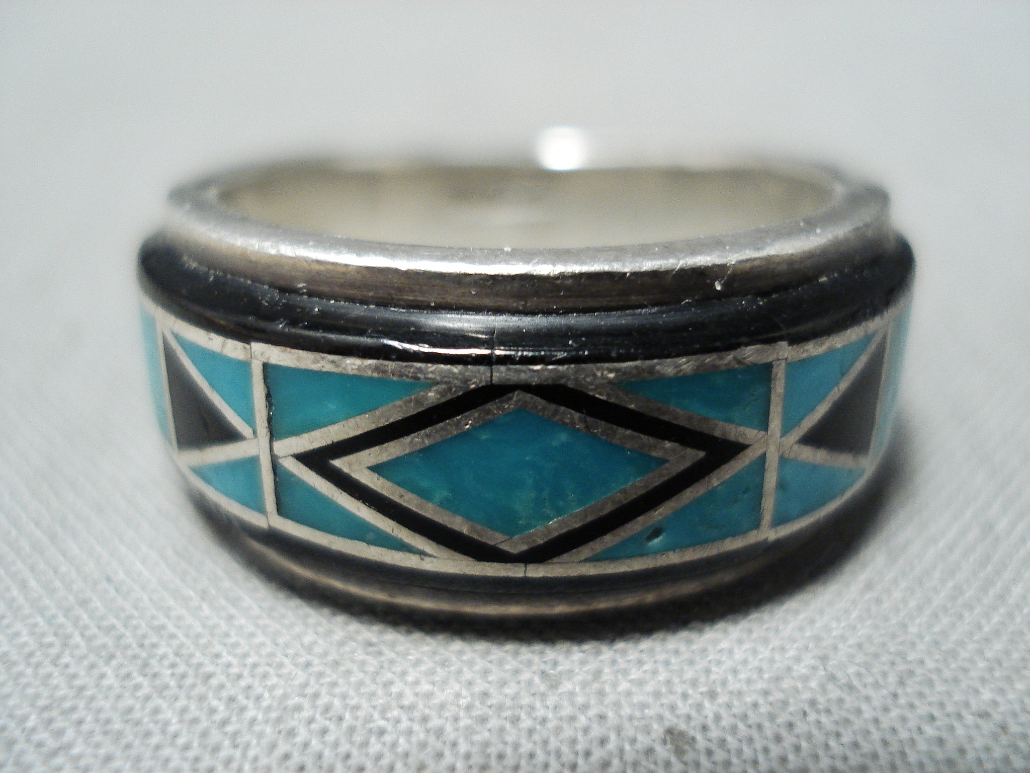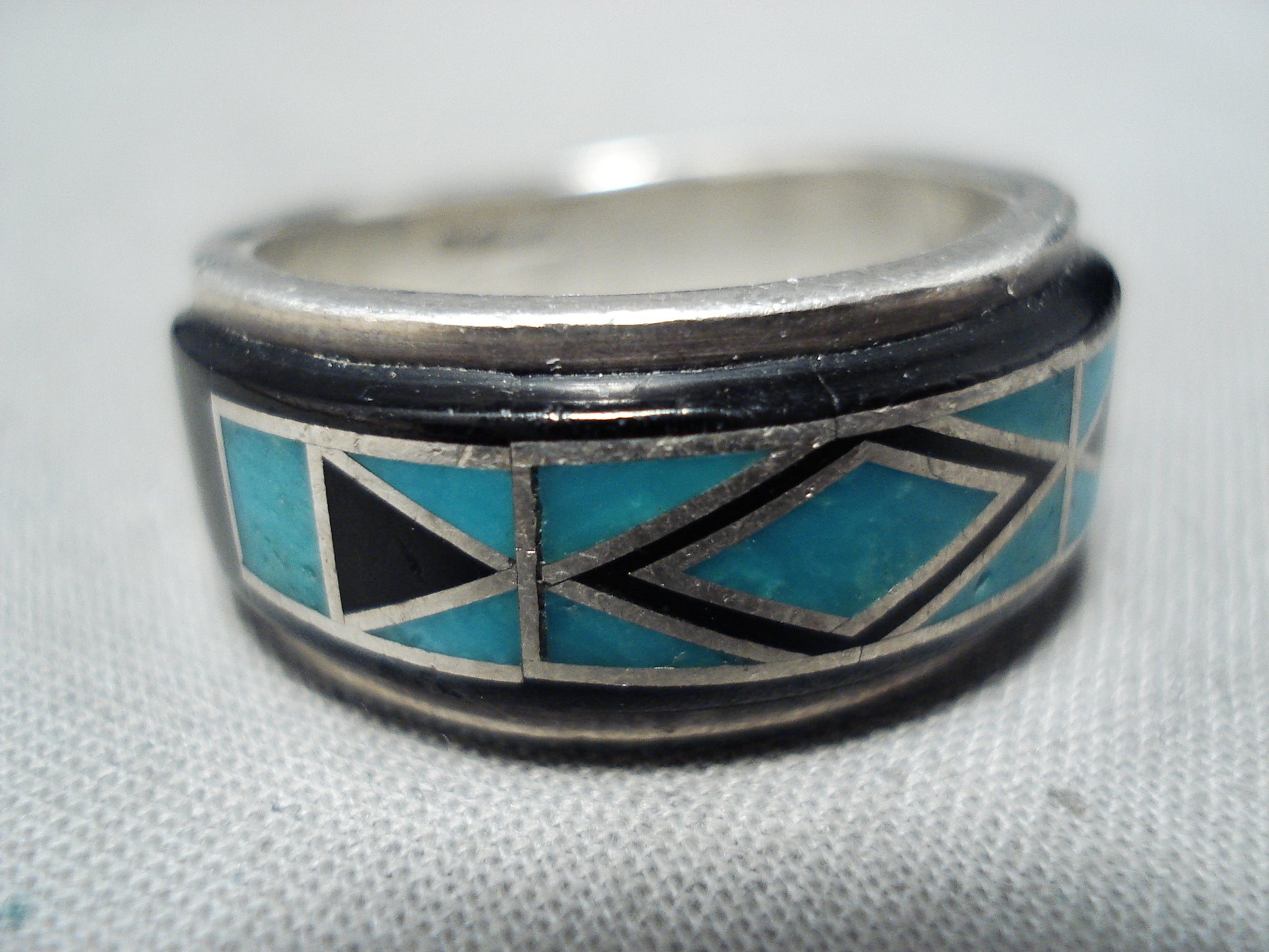 Vic Trujillo Vintage Native American Navajo Turquoise Jet Inlay Sterling Silver Ring