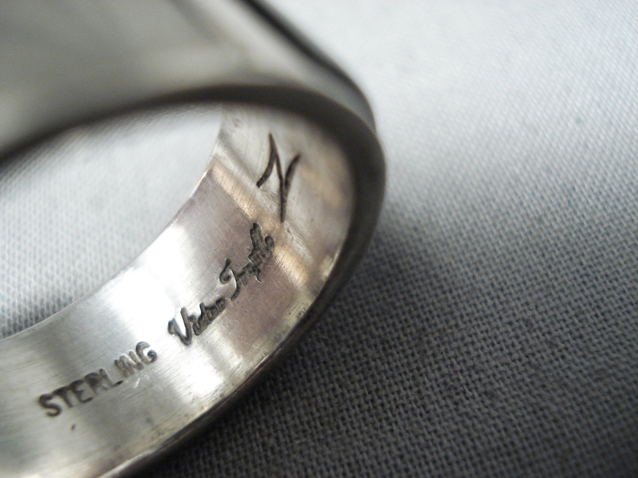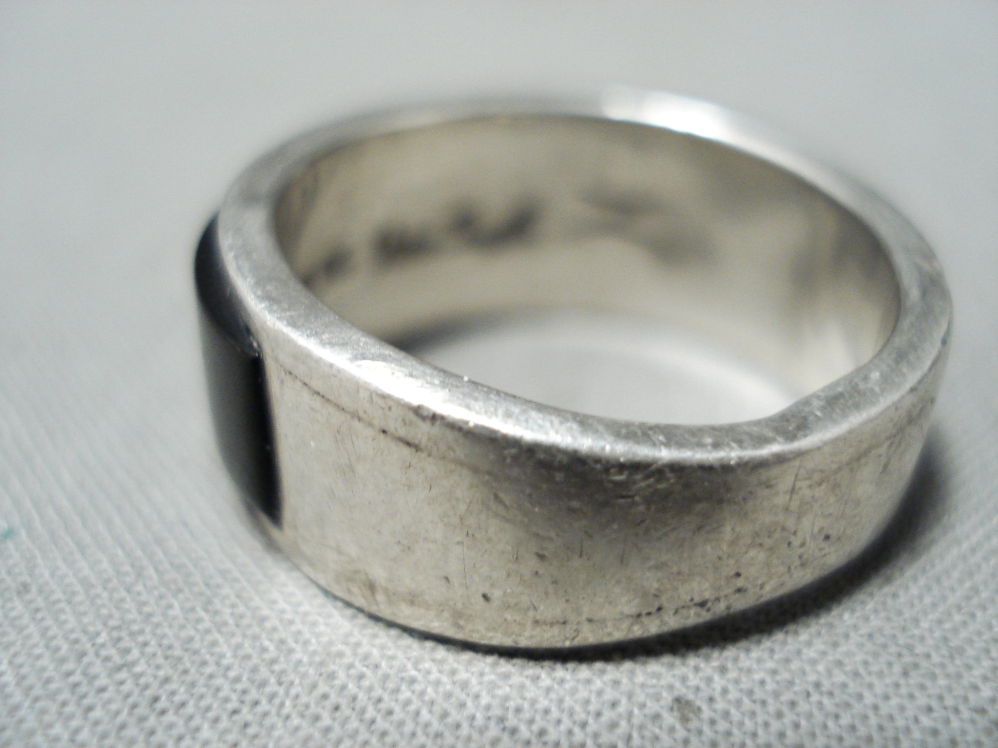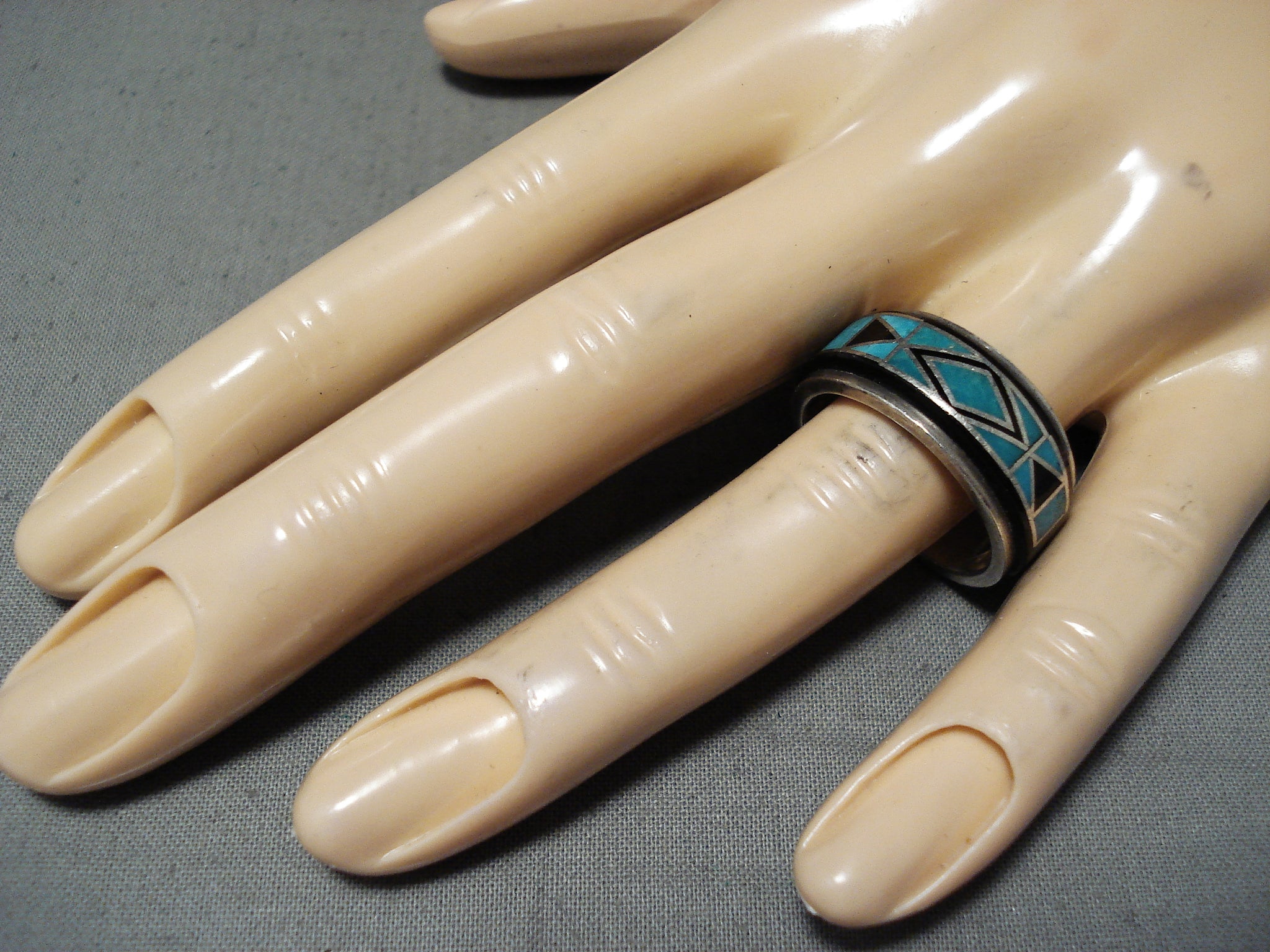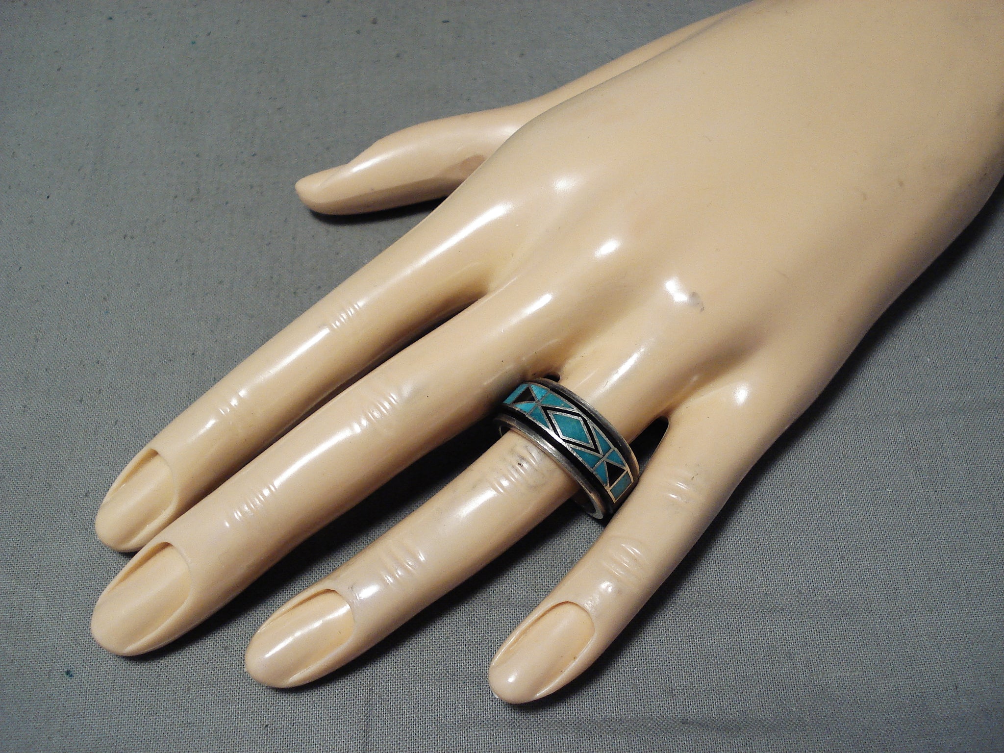 Vic Trujillo Vintage Native American Navajo Turquoise Jet Inlay Sterling Silver Ring