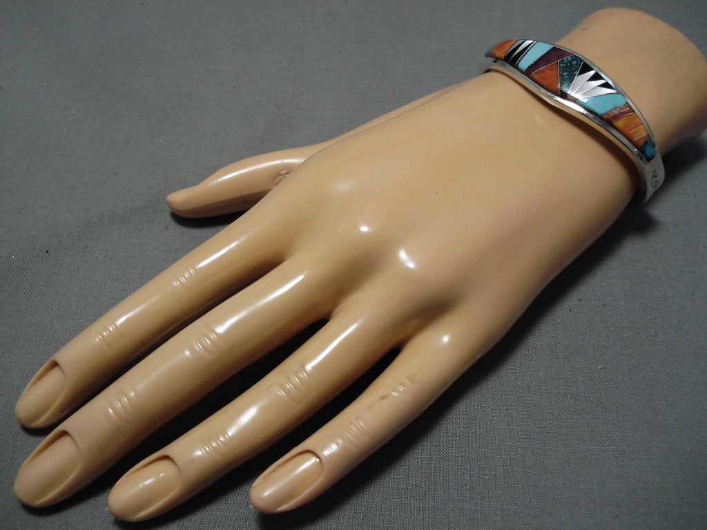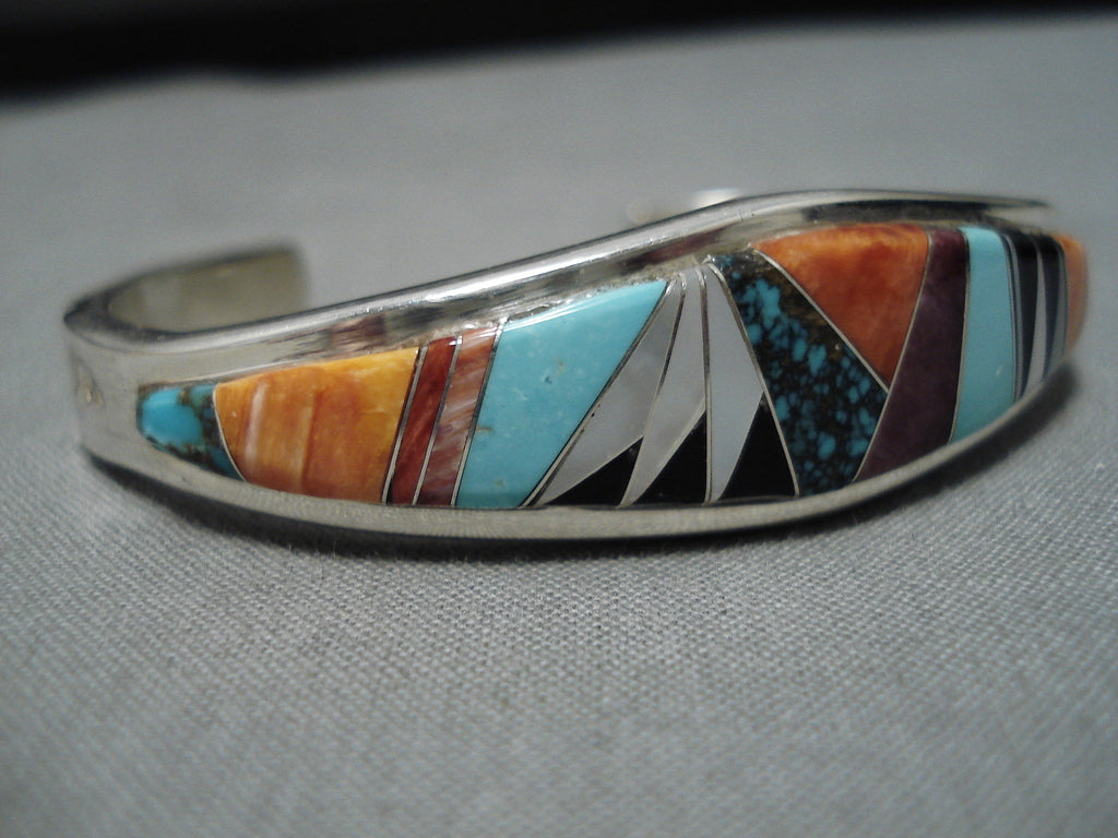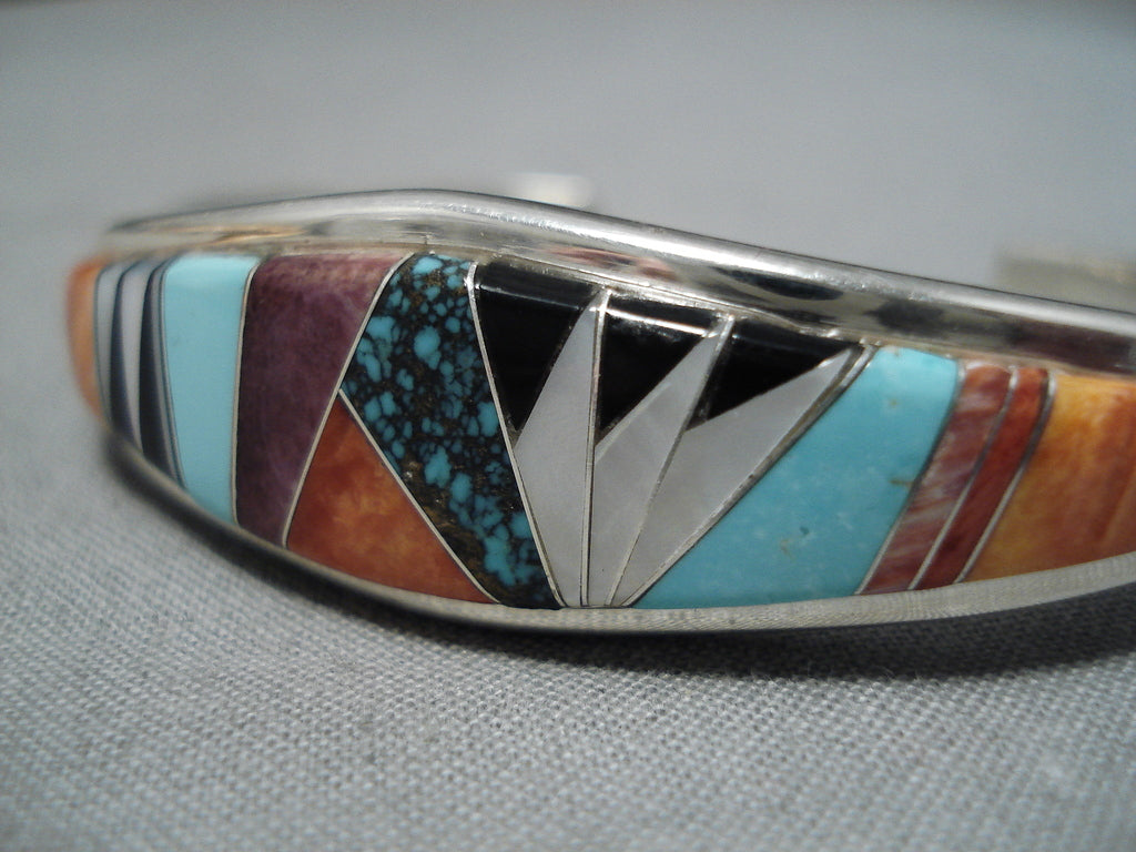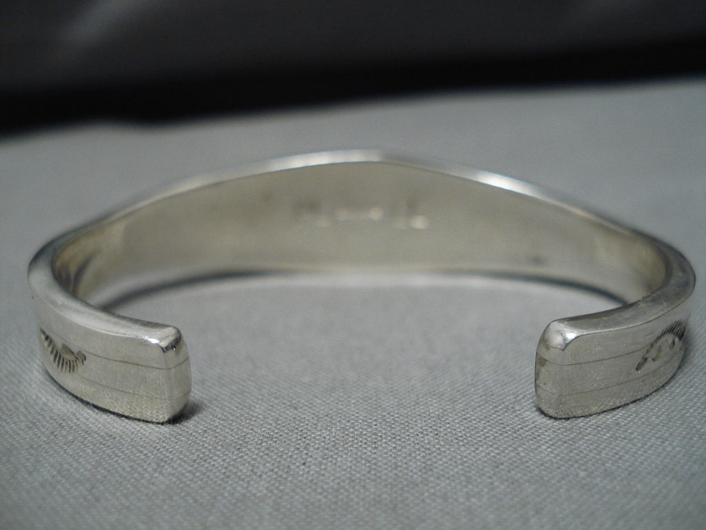 Vintage Native American Navajo Turquoise Raised Inlay Patrick Lincoln Sterling Silver Bracelet