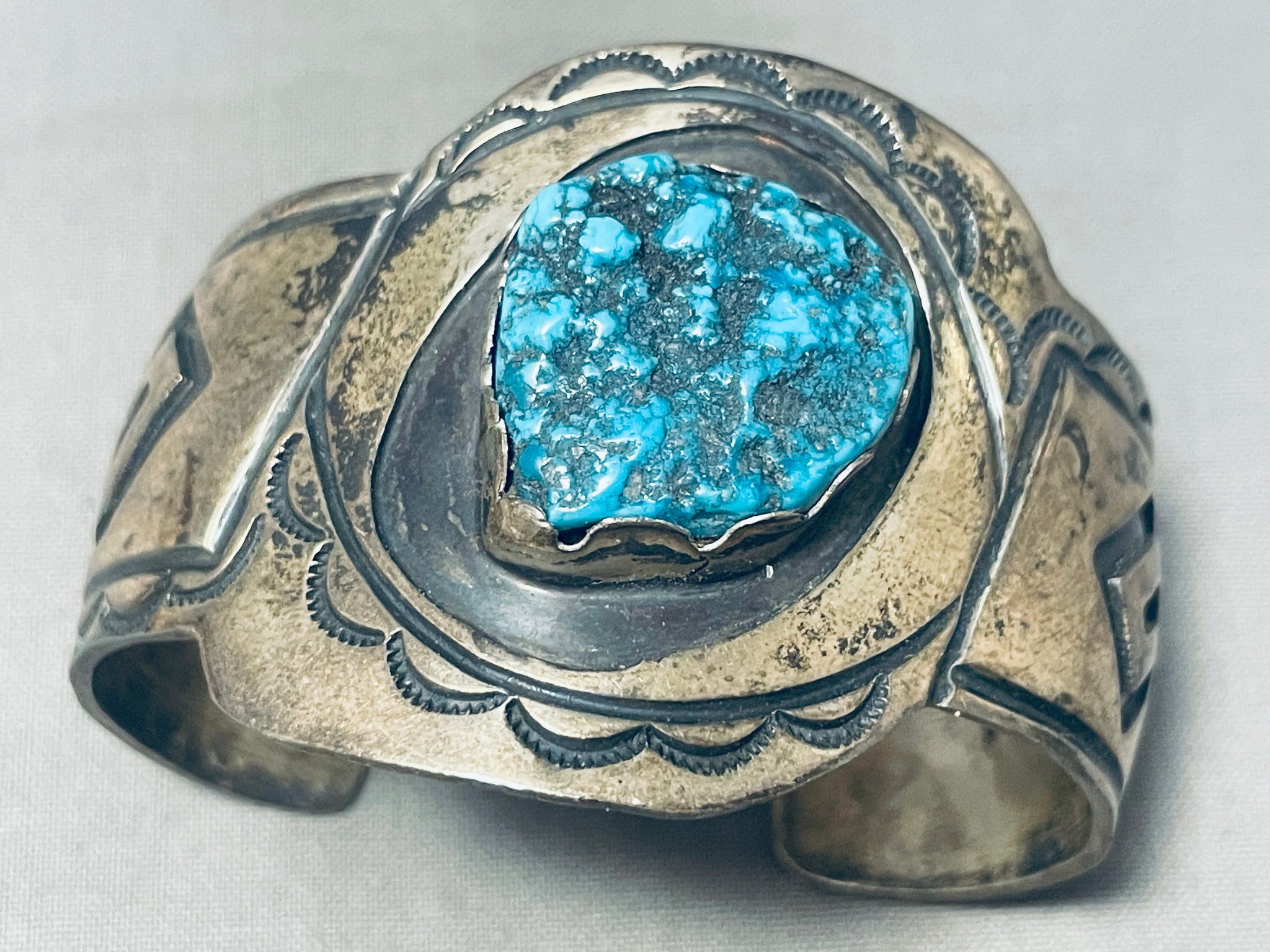 W Dodson Vintage Native American Navajo Turquoise Sterling Silver Bracelet