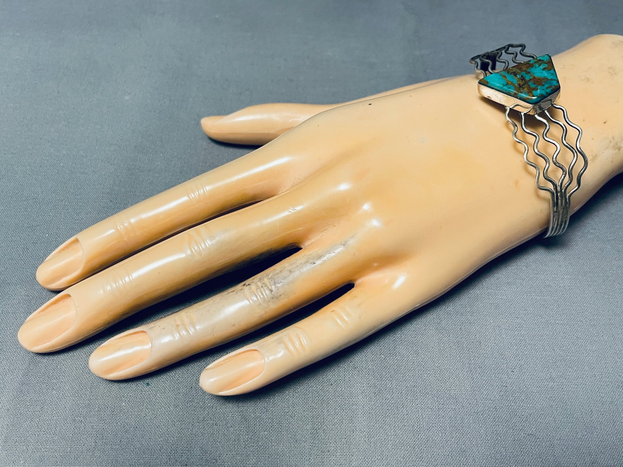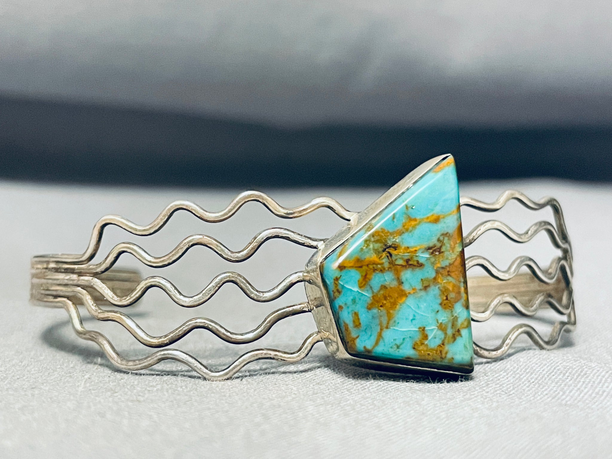 Water Rivers Vintage Native American Navajo Royston Turquoise Sterling Silver Bracelet