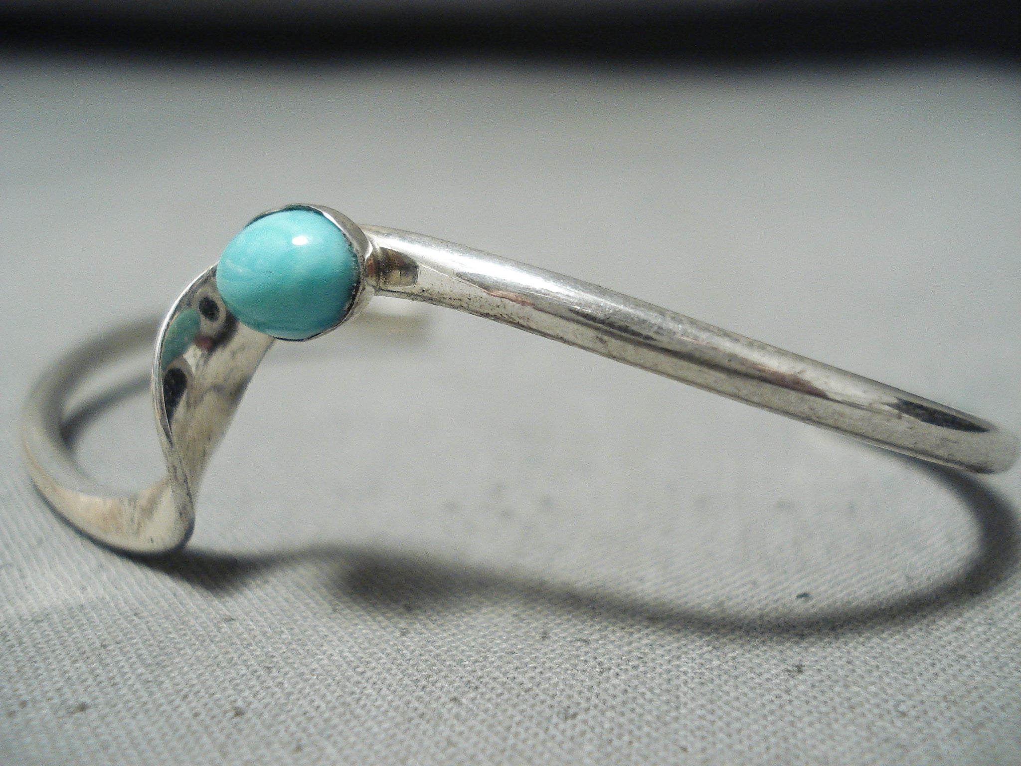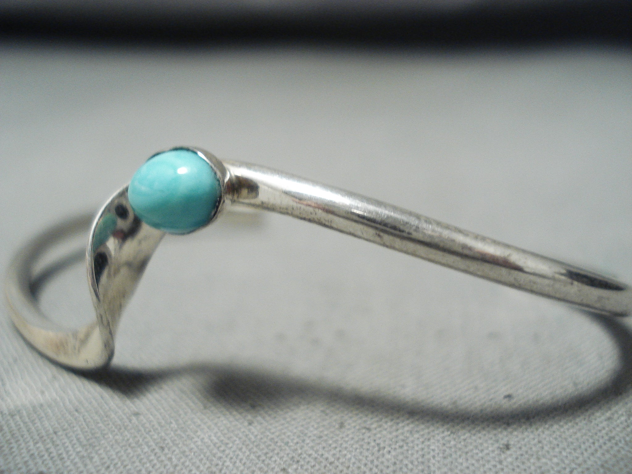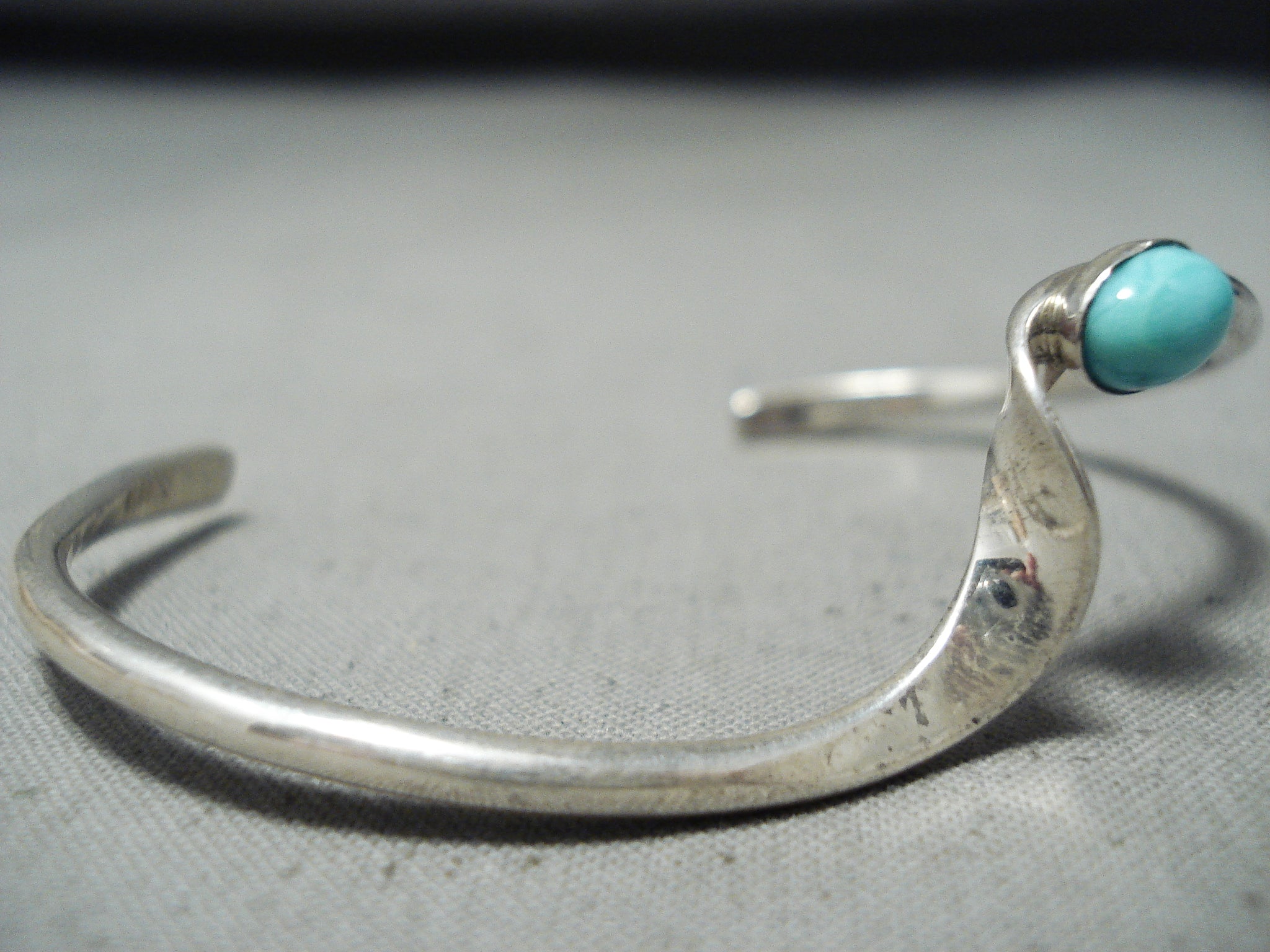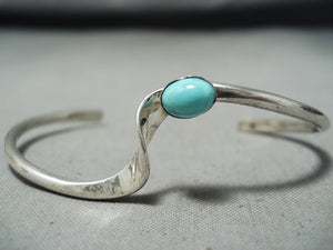 Waving Unique Vintage Native American Navajo Turquoise Sterling Silver Swirl Bracelet
