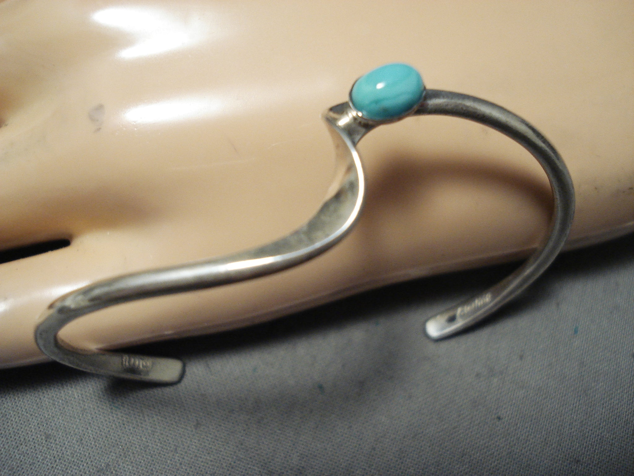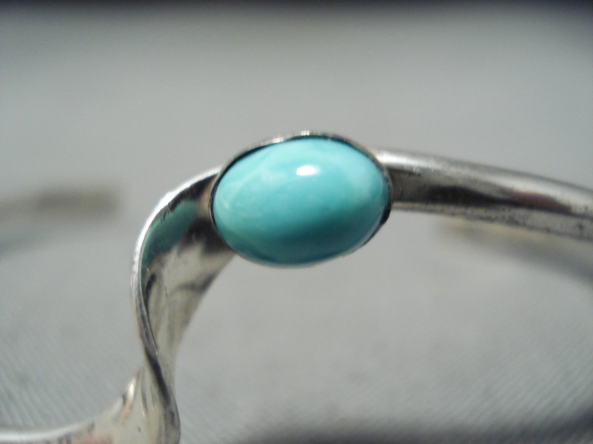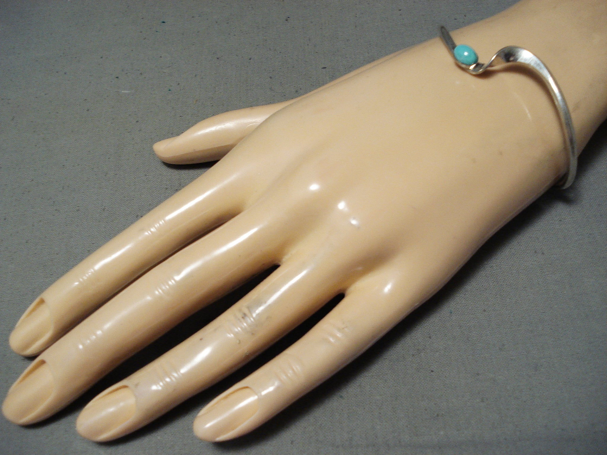 Waving Unique Vintage Native American Navajo Turquoise Sterling Silver Swirl Bracelet