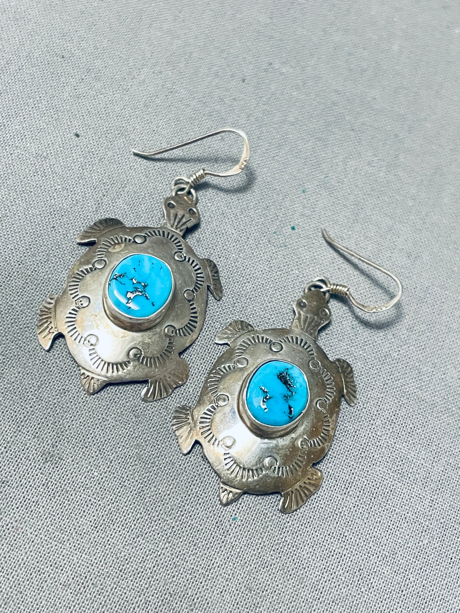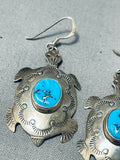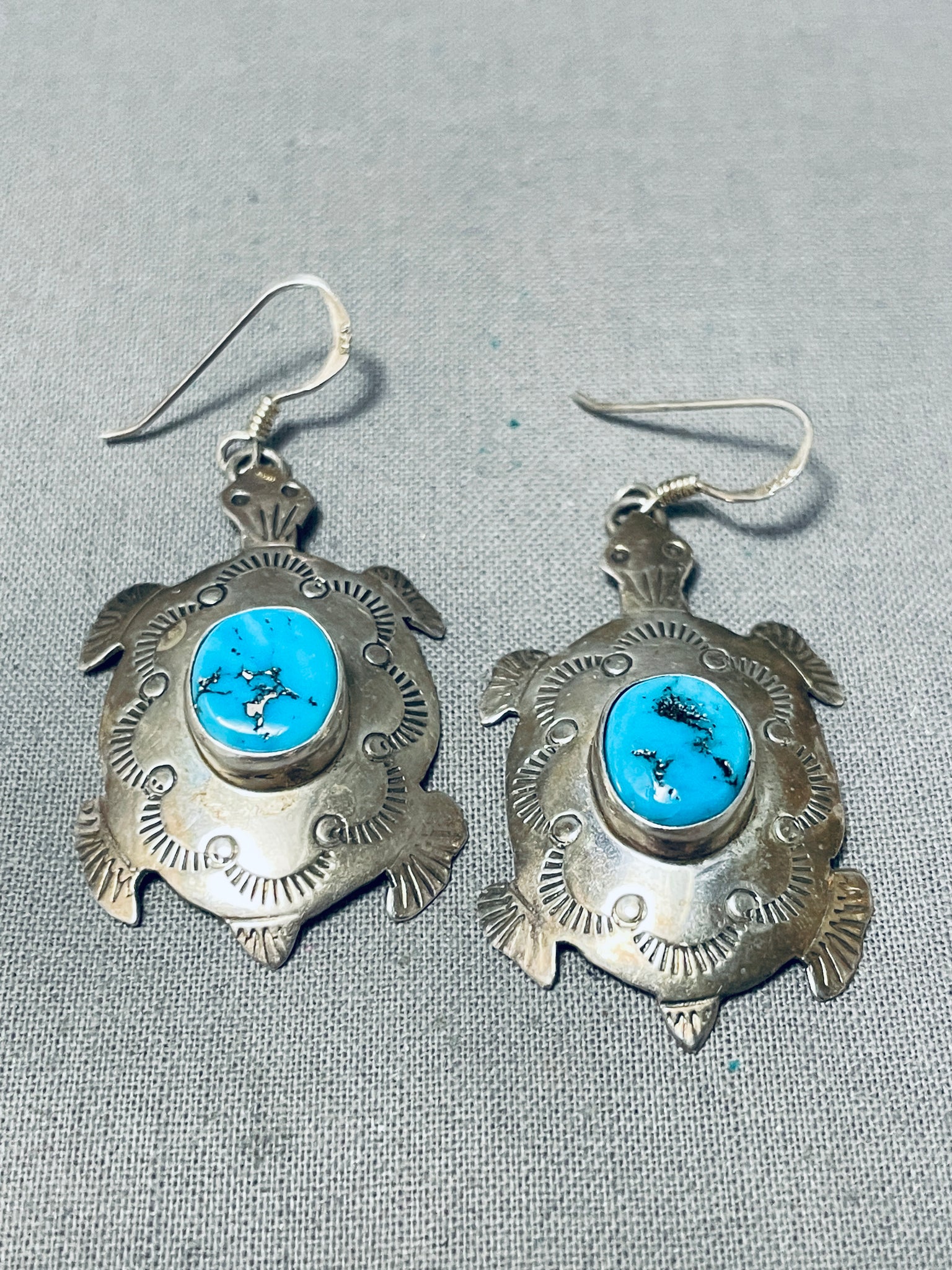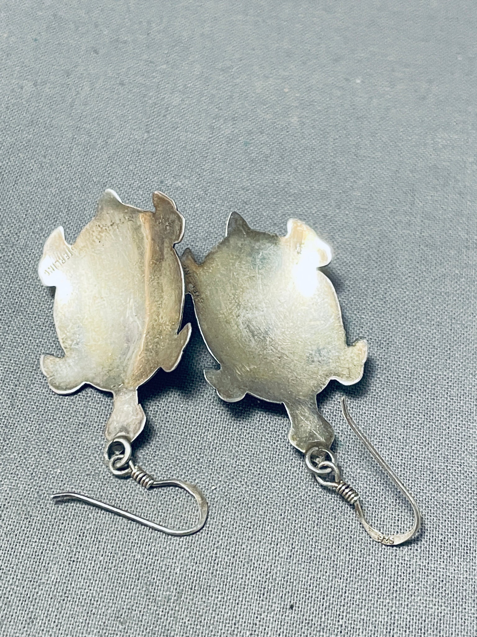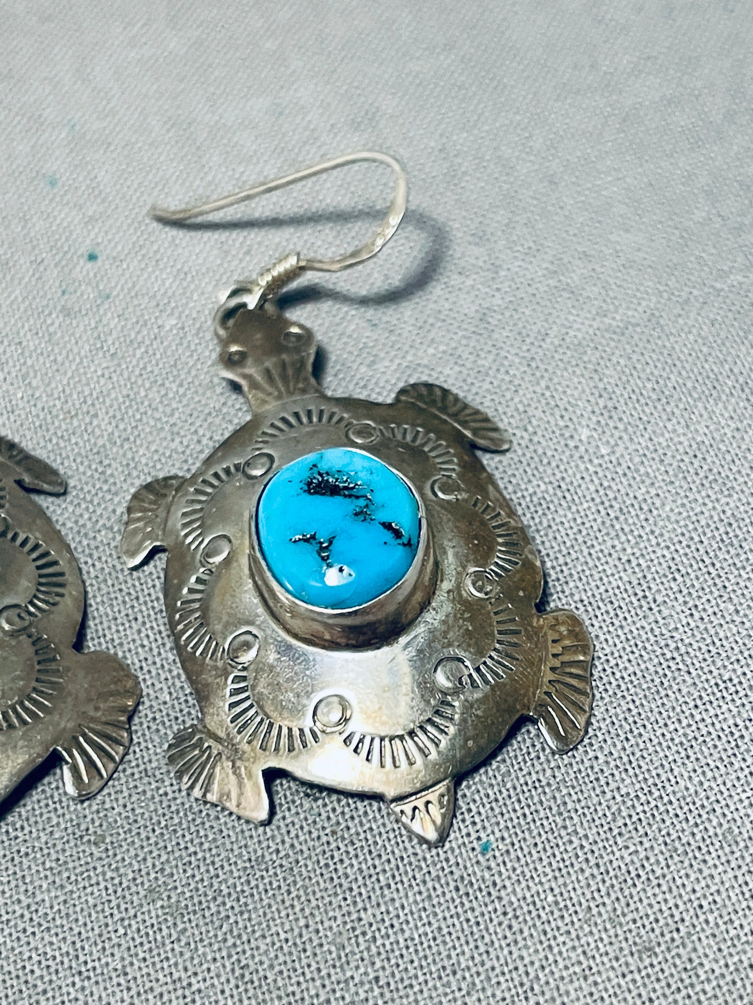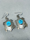 Whimsical Vintage Native American Navajo Morenci Turquoise Sterling Silver Turtle Earrings