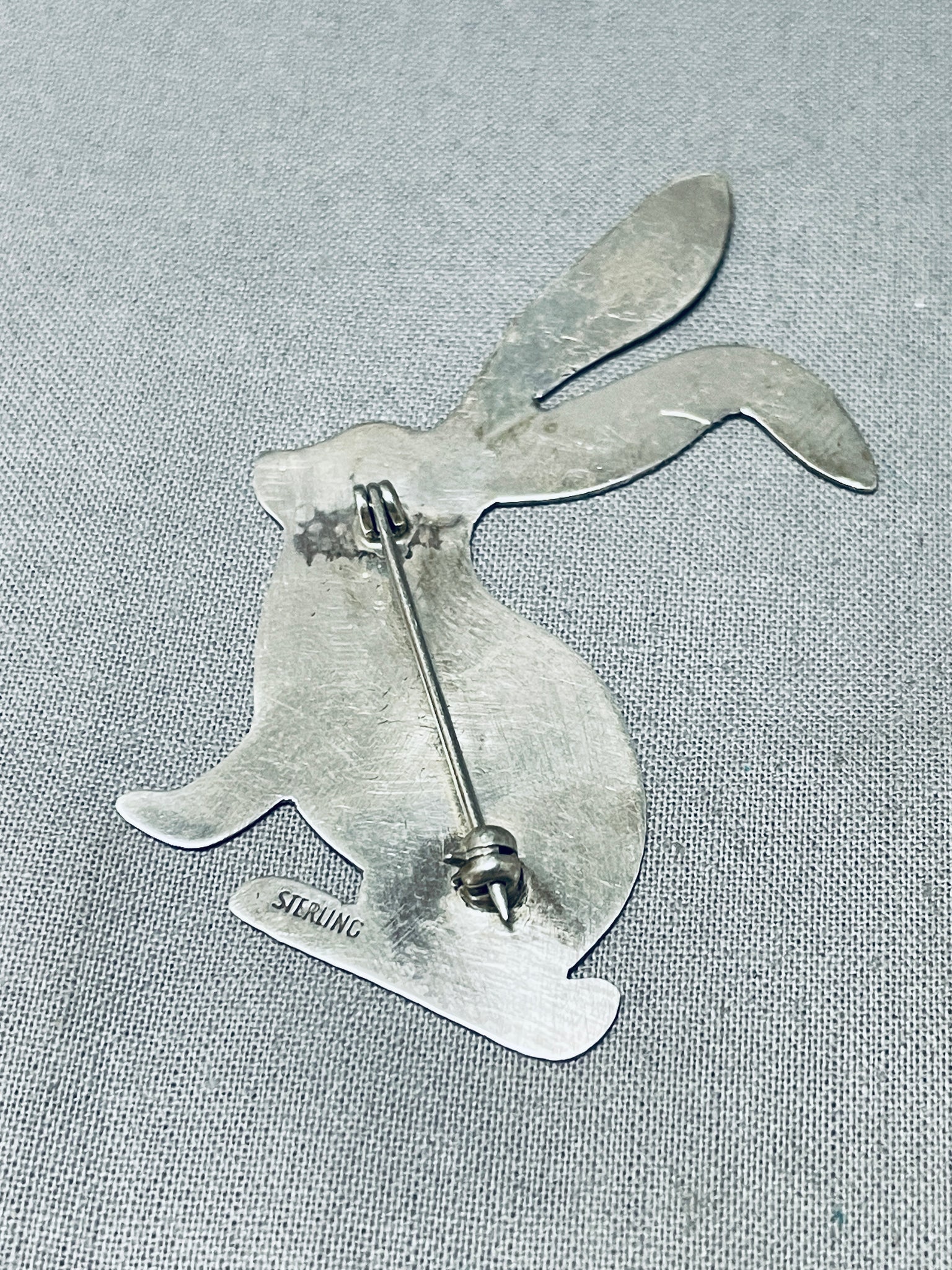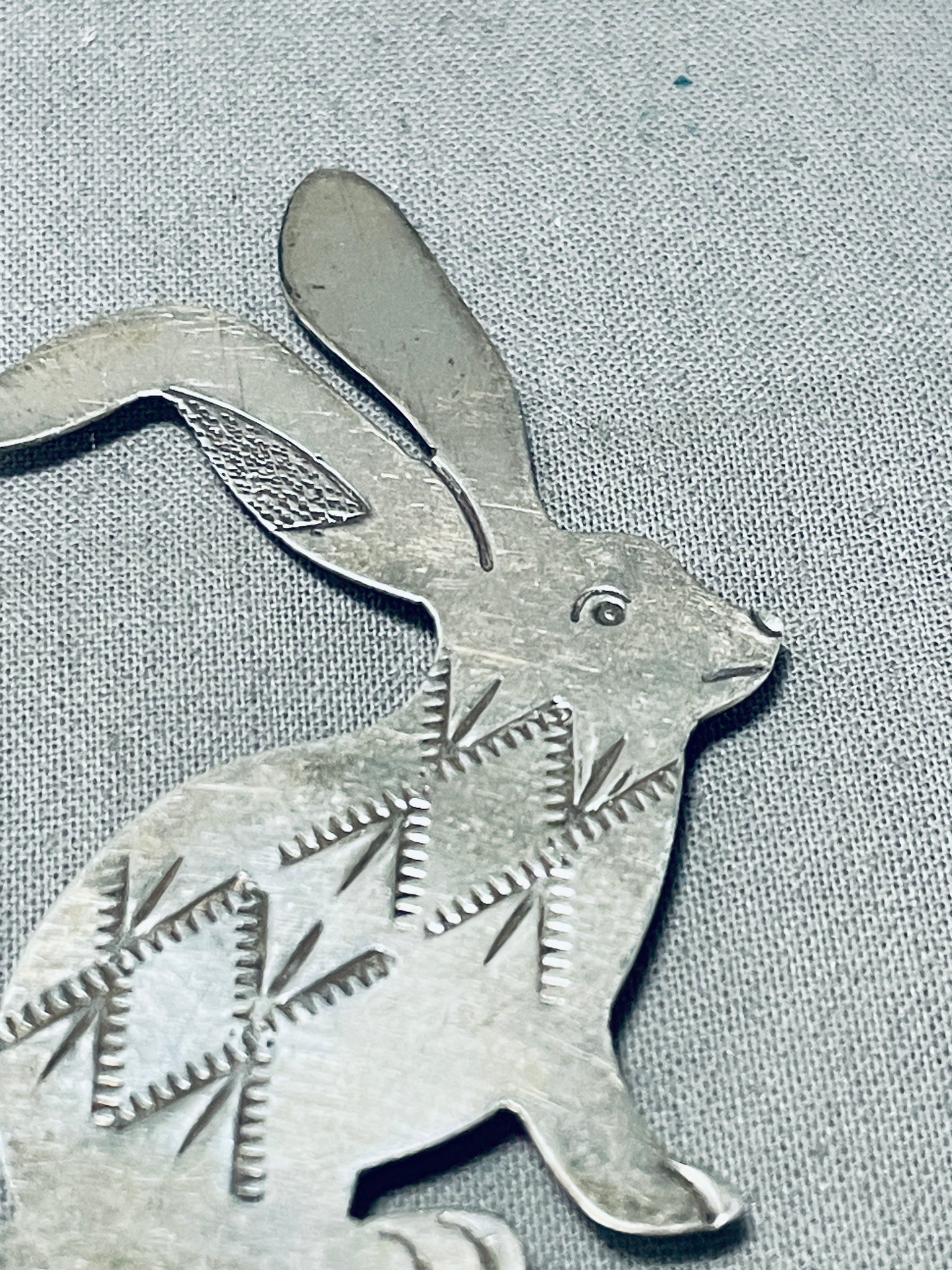 Whimsical Vintage Native American Navajo Sterling Silver Rabbit Pin