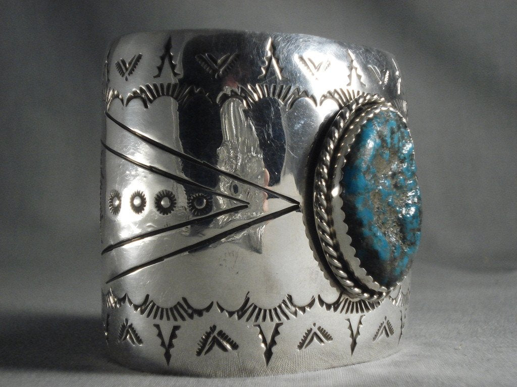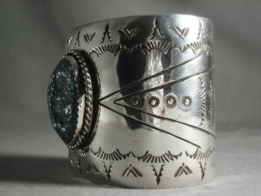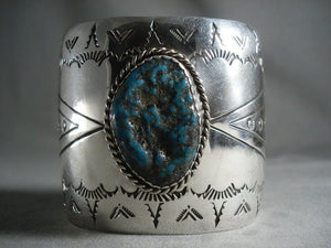 Wide Wide Navajo 'Chunk Nugget Turquoise' Native American Jewelry Silver Bracelet