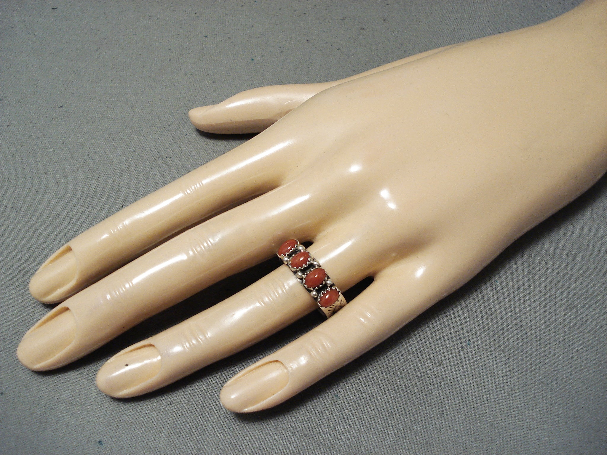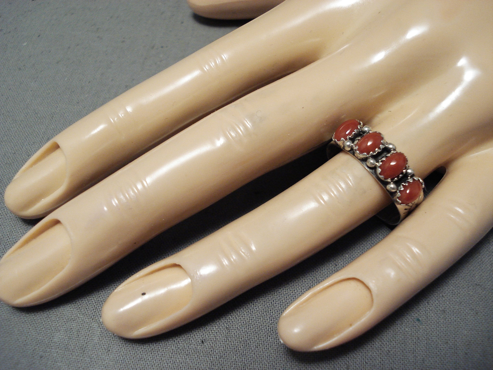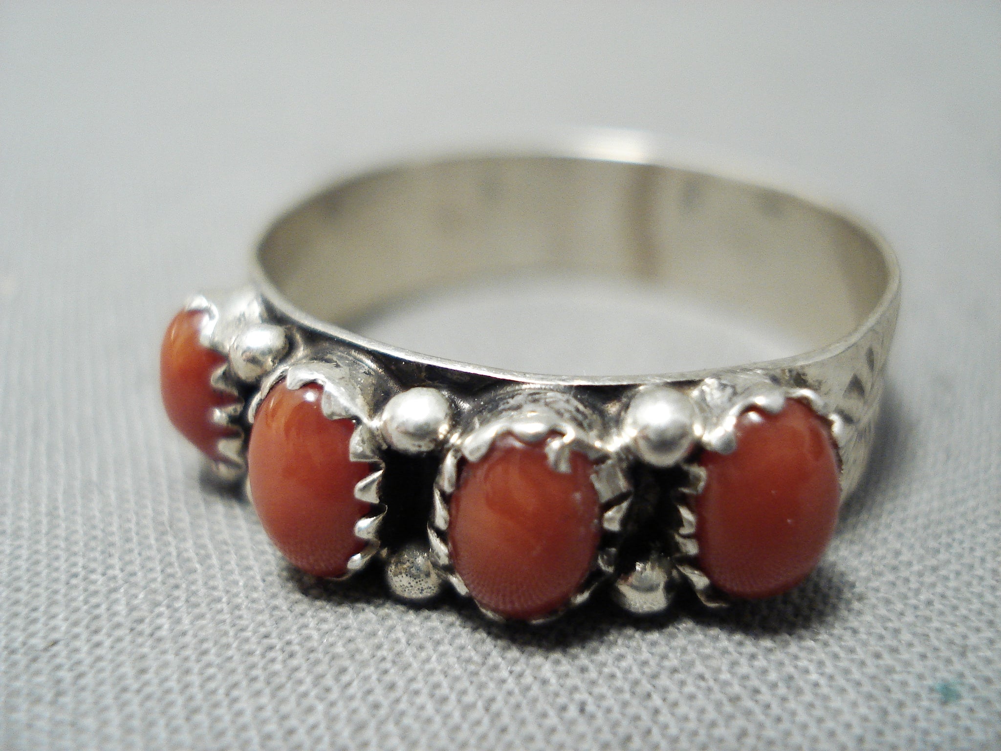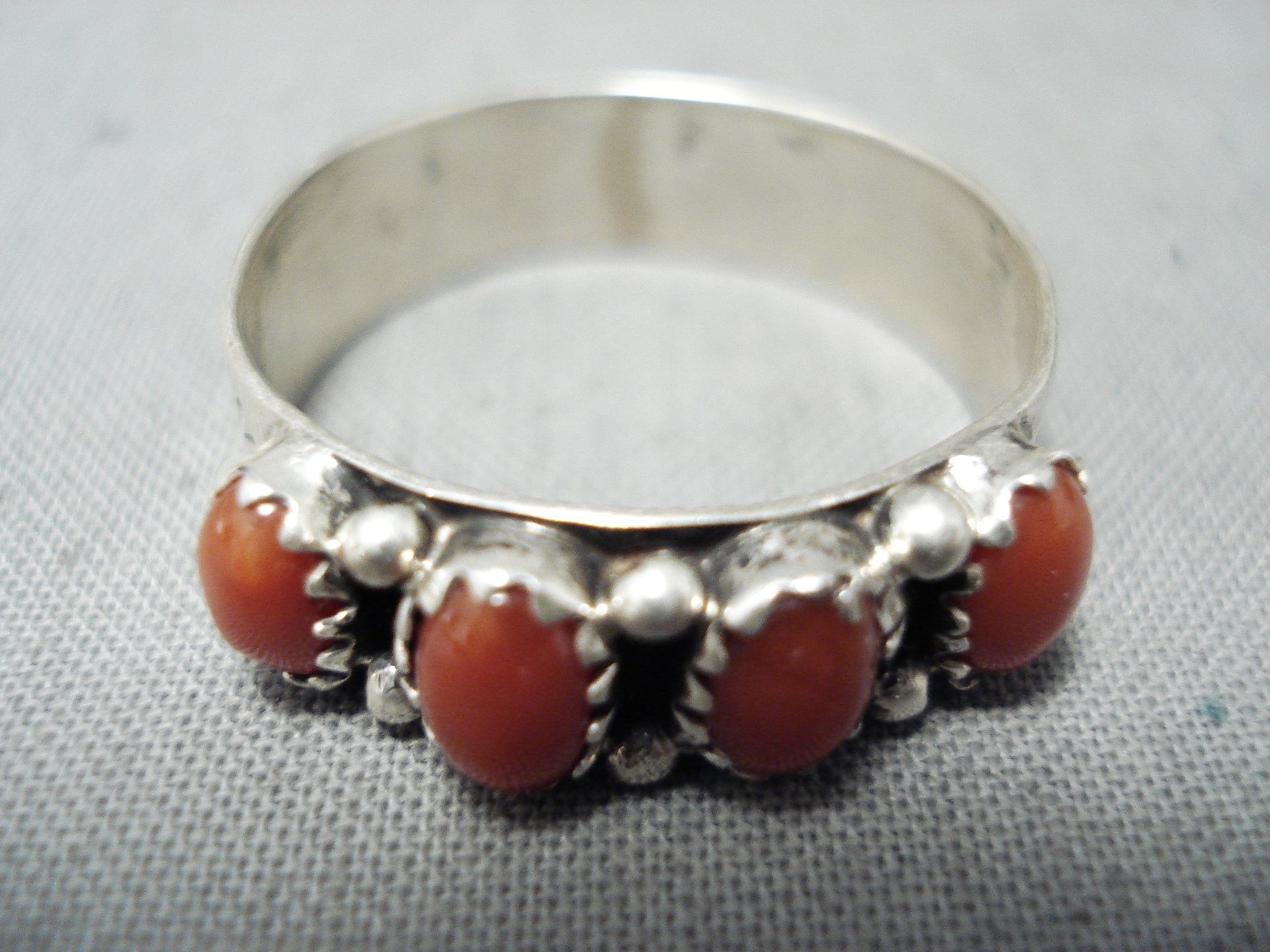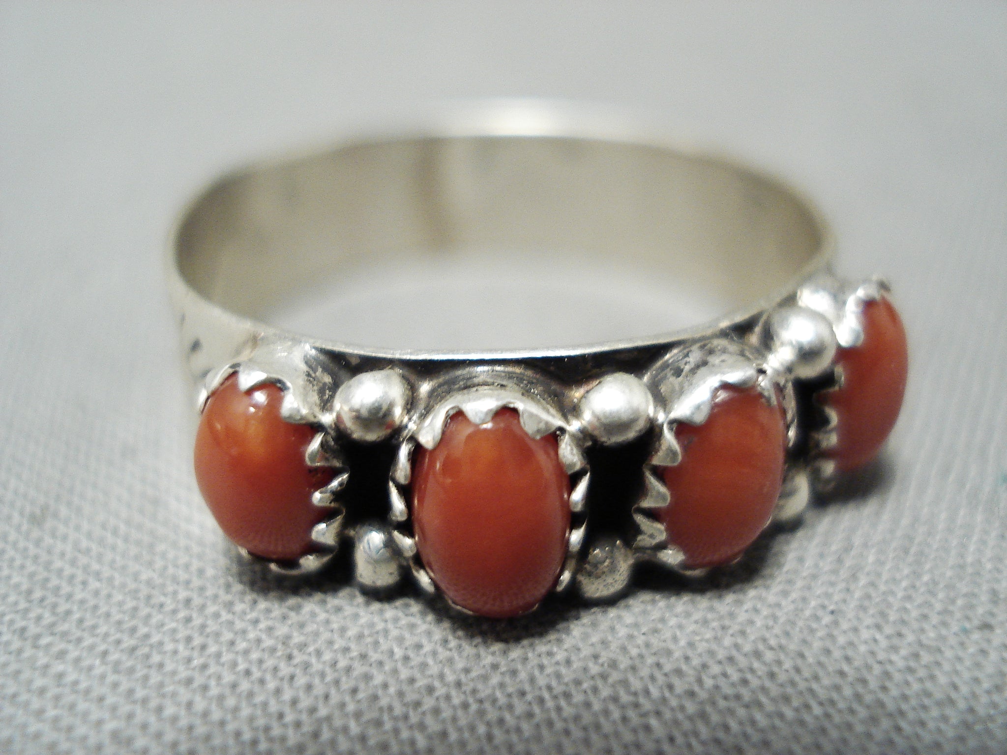 Wonderful Native American Navajo Coral Sterling Silver Ring