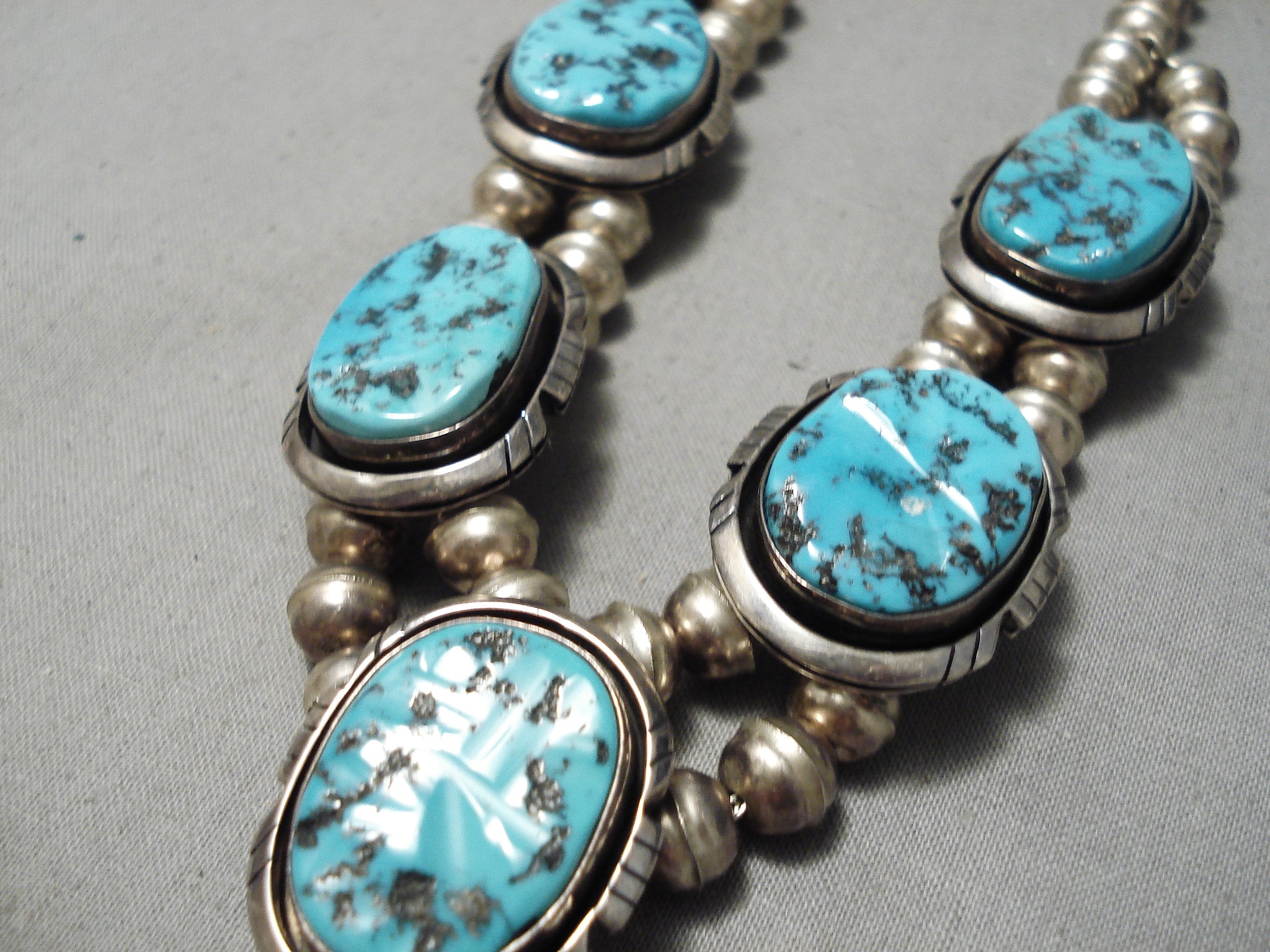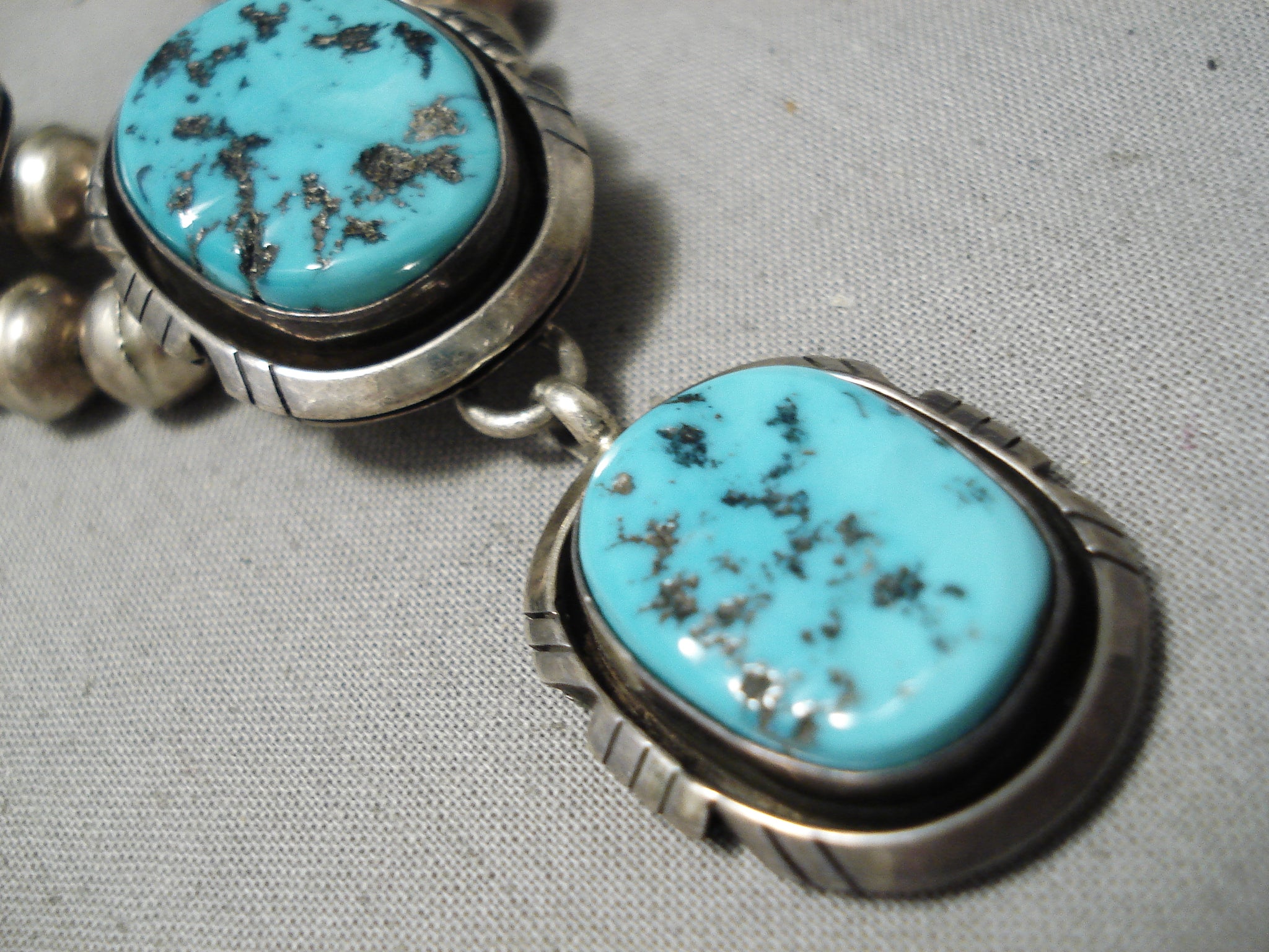 Wonderful Vintage Native American Navajo Baca Sterling Silver Blue Turquoise Necklace